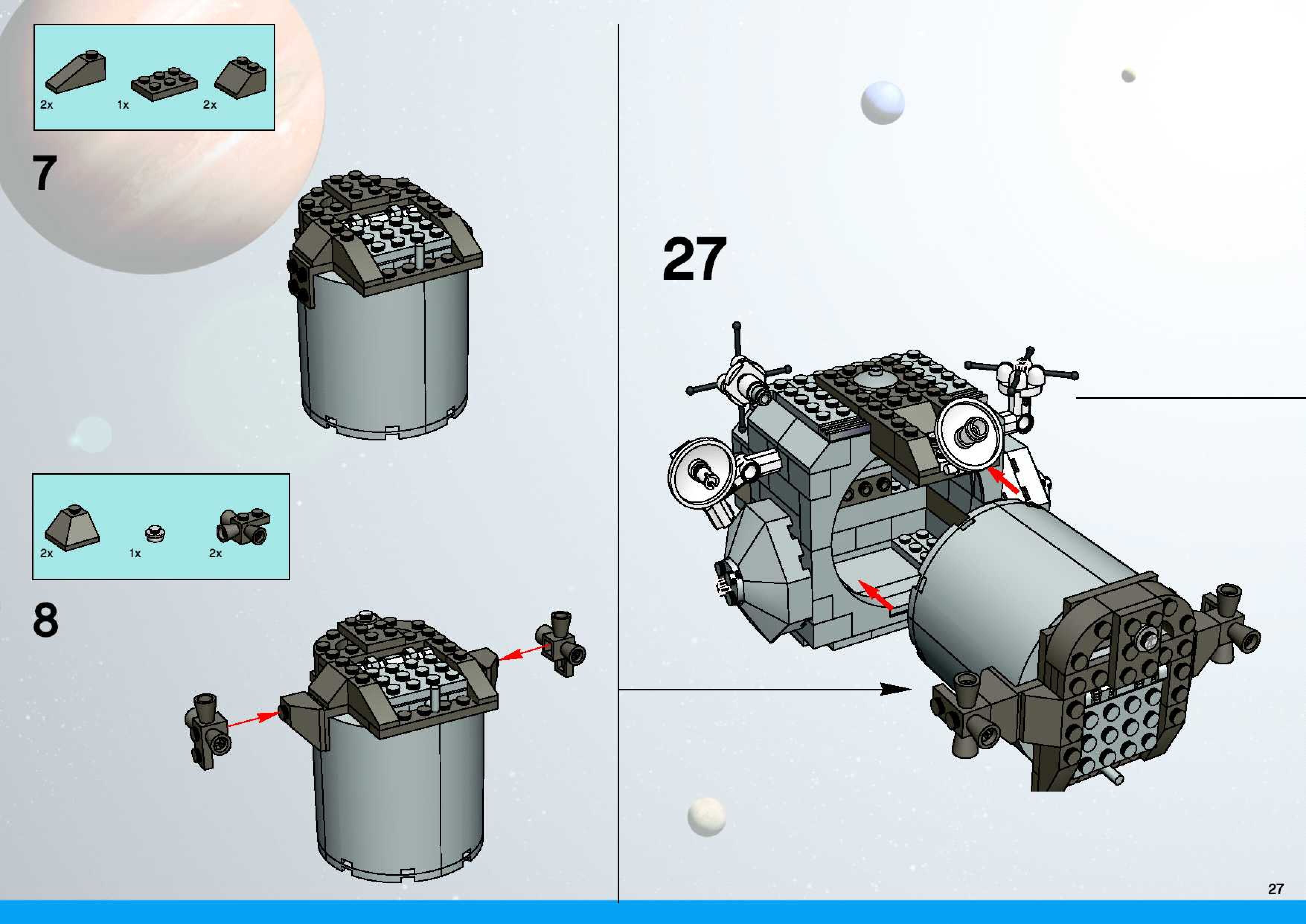 The assembly guide is prepared in a very understandable way for children and adult LEGO enthusiasts. A total of 32 picture galleries are shown, explaining the step-by-step construction stages for 1 different structures.