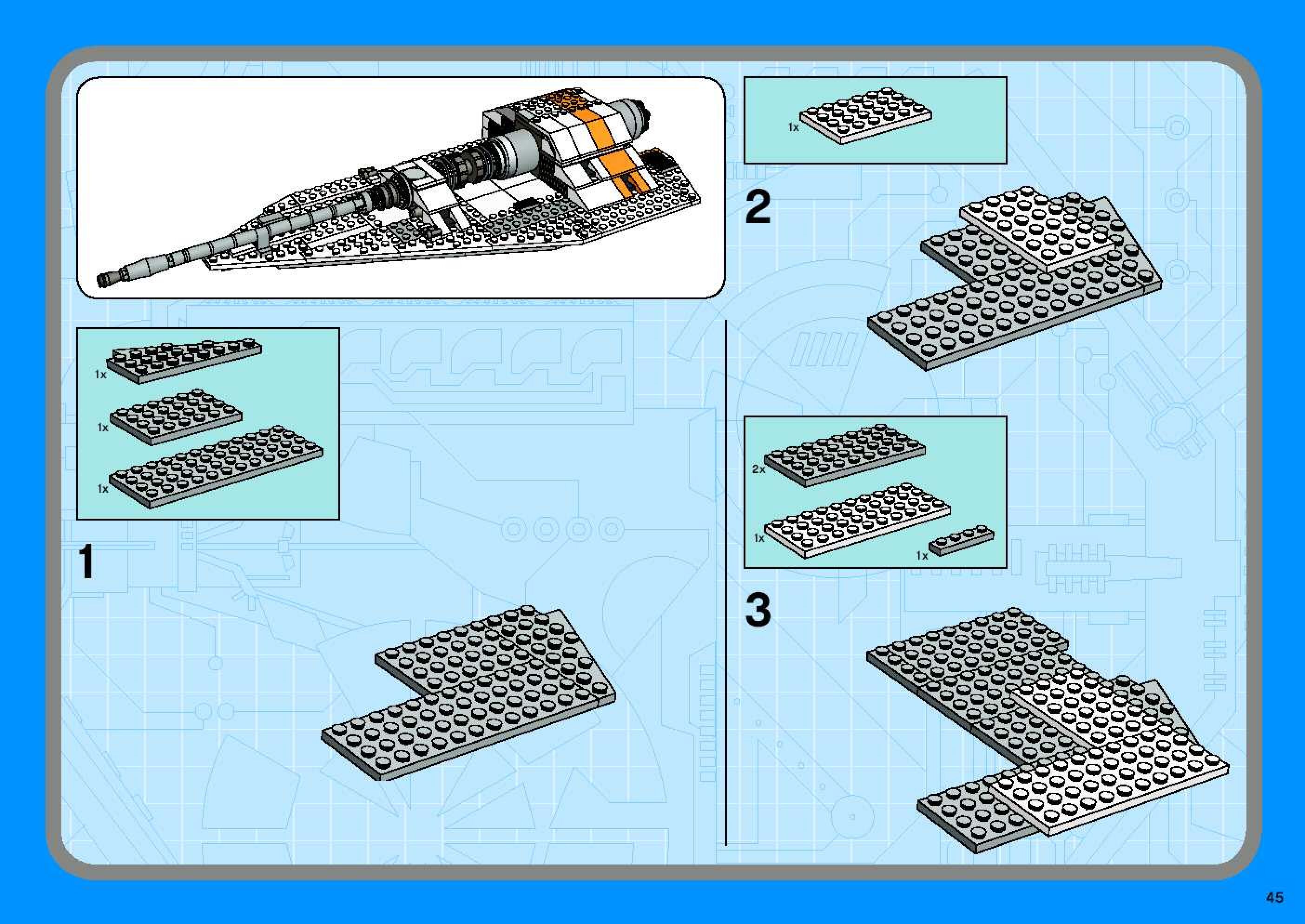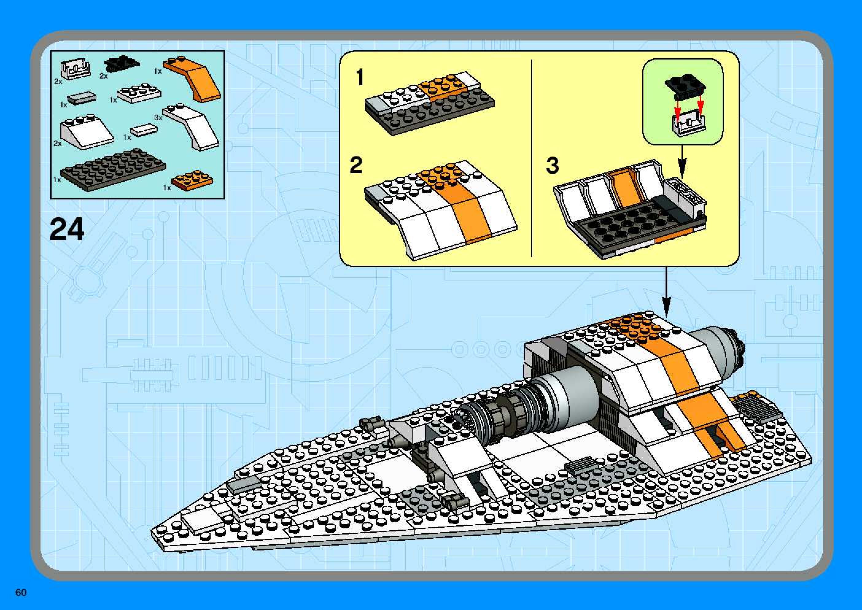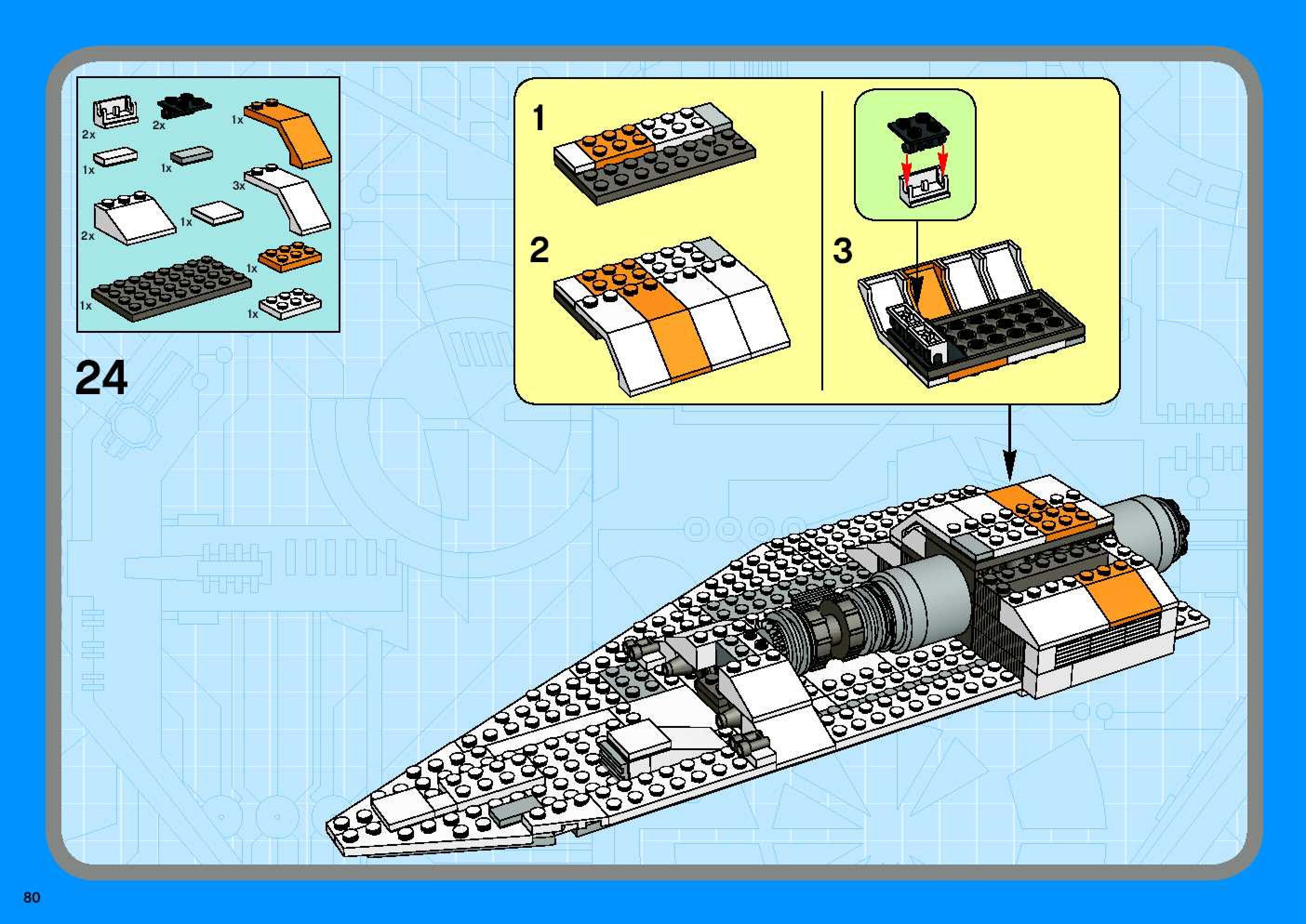 The assembly guide is prepared in a very understandable way for children and adult LEGO enthusiasts. A total of 96 picture galleries are shown, explaining the step-by-step construction stages for 1 different structures.