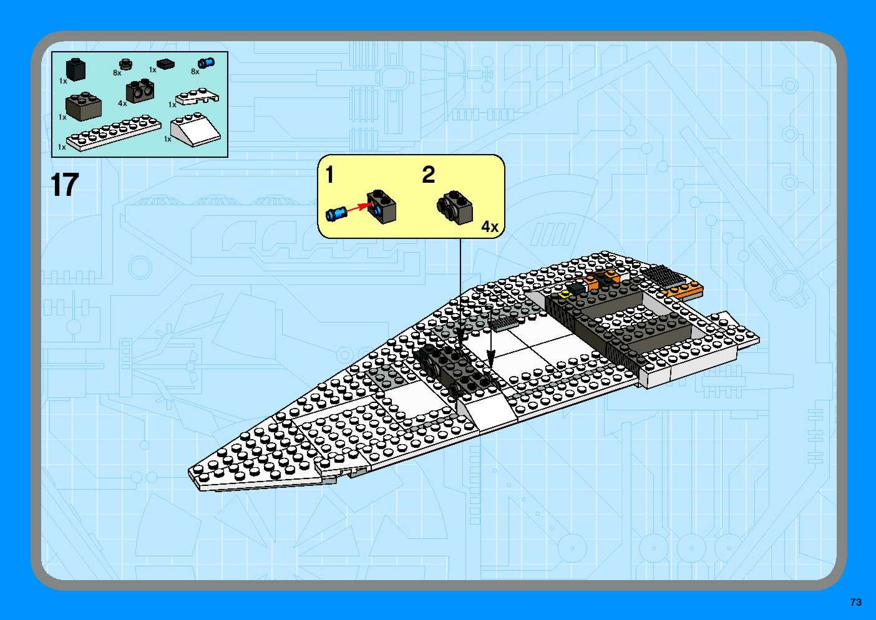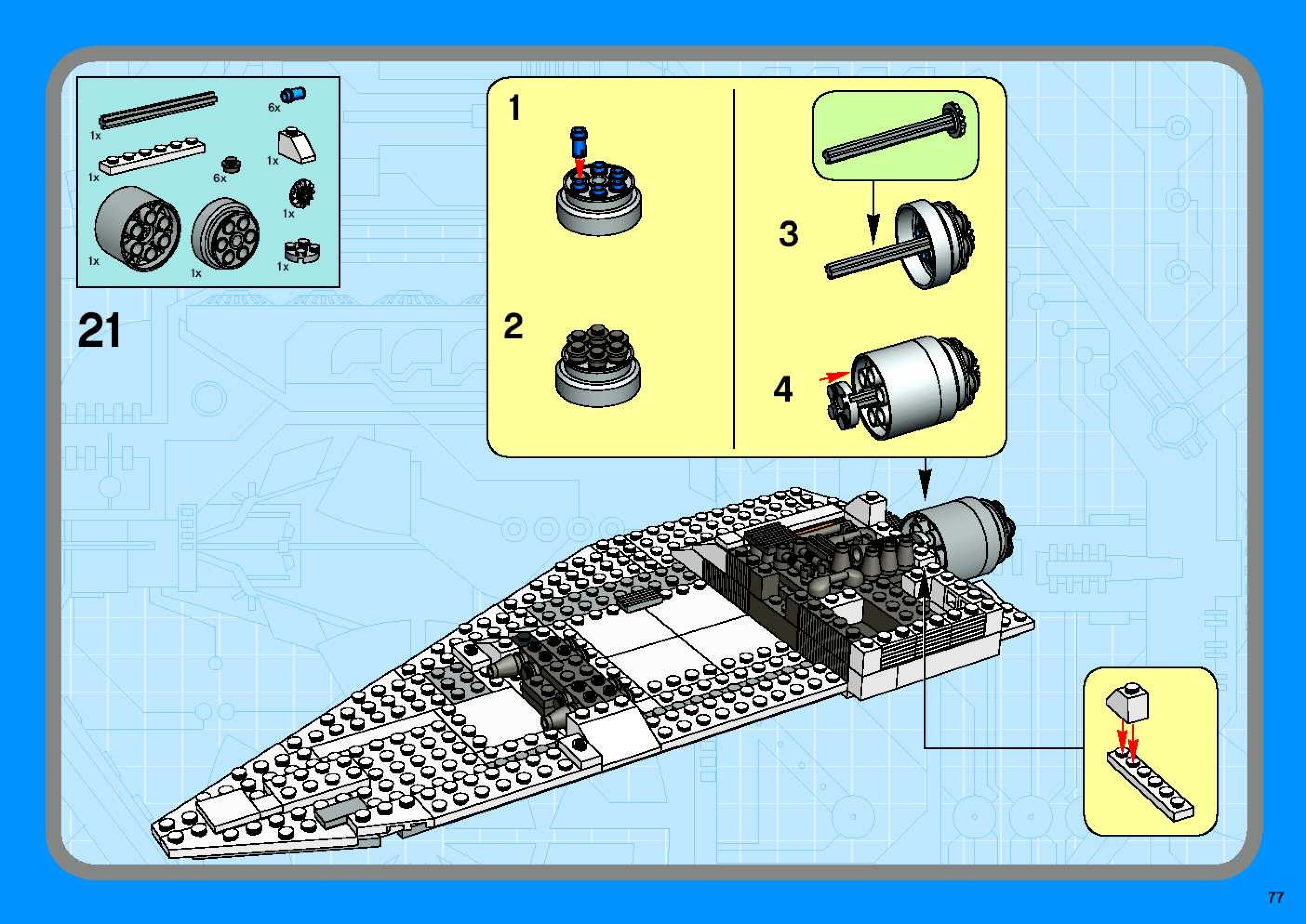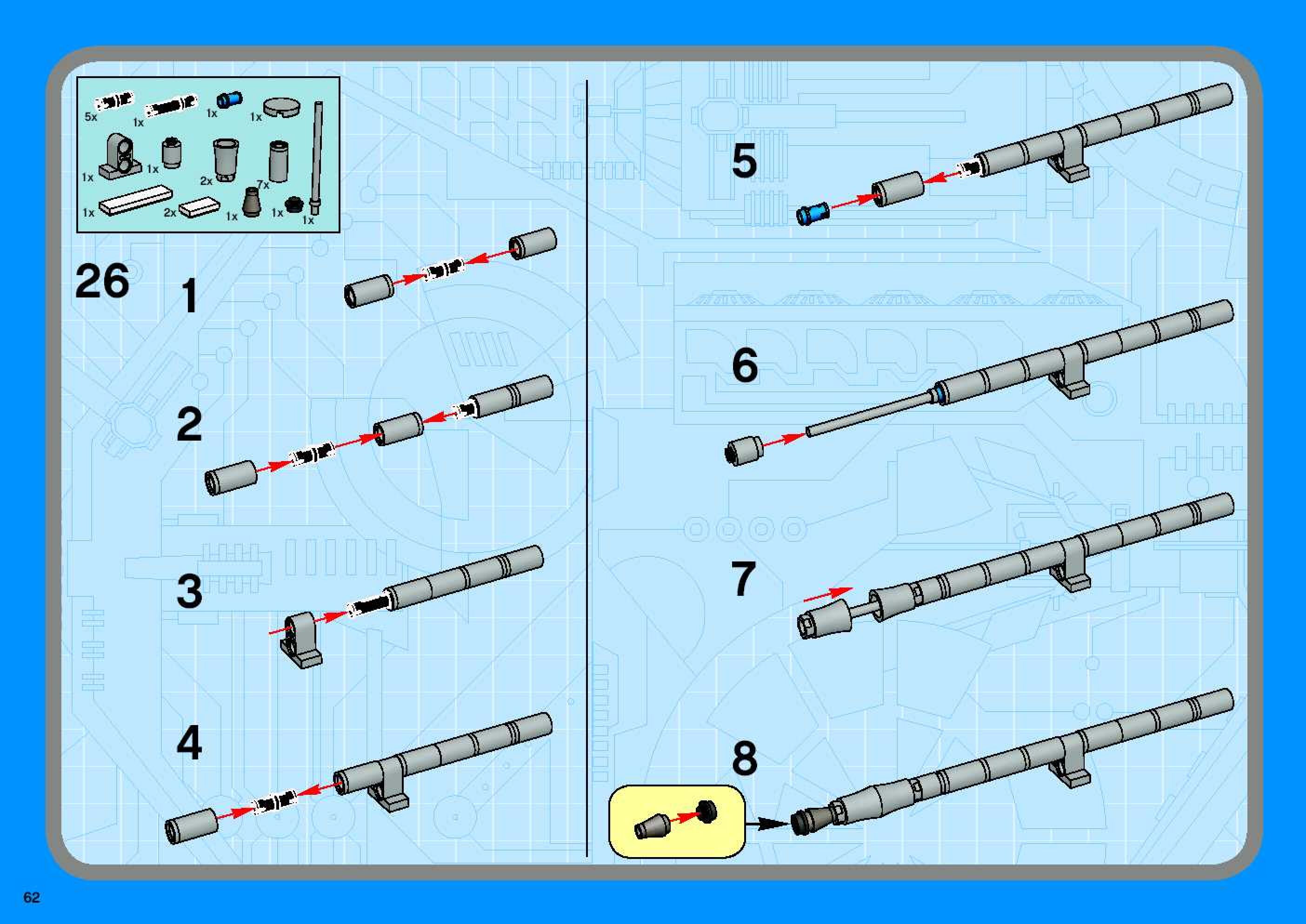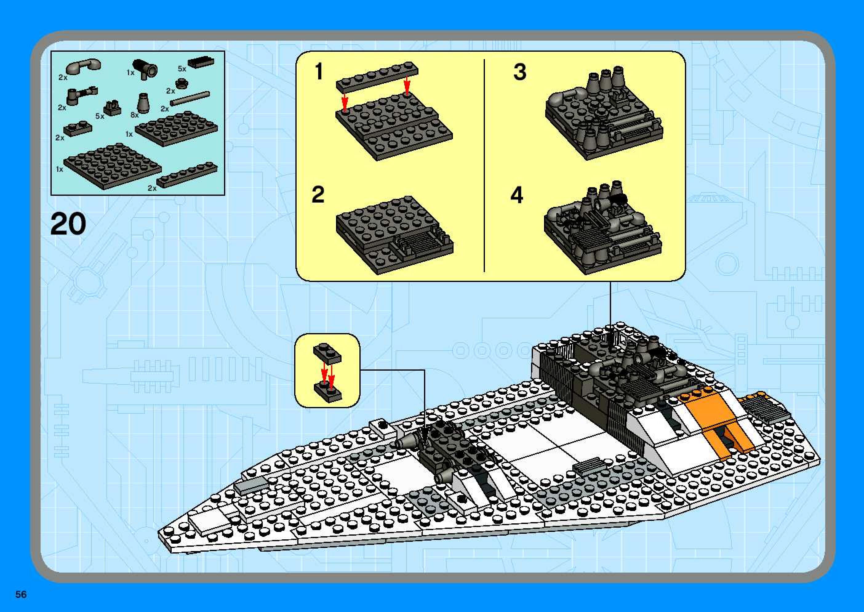 The assembly guide is prepared in a very understandable way for children and adult LEGO enthusiasts. A total of 96 picture galleries are shown, explaining the step-by-step construction stages for 1 different structures.