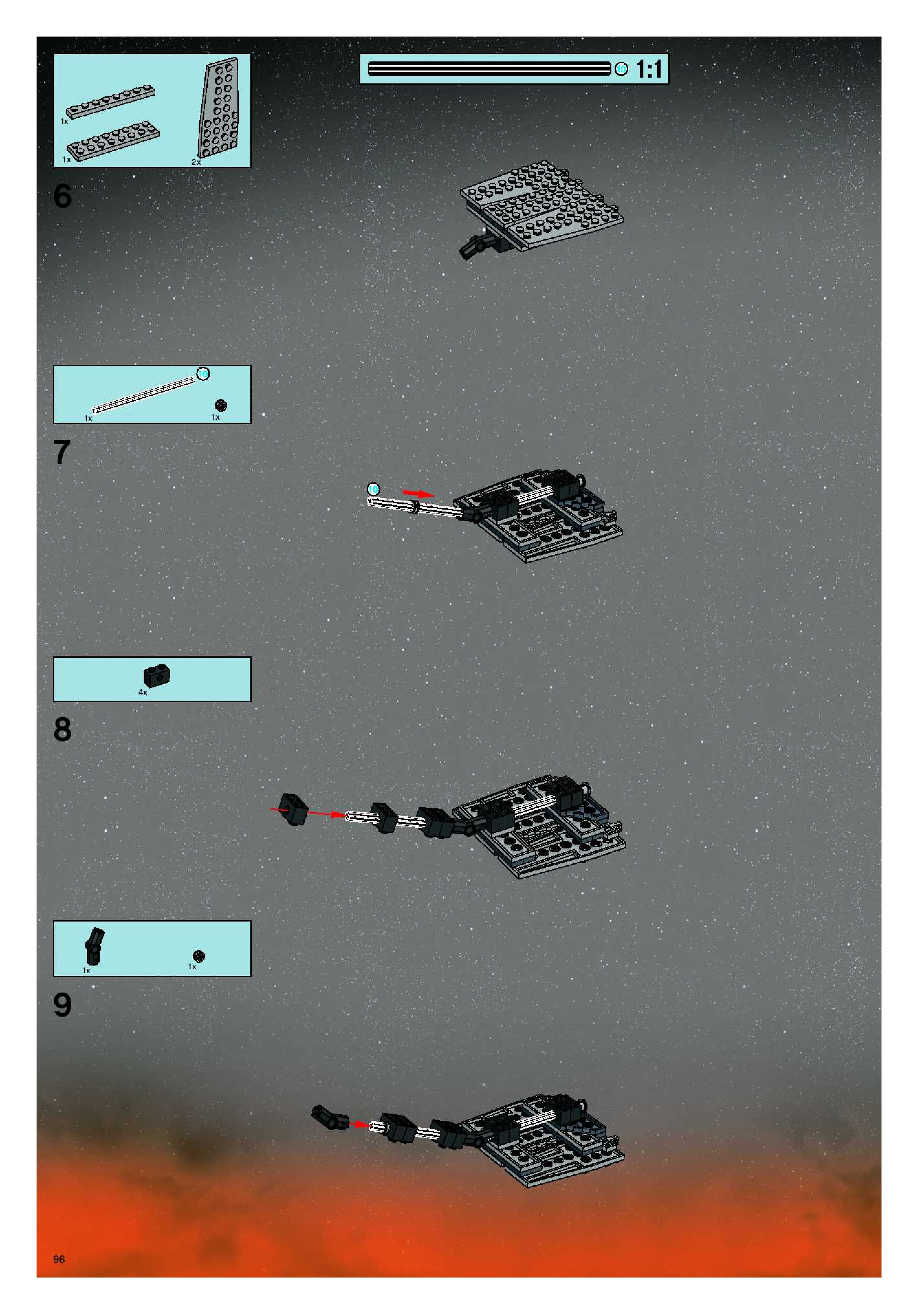 The assembly guide is prepared in a very understandable way for children and adult LEGO enthusiasts. A total of 96 picture galleries are shown, explaining the step-by-step construction stages for 1 different structures.