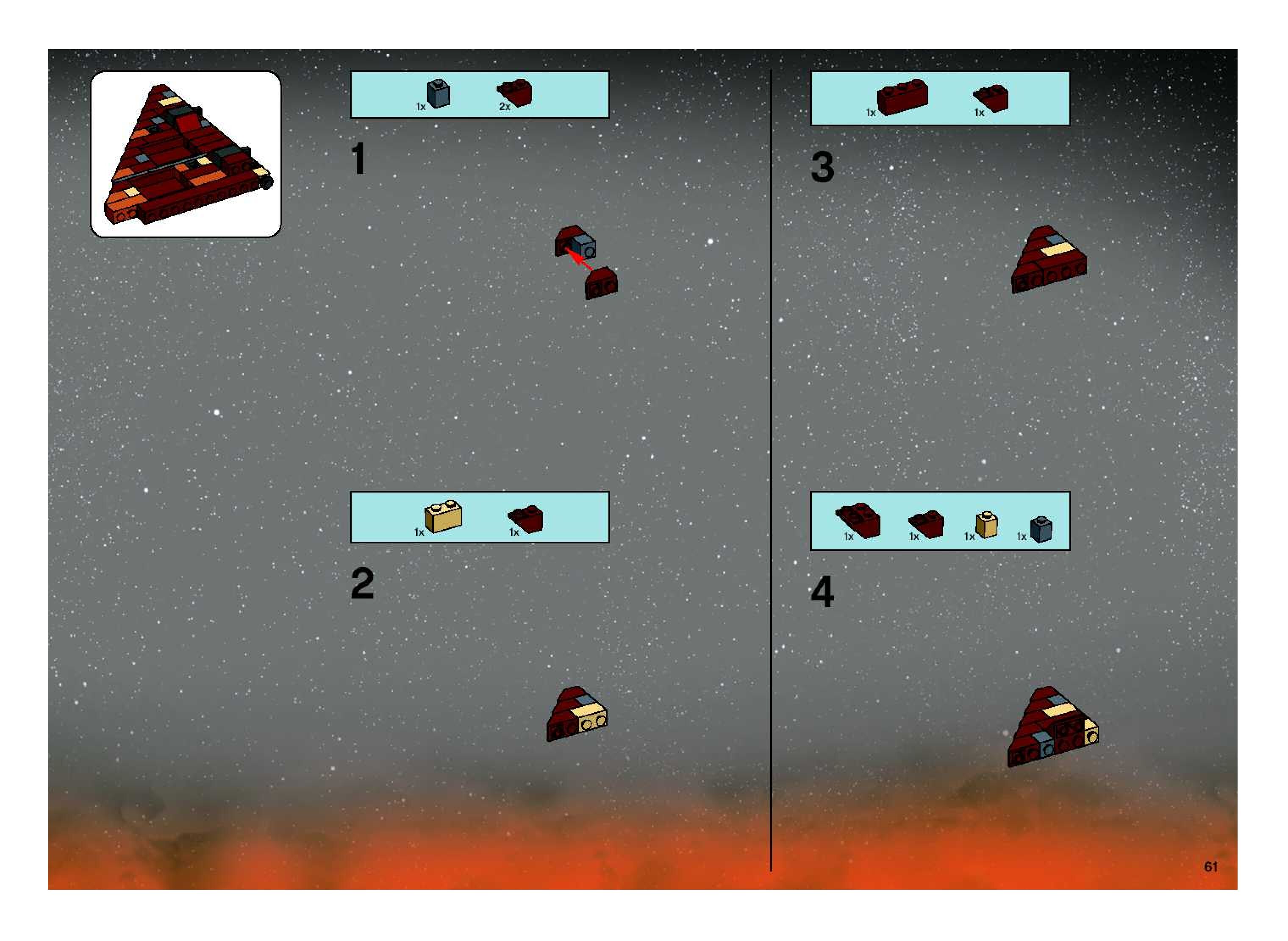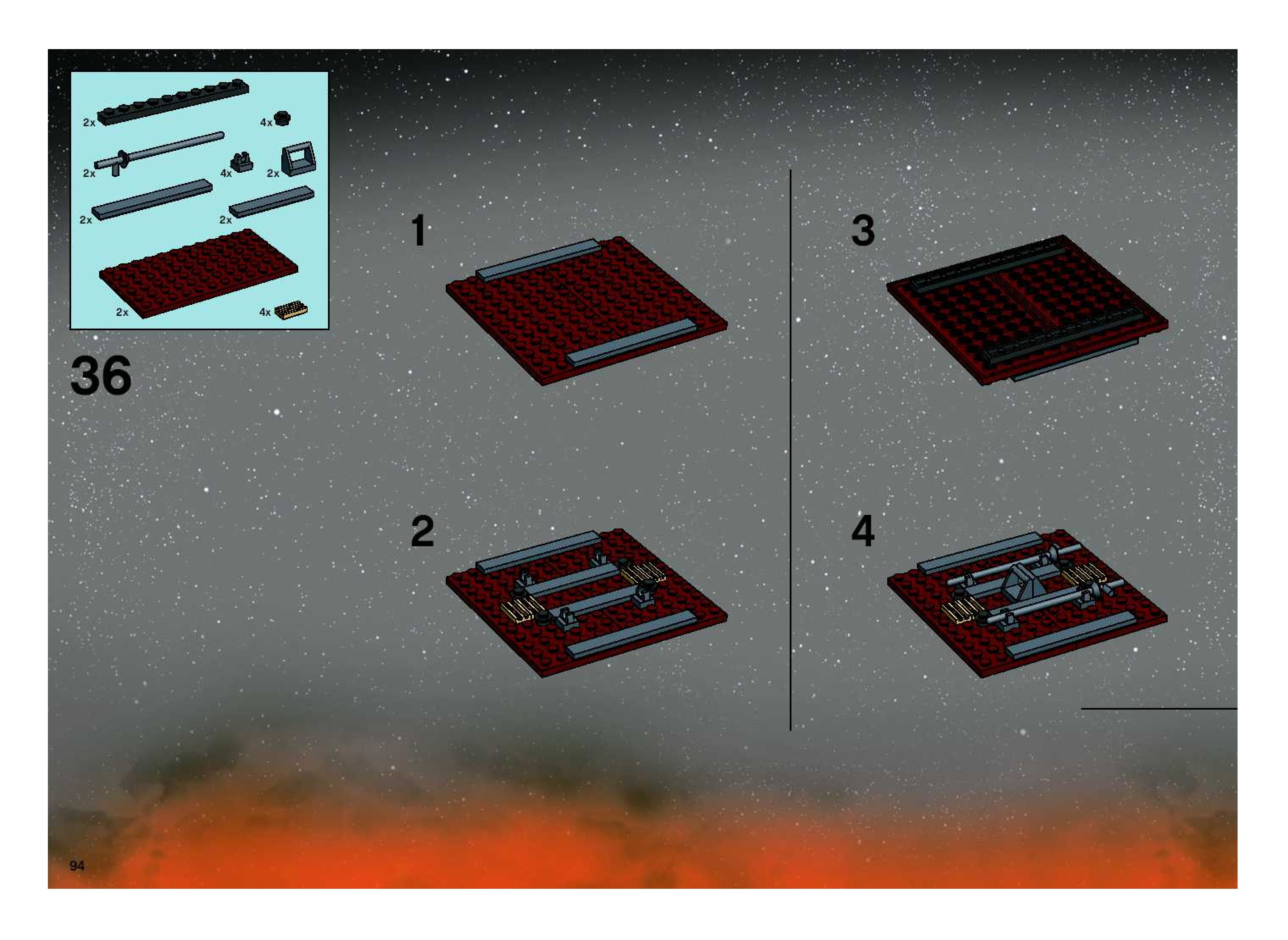 The assembly guide is prepared in a very understandable way for children and adult LEGO enthusiasts. A total of 96 picture galleries are shown, explaining the step-by-step construction stages for 1 different structures.