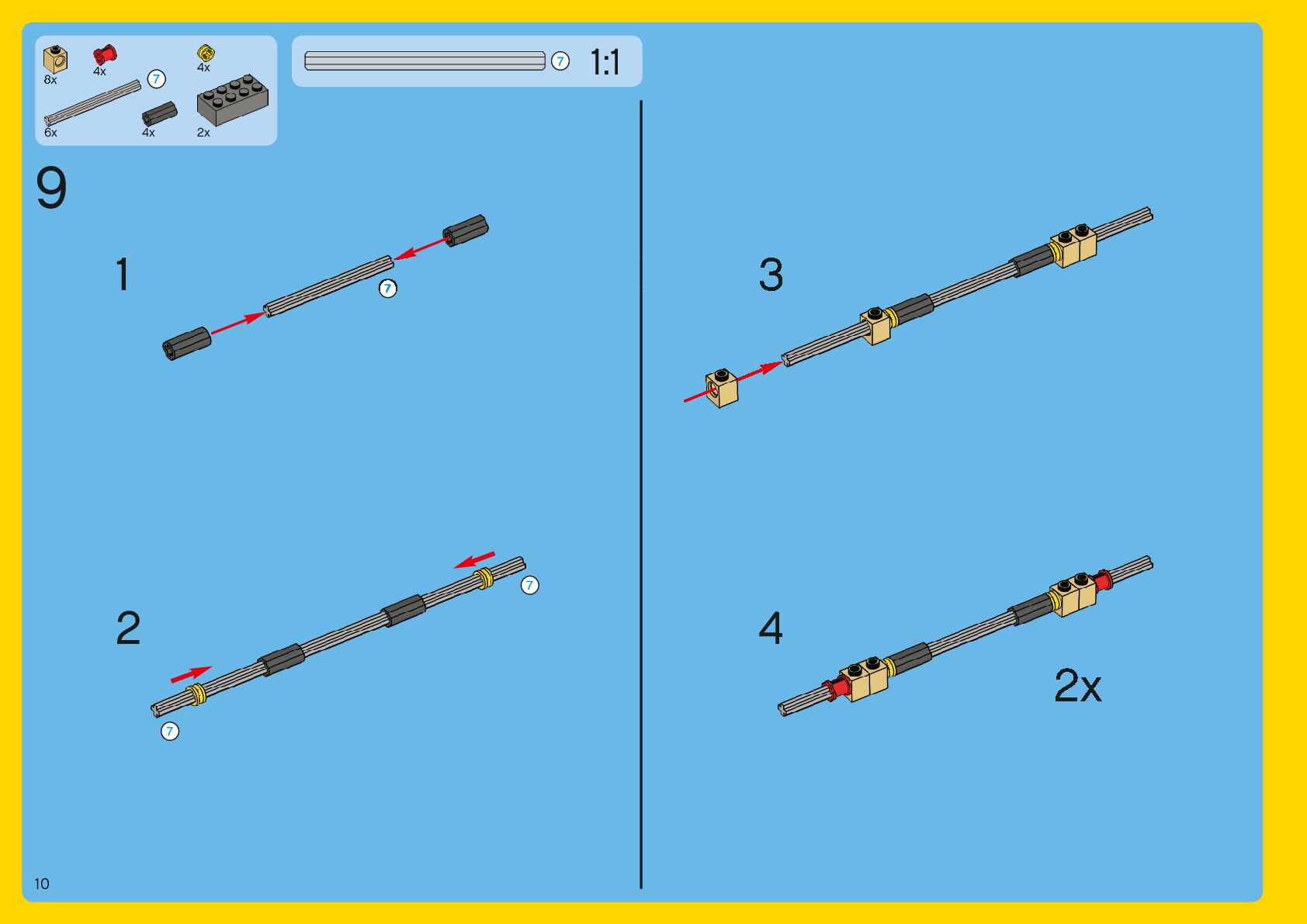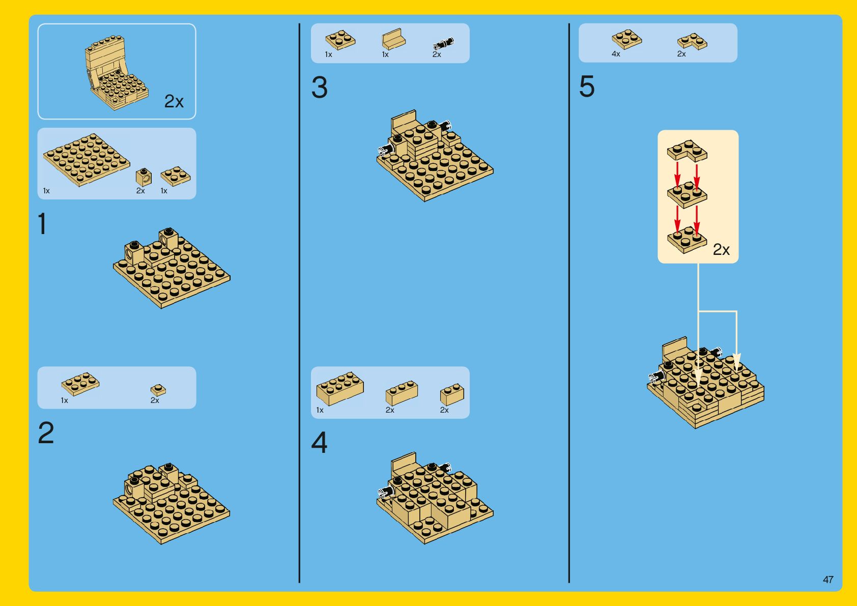 The assembly guide is prepared in a very understandable way for children and adult LEGO enthusiasts. A total of 560 picture galleries are shown, explaining the step-by-step construction stages for 2 different structures.