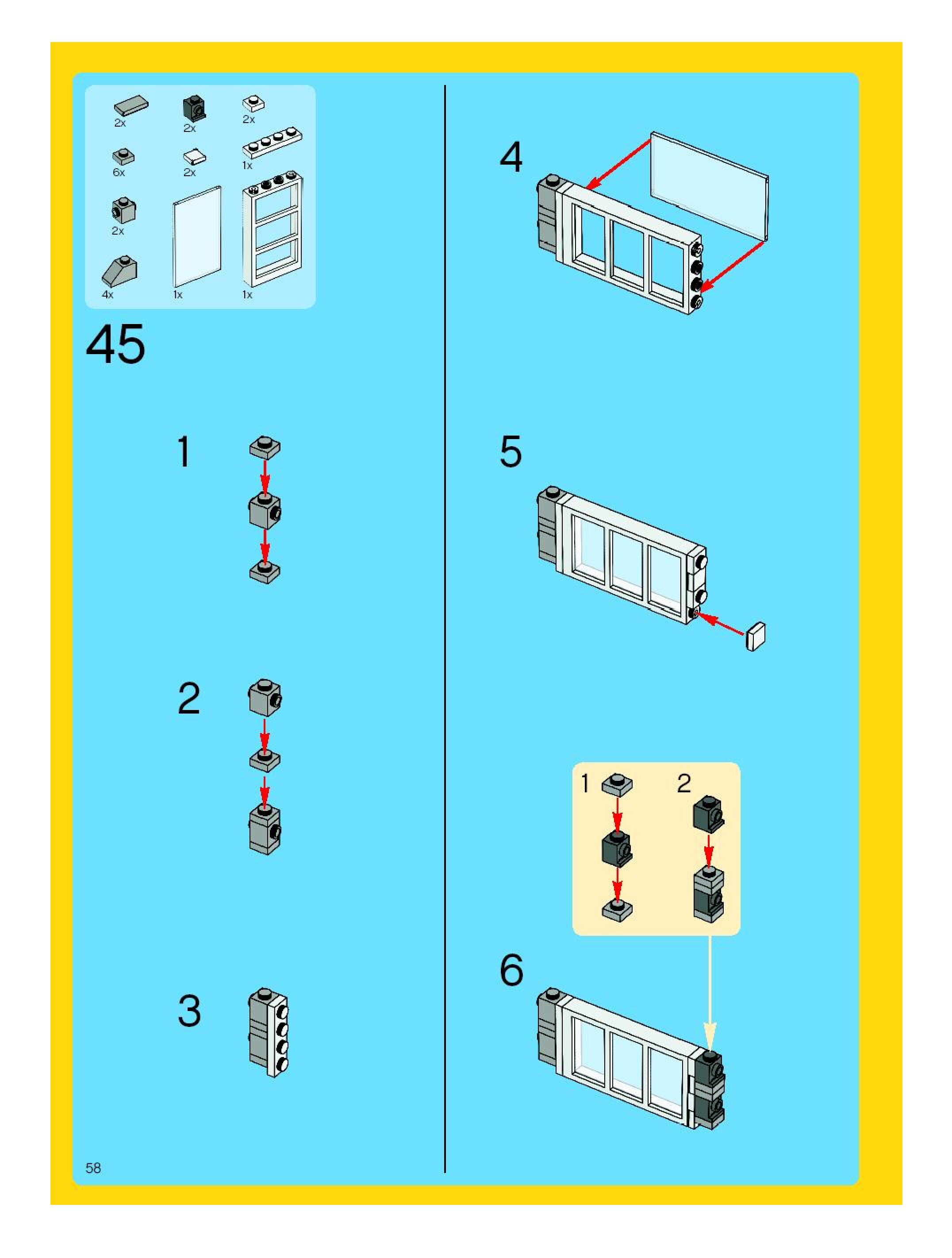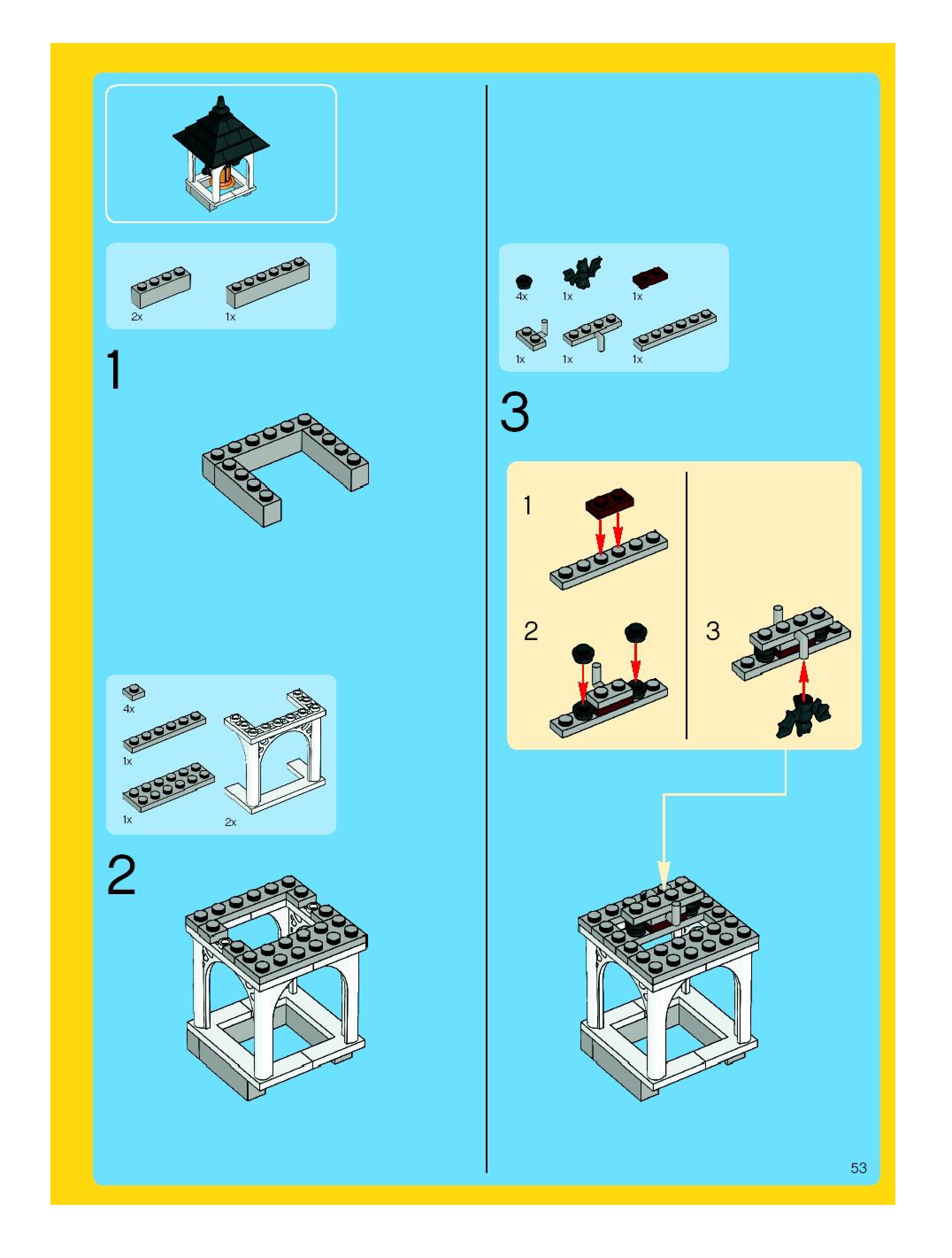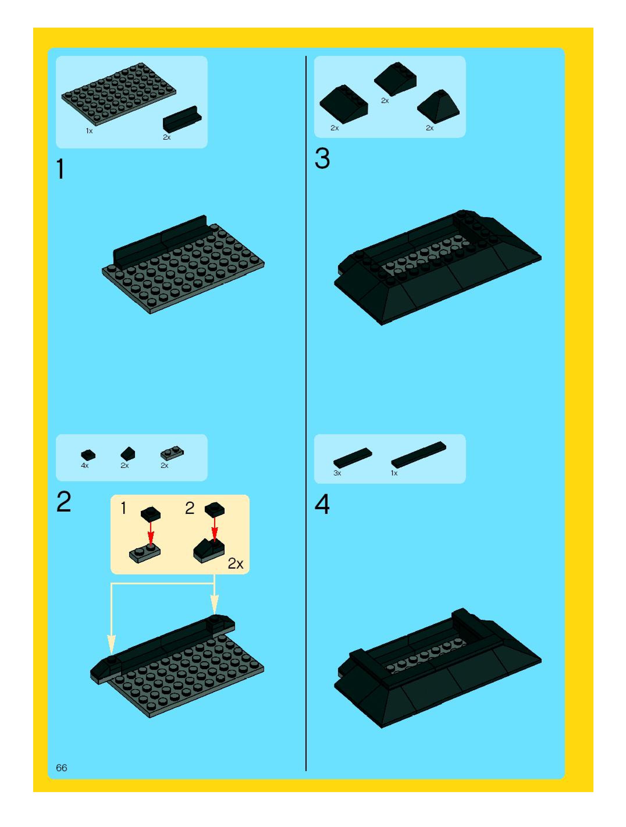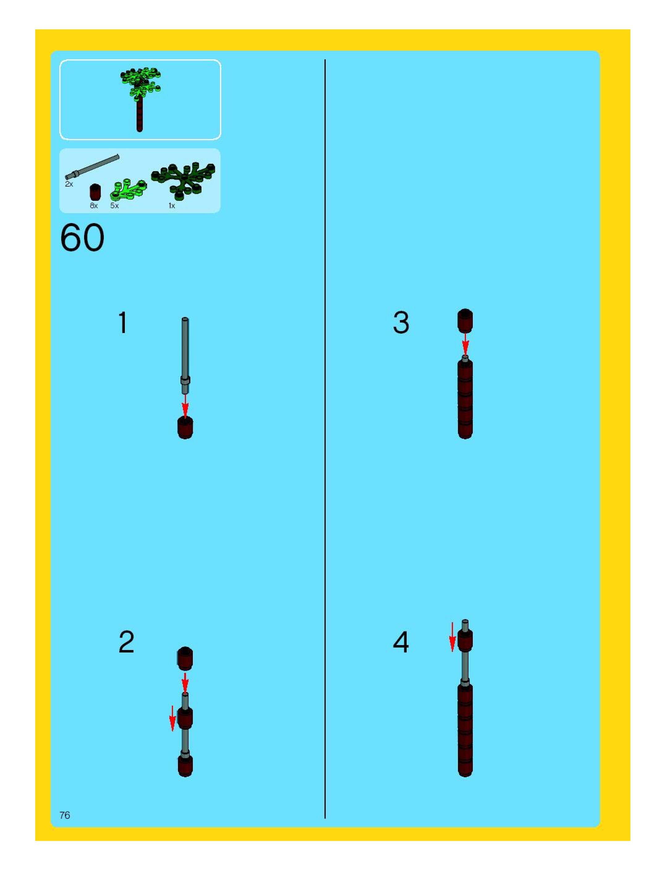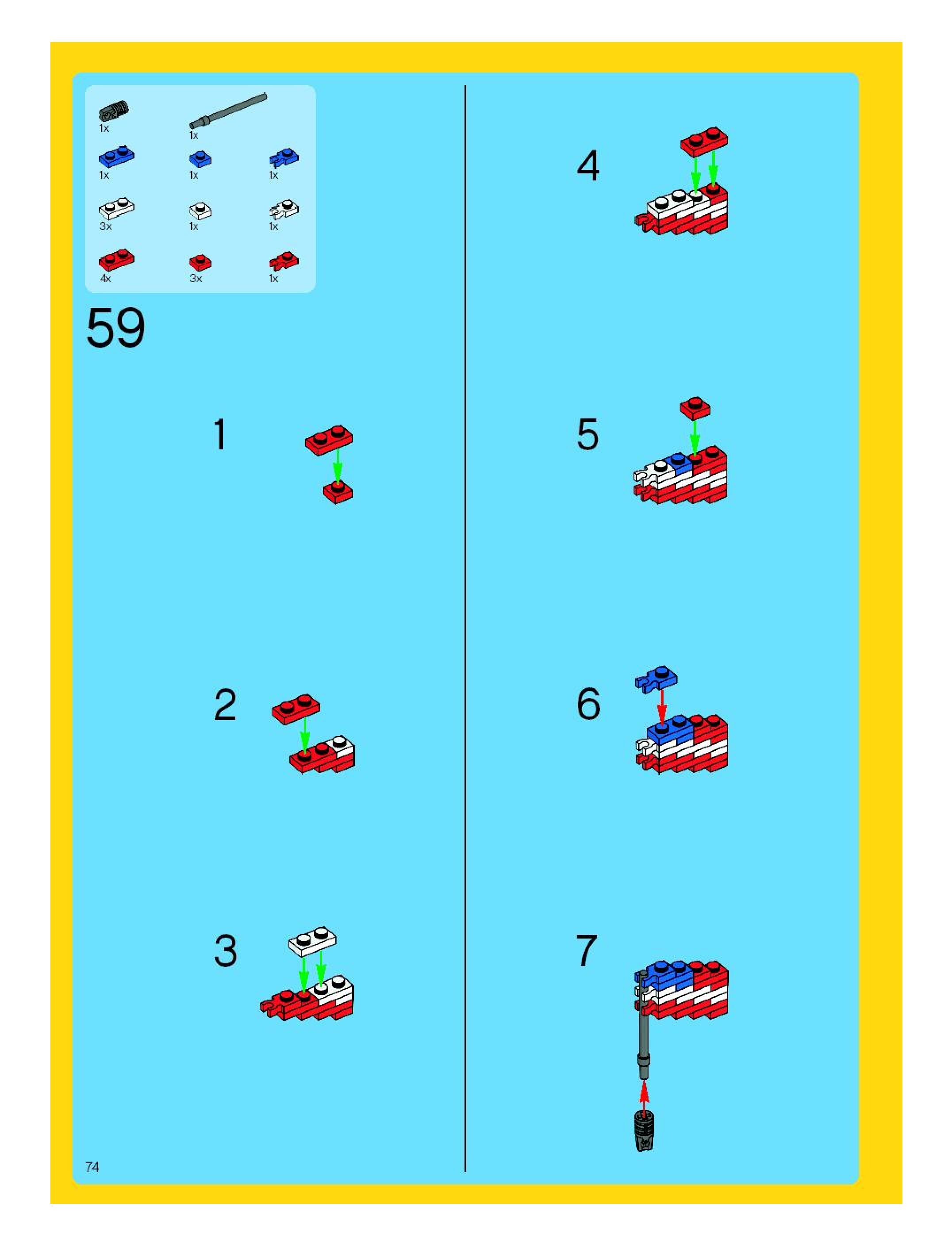 The assembly guide is prepared in a very understandable way for children and adult LEGO enthusiasts. A total of 592 picture galleries are shown, explaining the step-by-step construction stages for 2 different structures.