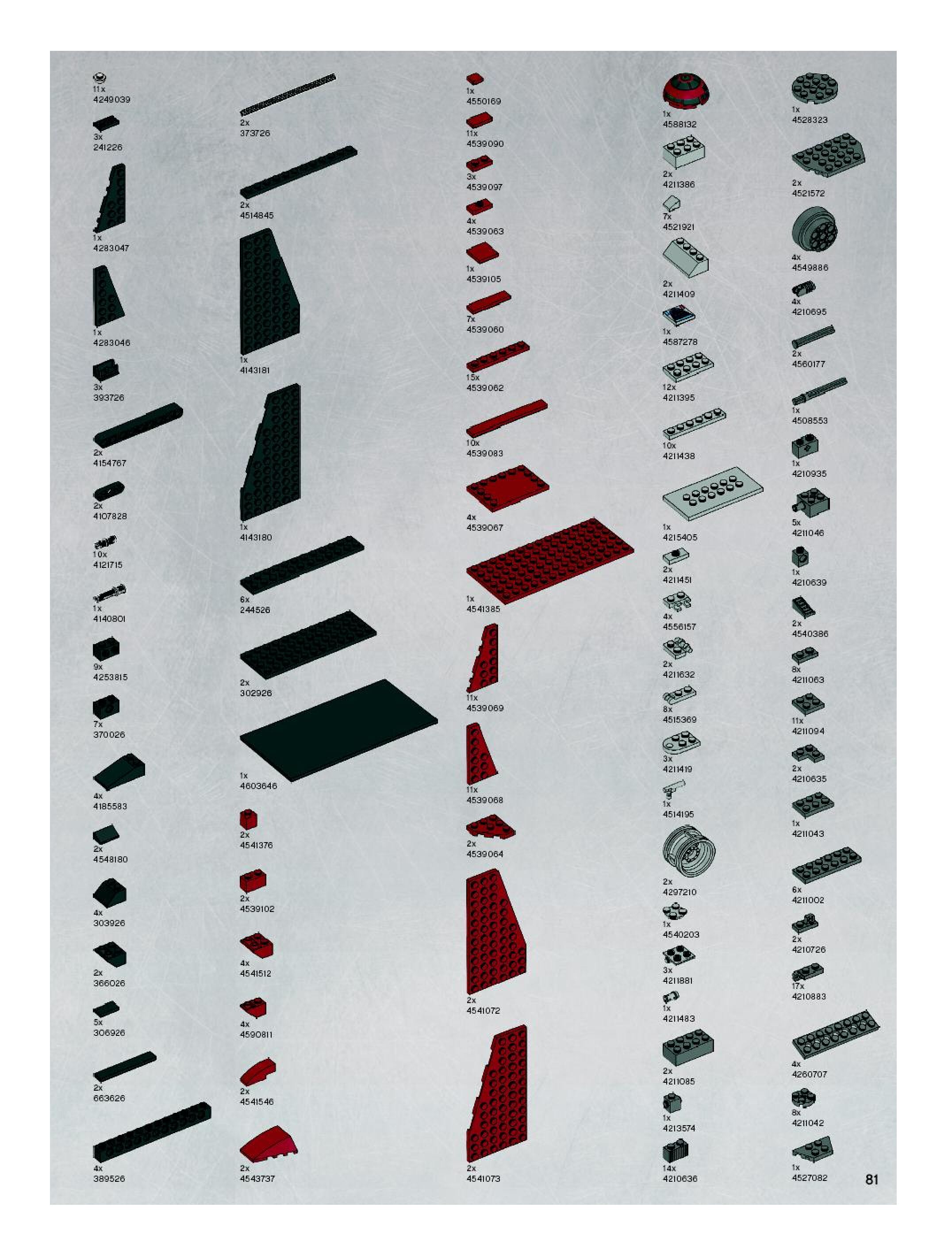 The assembly guide is prepared in a very understandable way for children and adult LEGO enthusiasts. A total of 84 picture galleries are shown, explaining the step-by-step construction stages for 1 different structures.