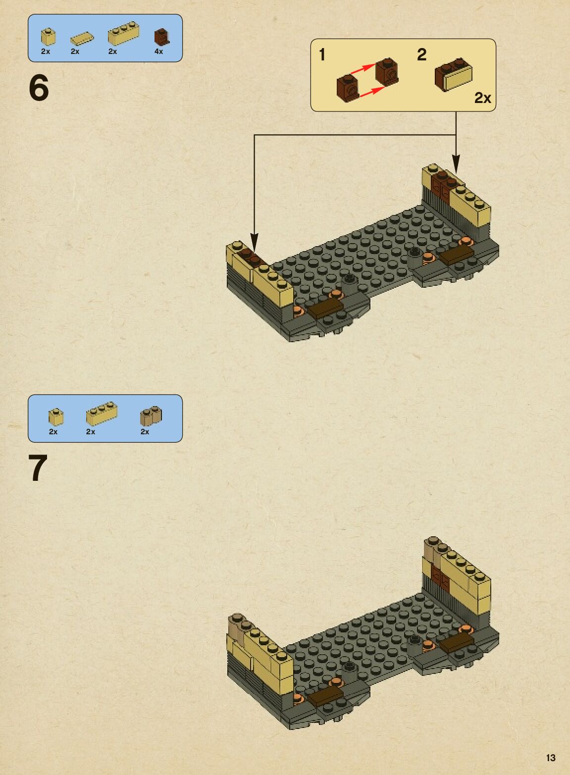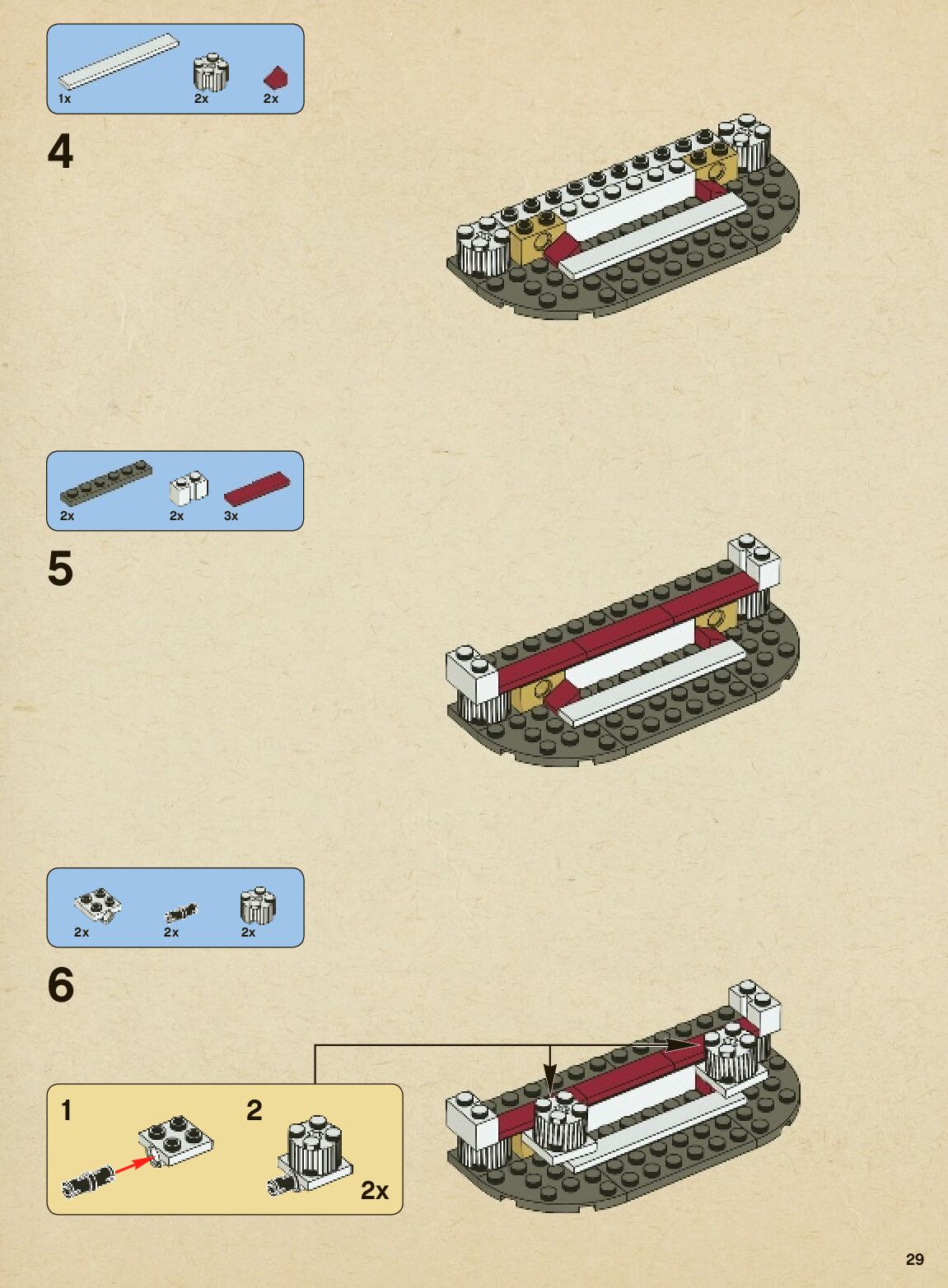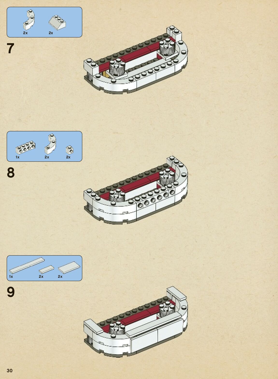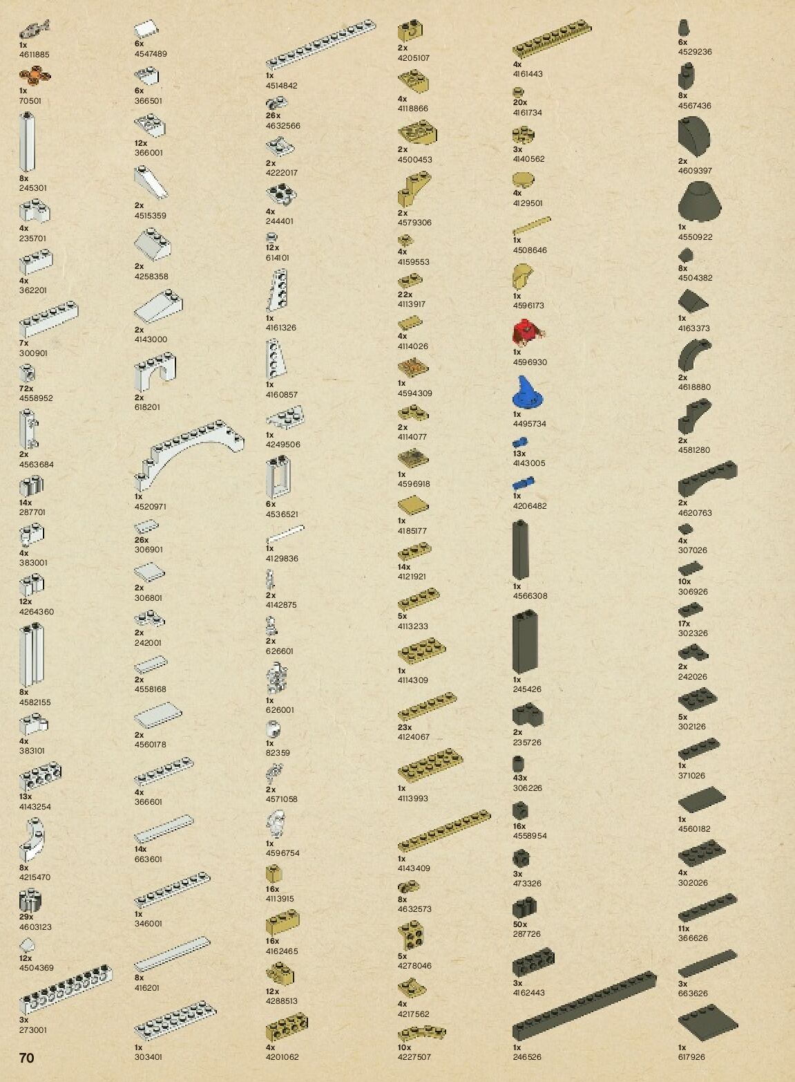 The assembly guide is prepared in a very understandable way for children and adult LEGO enthusiasts. A total of 184 picture galleries are shown, explaining the step-by-step construction stages for 3 different structures.
