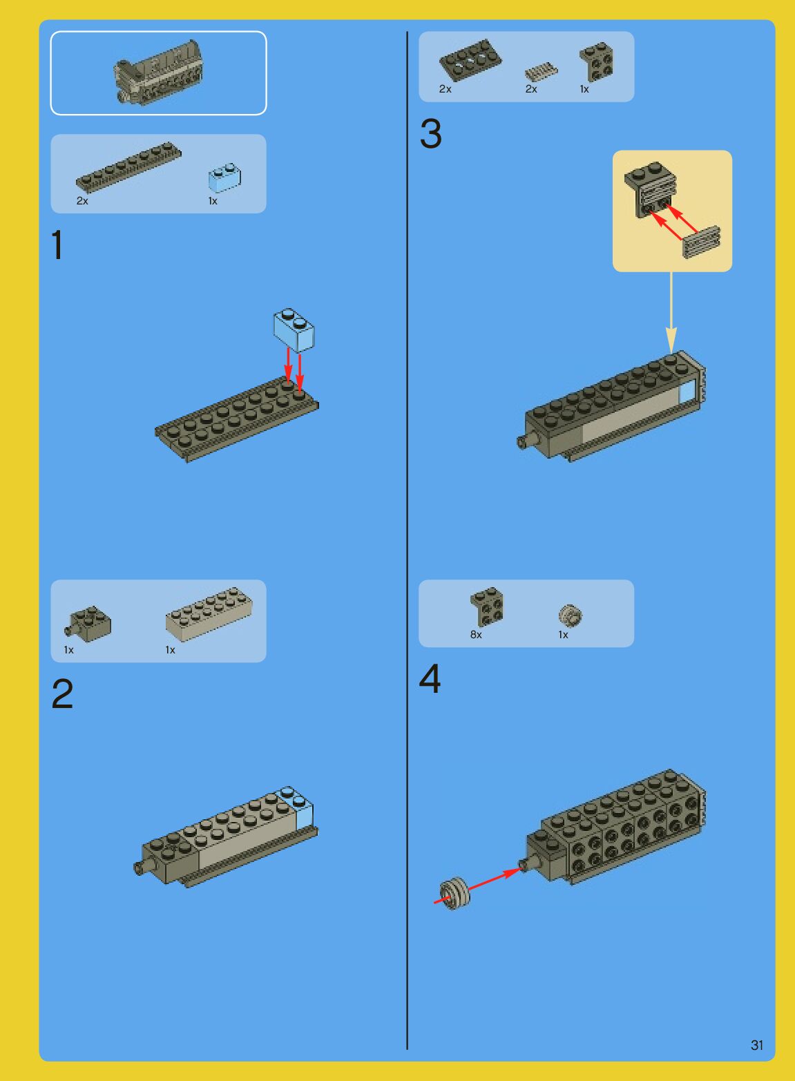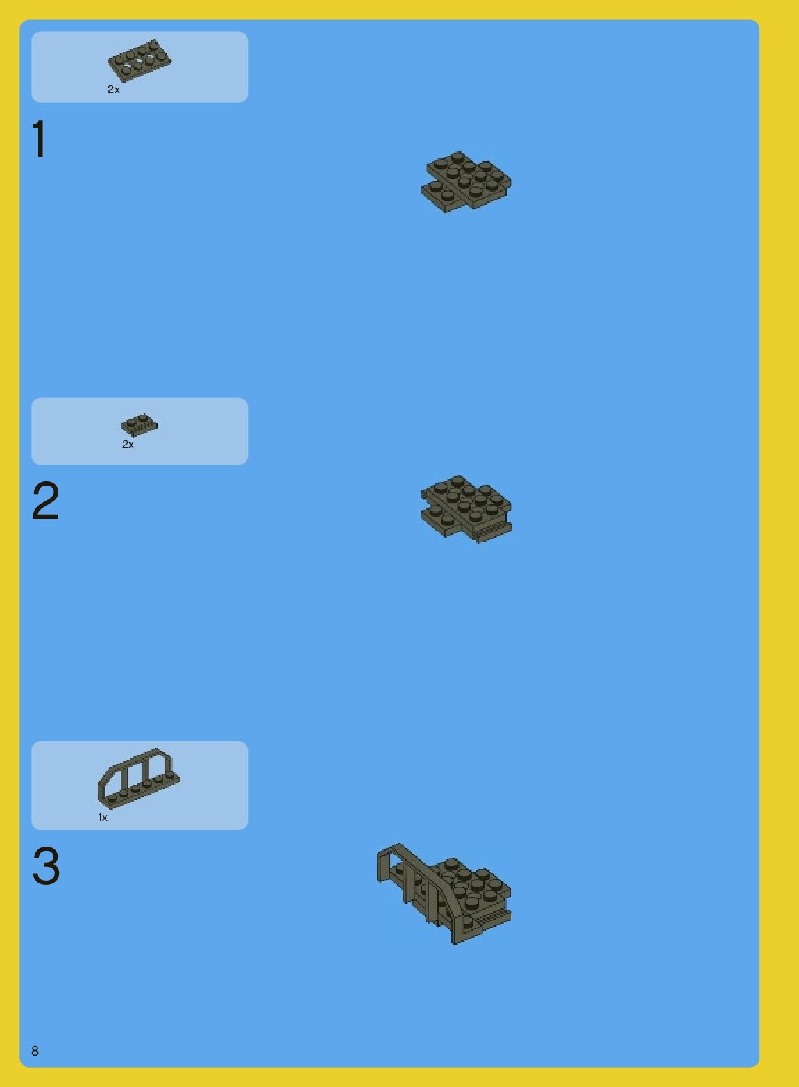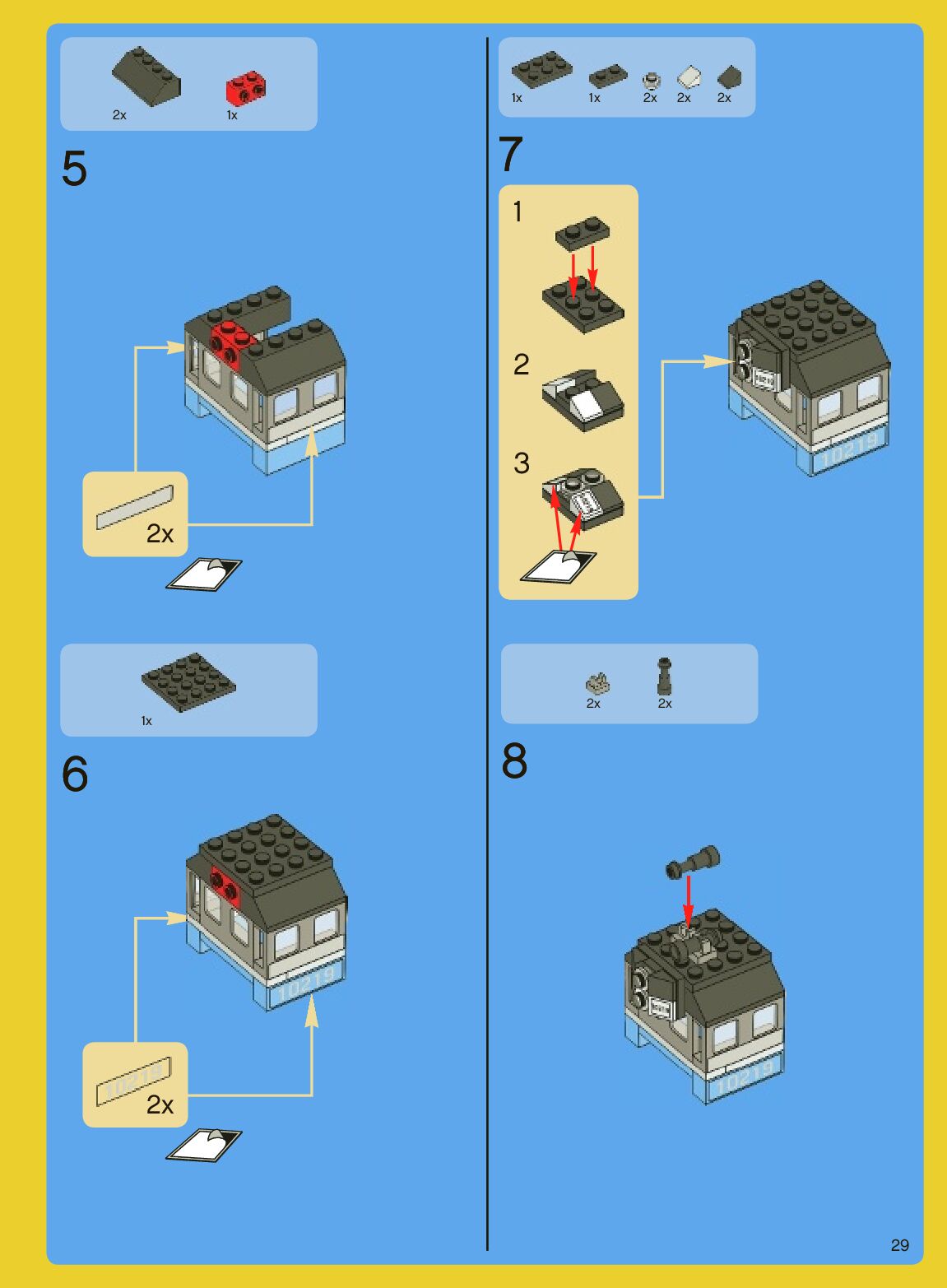 The assembly guide is prepared in a very understandable way for children and adult LEGO enthusiasts. A total of 640 picture galleries are shown, explaining the step-by-step construction stages for 2 different structures.
