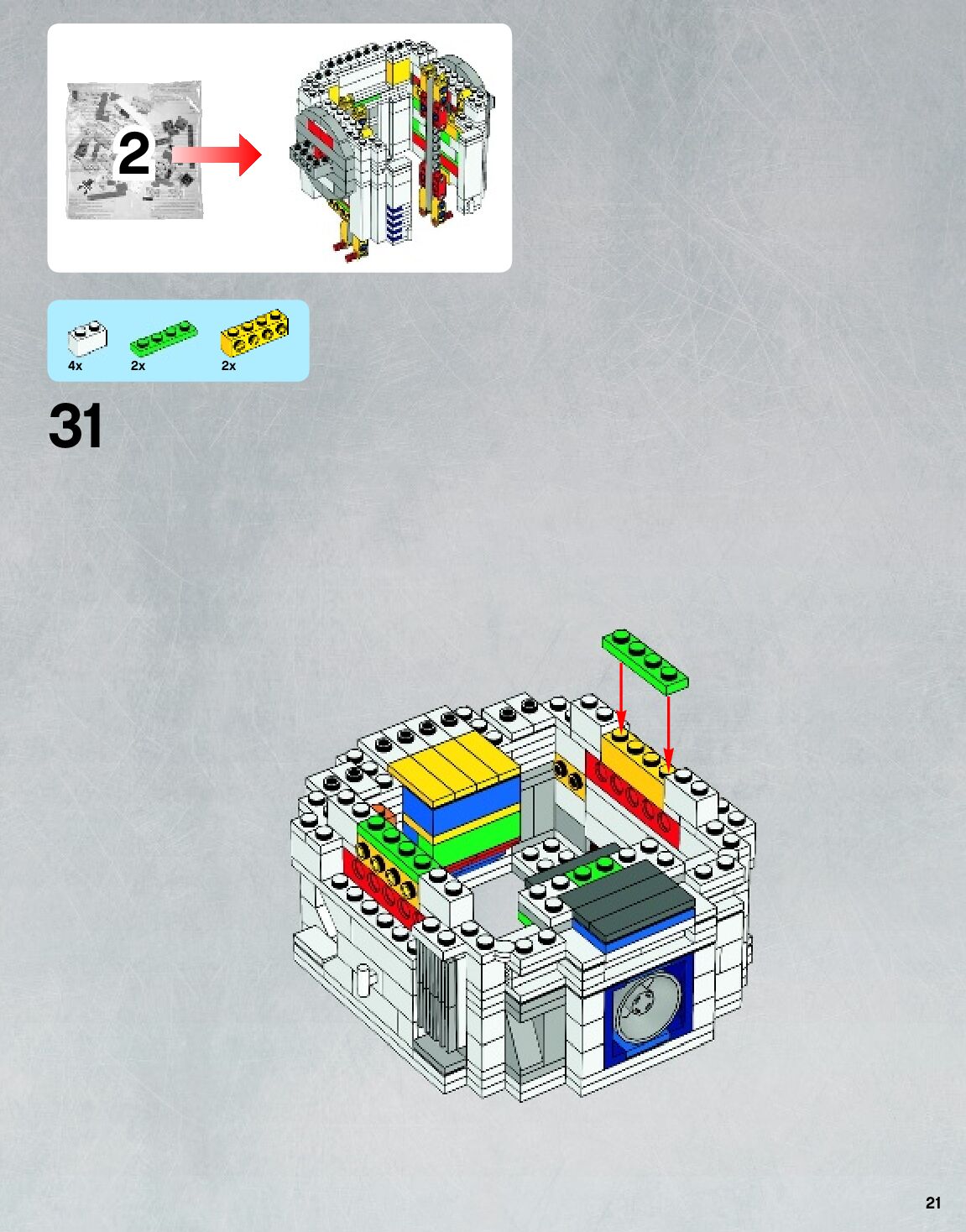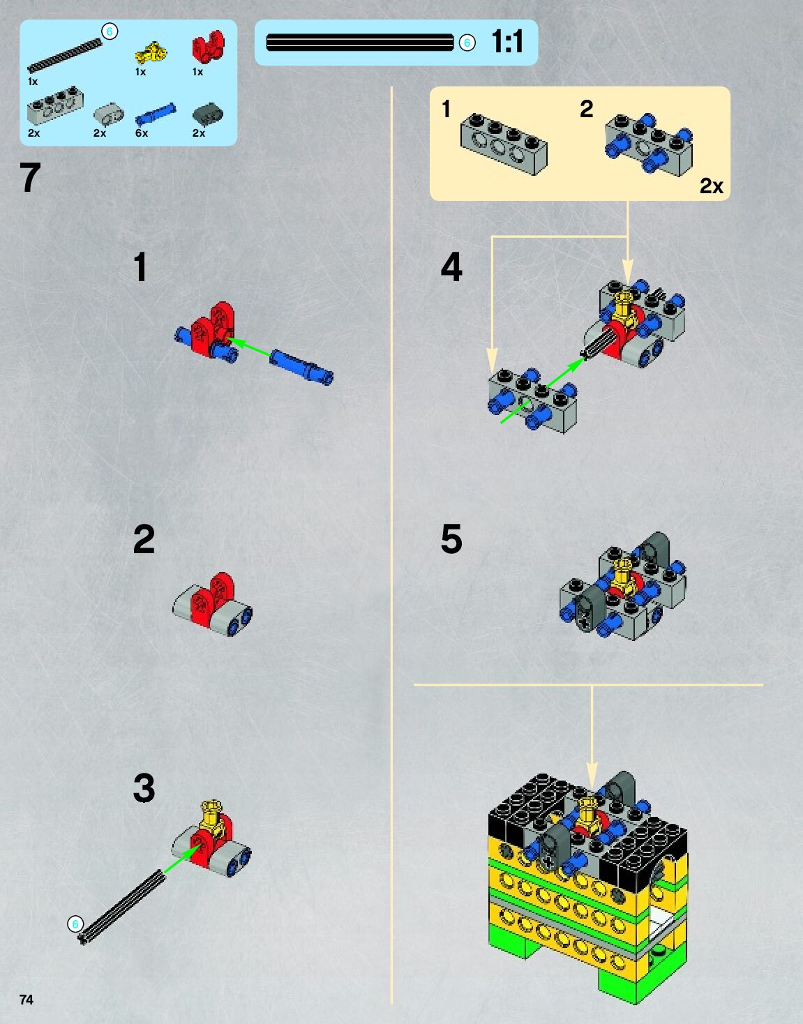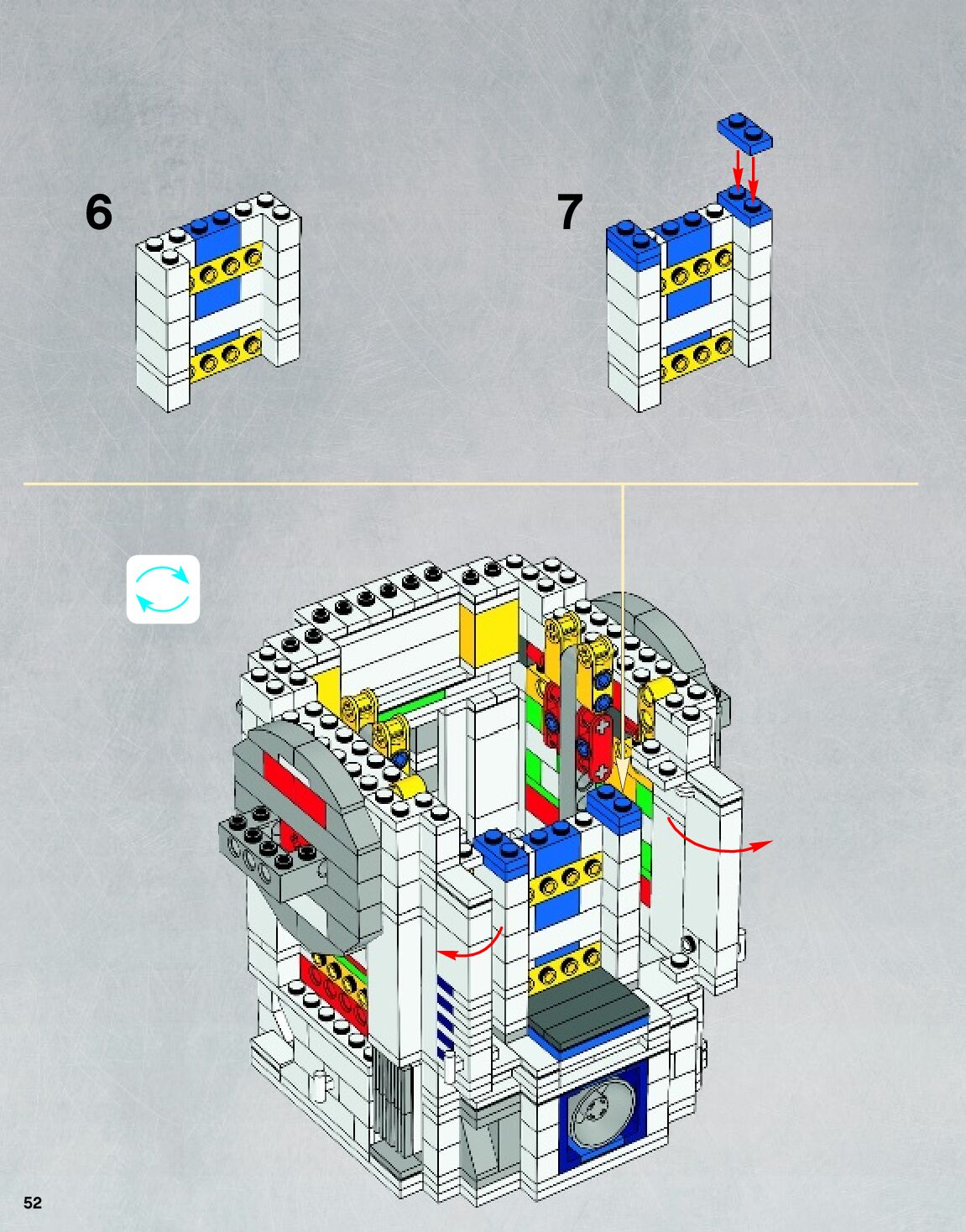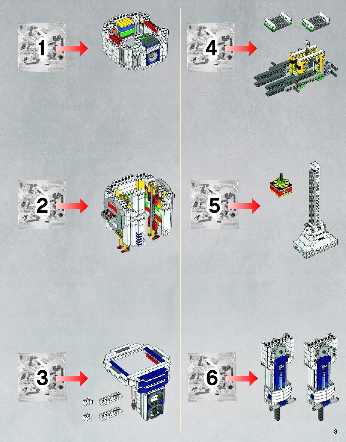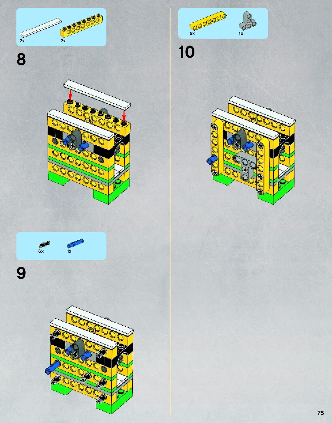 The assembly guide is prepared in a very understandable way for children and adult LEGO enthusiasts. A total of 212 picture galleries are shown, explaining the step-by-step construction stages for 3 different structures.