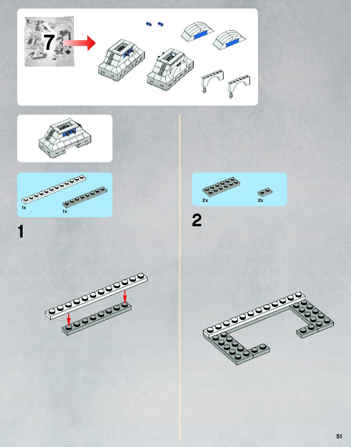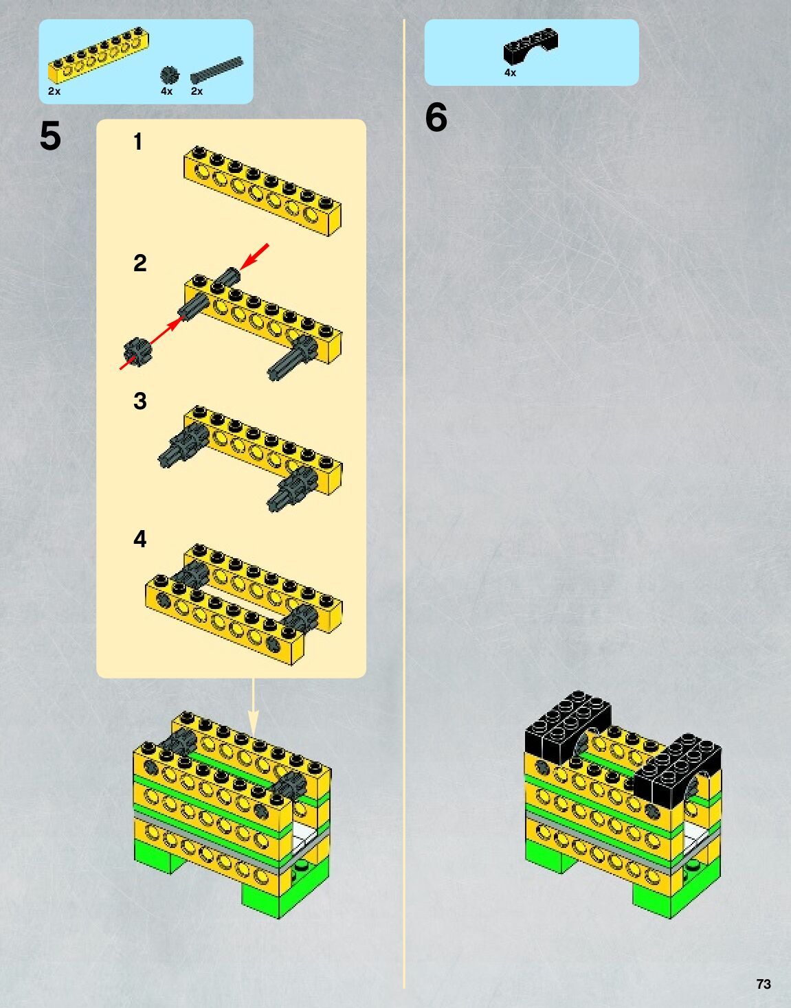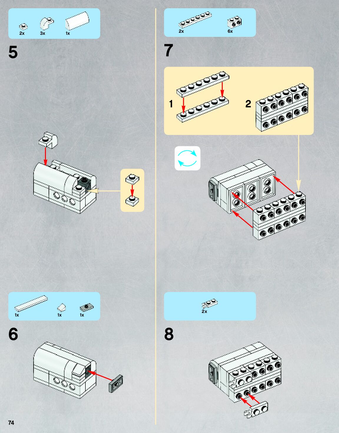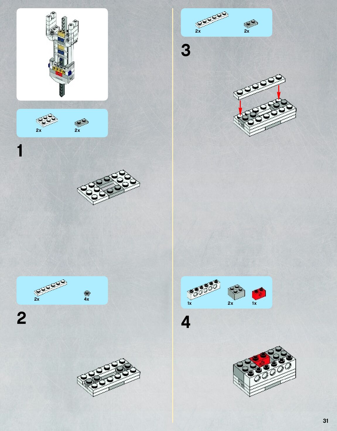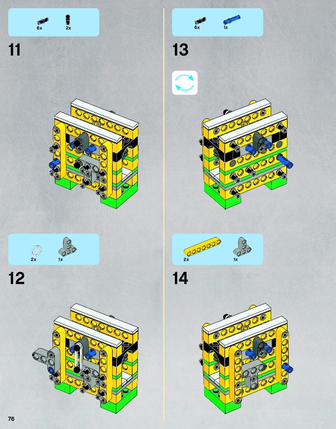 The assembly guide is prepared in a very understandable way for children and adult LEGO enthusiasts. A total of 212 picture galleries are shown, explaining the step-by-step construction stages for 3 different structures.