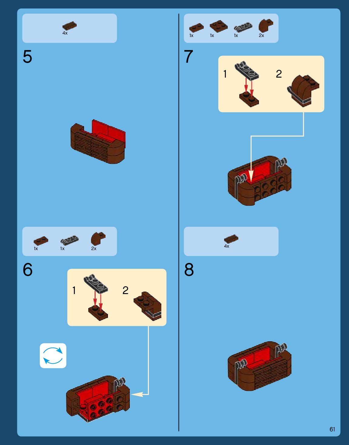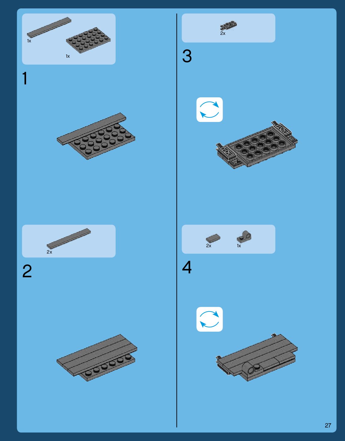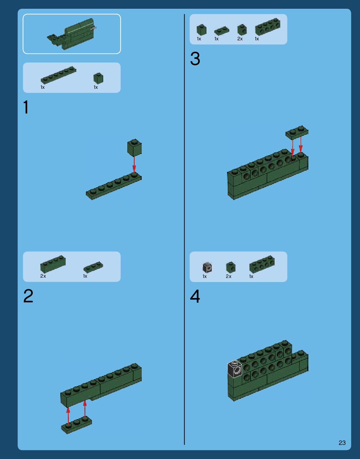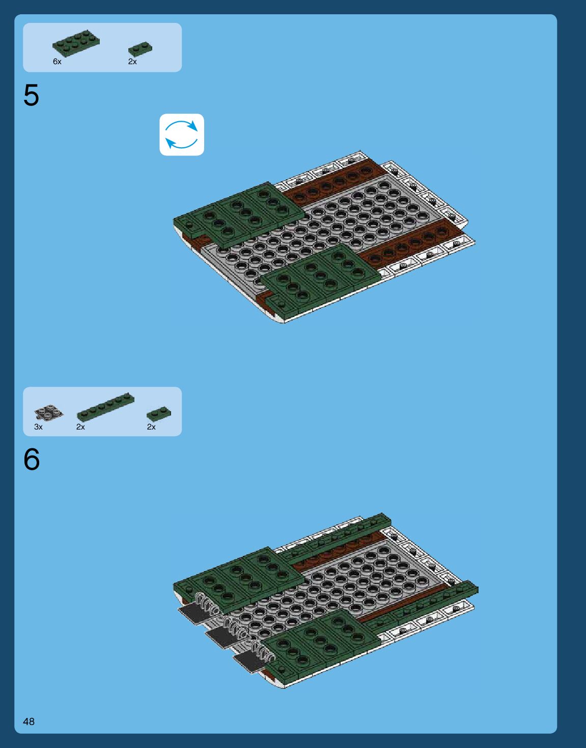 The assembly guide is prepared in a very understandable way for children and adult LEGO enthusiasts. A total of 496 picture galleries are shown, explaining the step-by-step construction stages for 2 different structures.