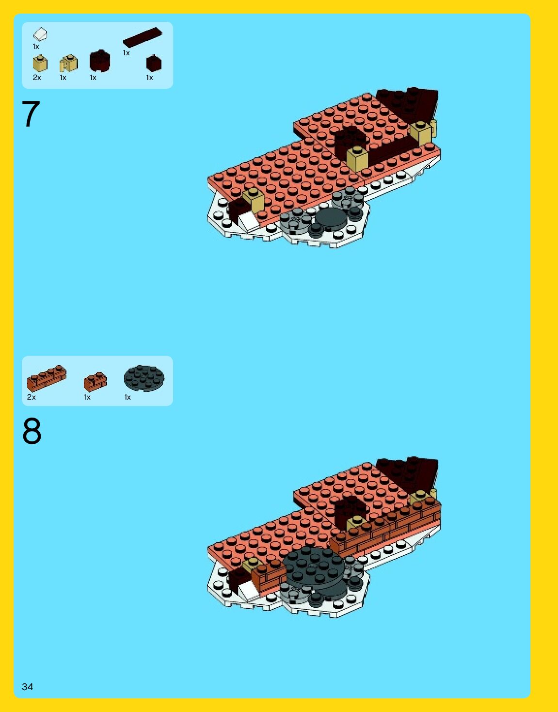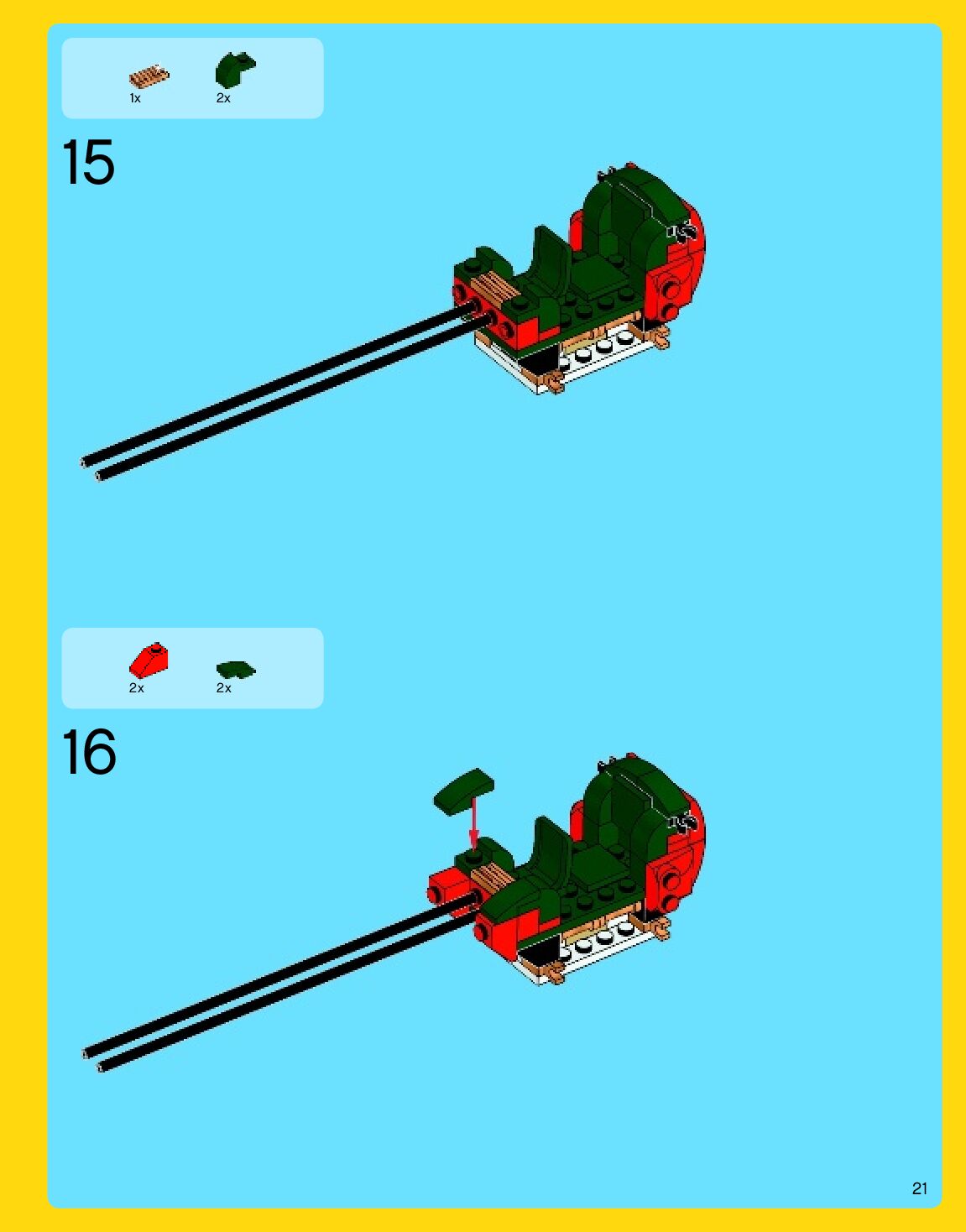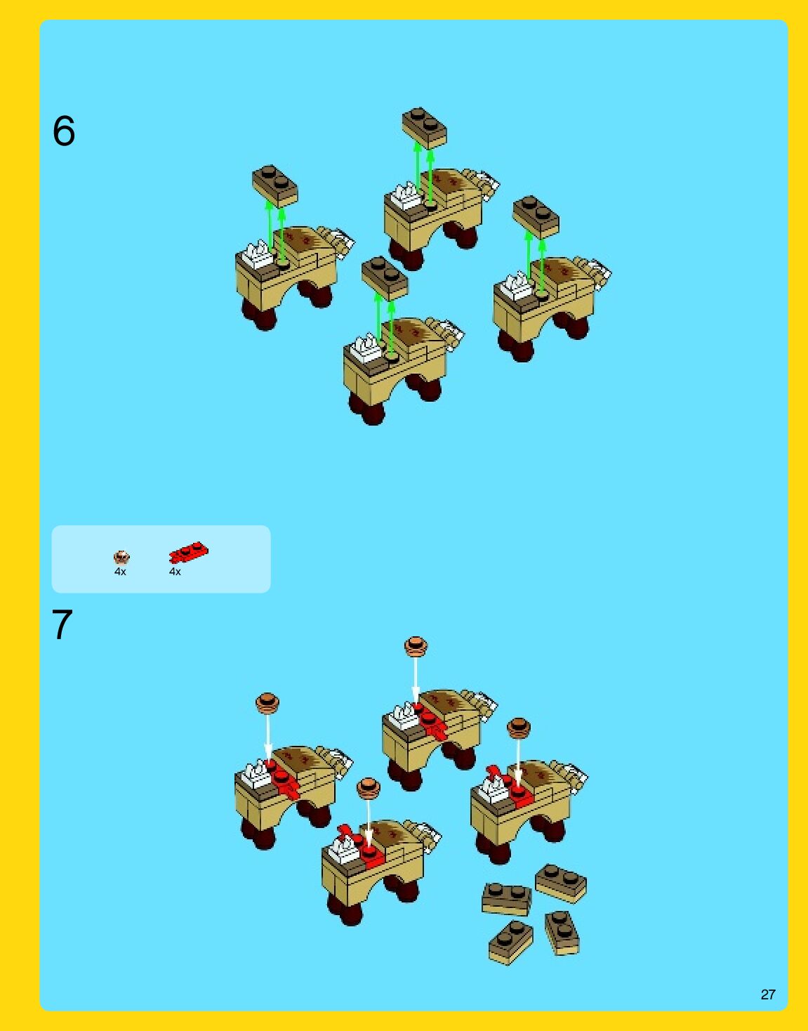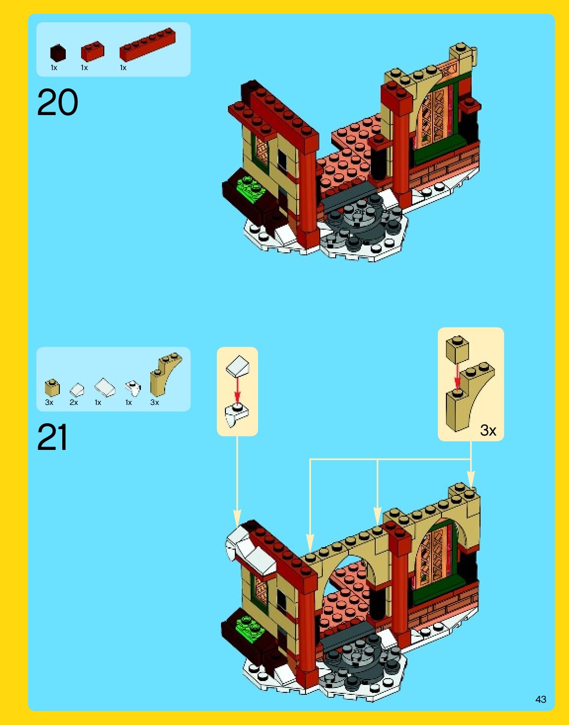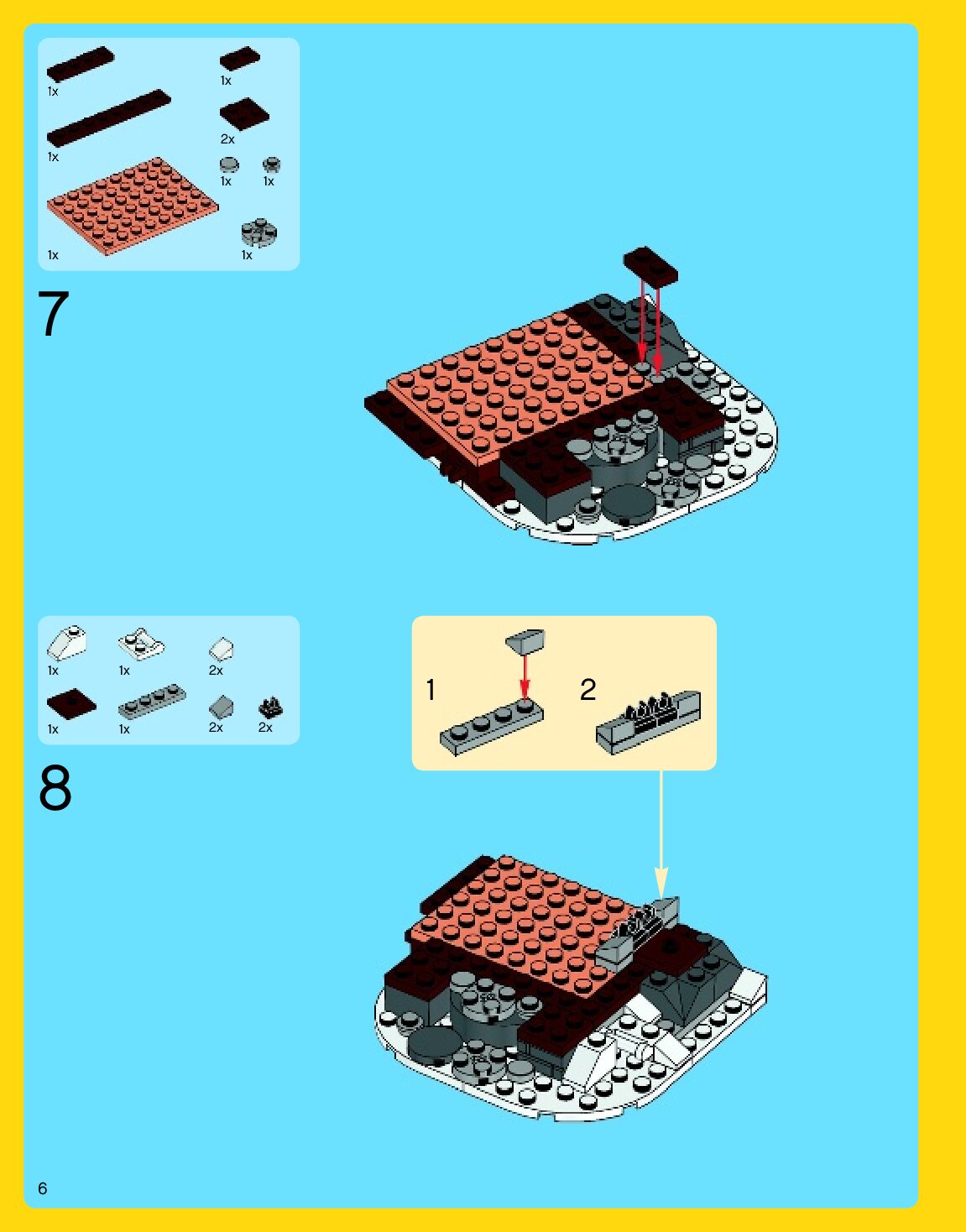 The assembly guide is prepared in a very understandable way for children and adult LEGO enthusiasts. A total of 416 picture galleries are shown, explaining the step-by-step construction stages for 2 different structures.
