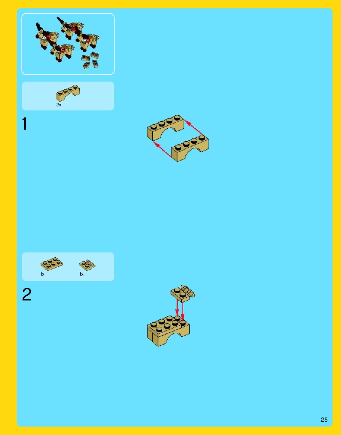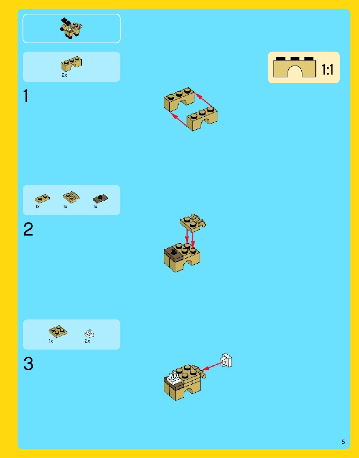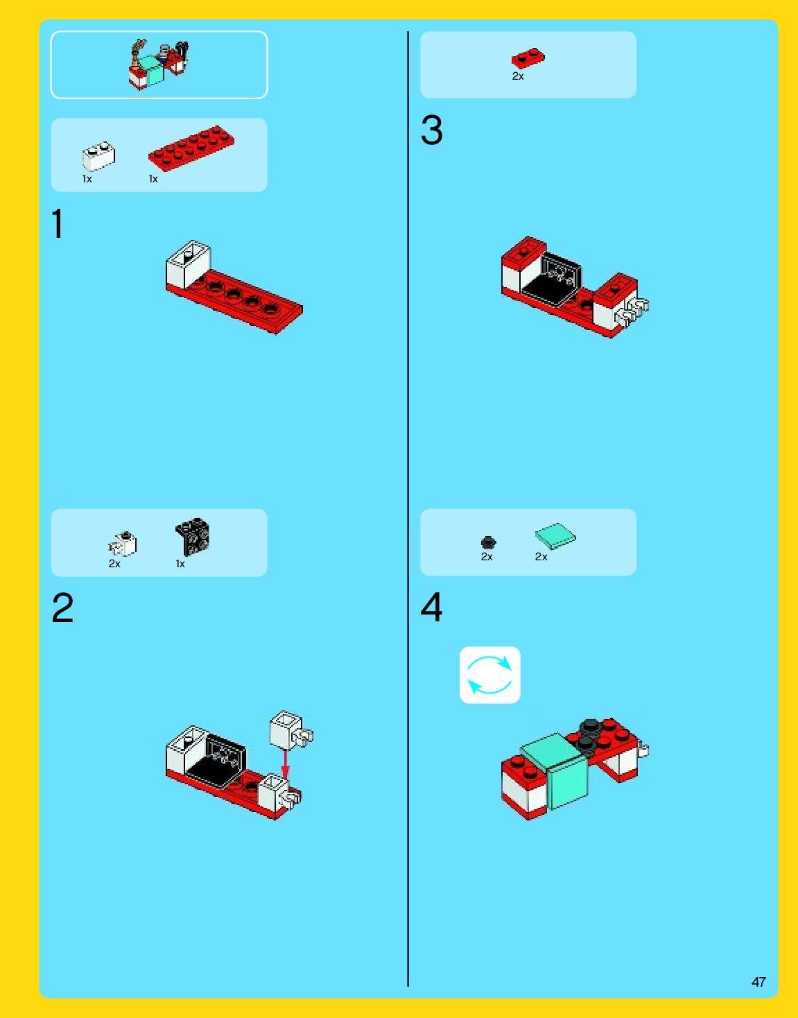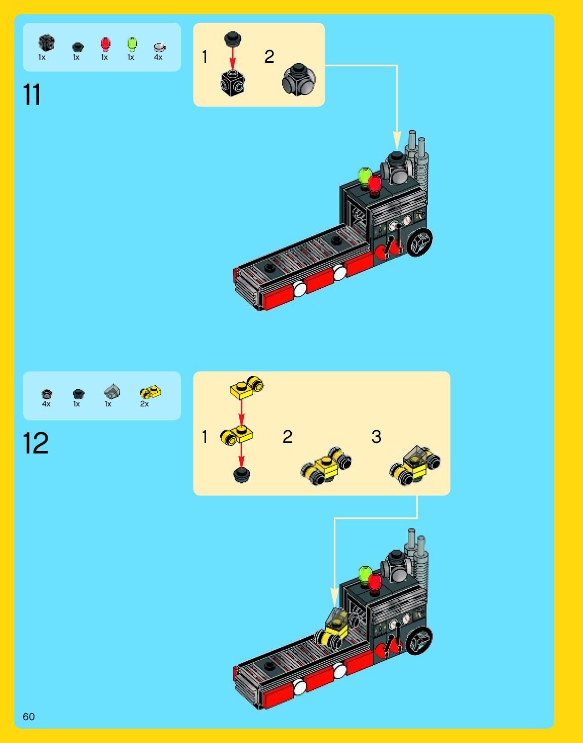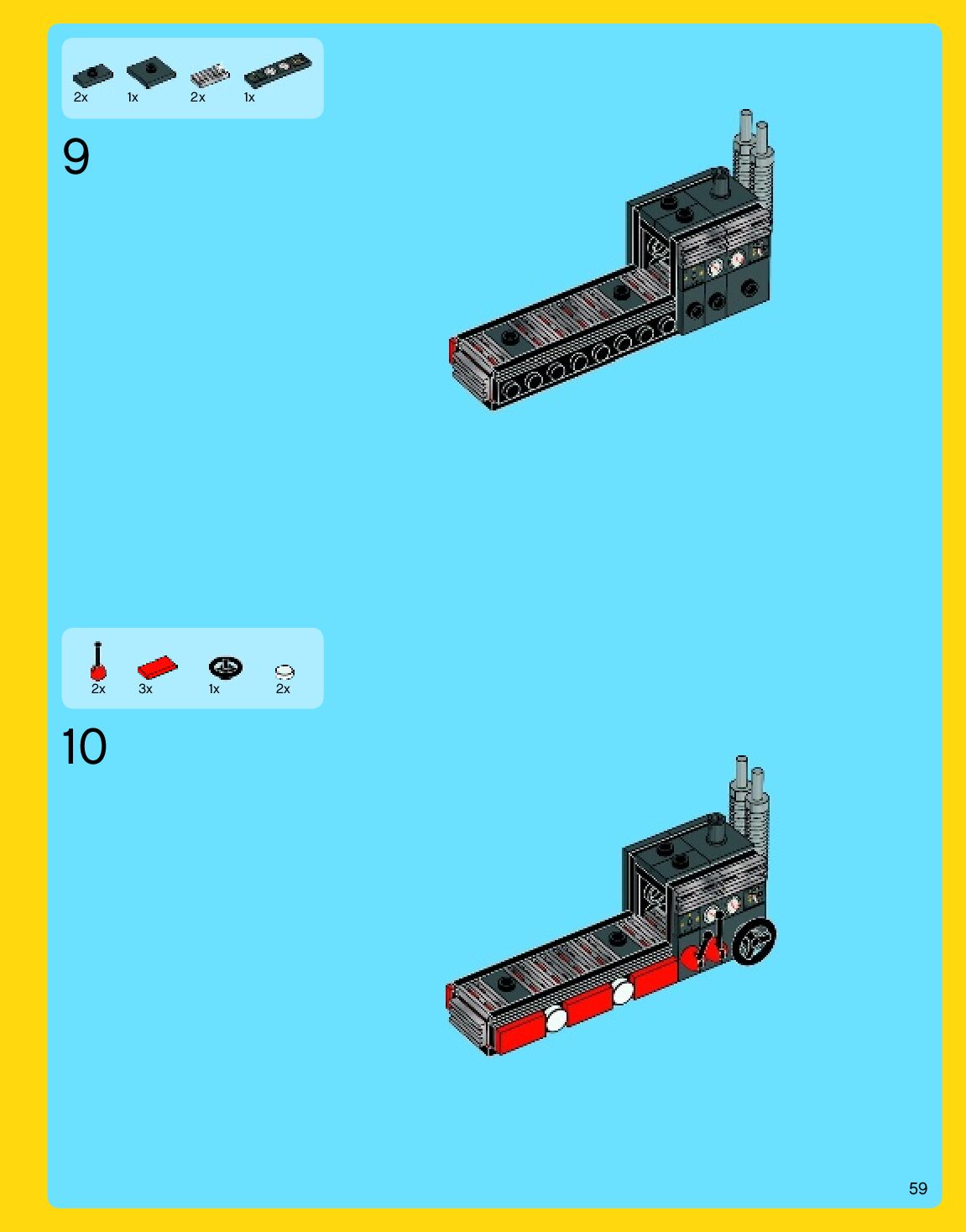 The assembly guide is prepared in a very understandable way for children and adult LEGO enthusiasts. A total of 416 picture galleries are shown, explaining the step-by-step construction stages for 2 different structures.
