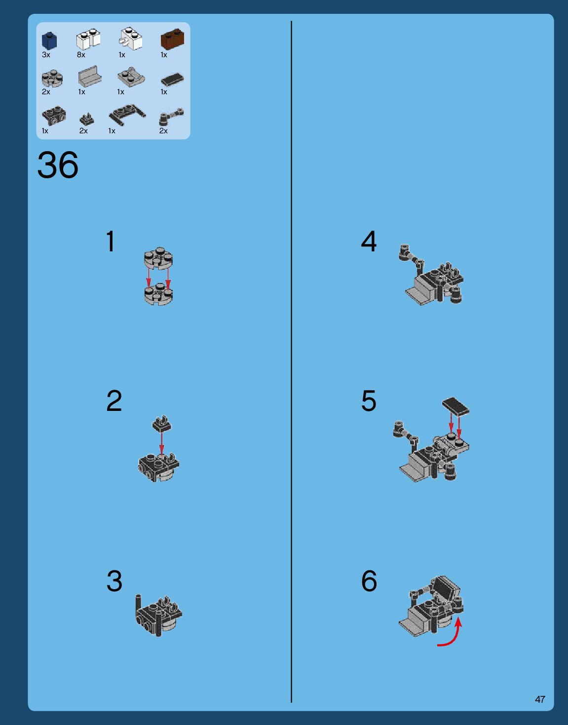 The assembly guide is prepared in a very understandable way for children and adult LEGO enthusiasts. A total of 176 picture galleries are shown, explaining the step-by-step construction stages for 1 different structures.