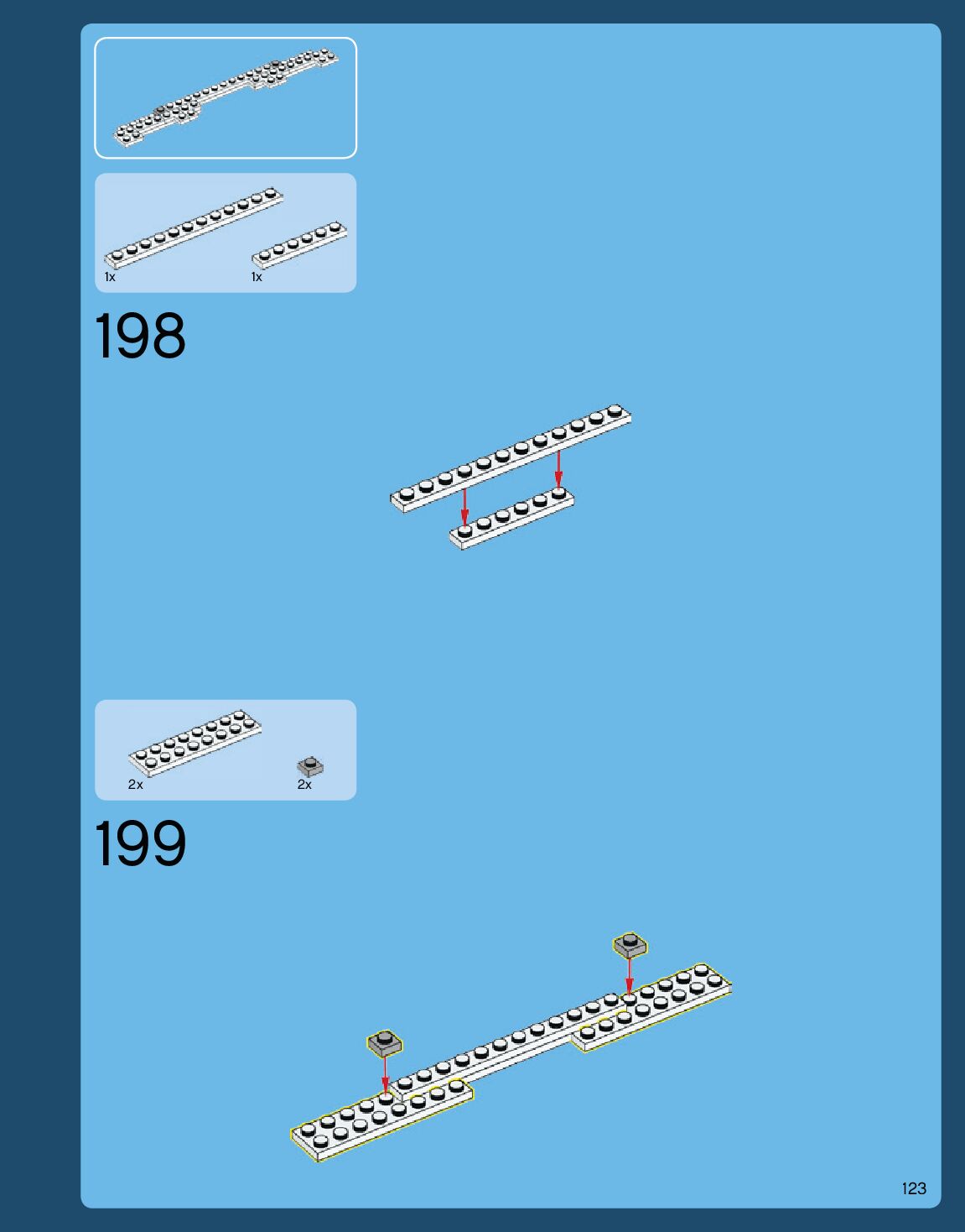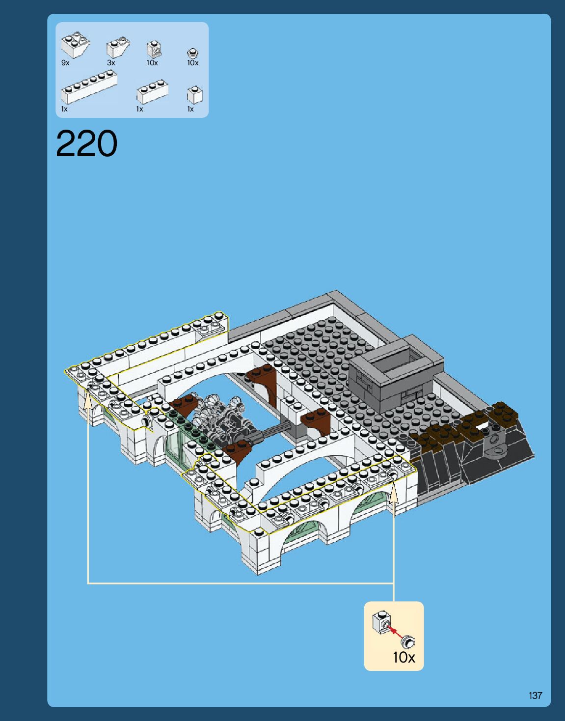 The assembly guide is prepared in a very understandable way for children and adult LEGO enthusiasts. A total of 860 picture galleries are shown, explaining the step-by-step construction stages for 1 different structures.