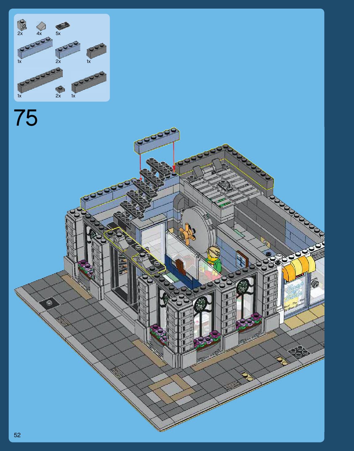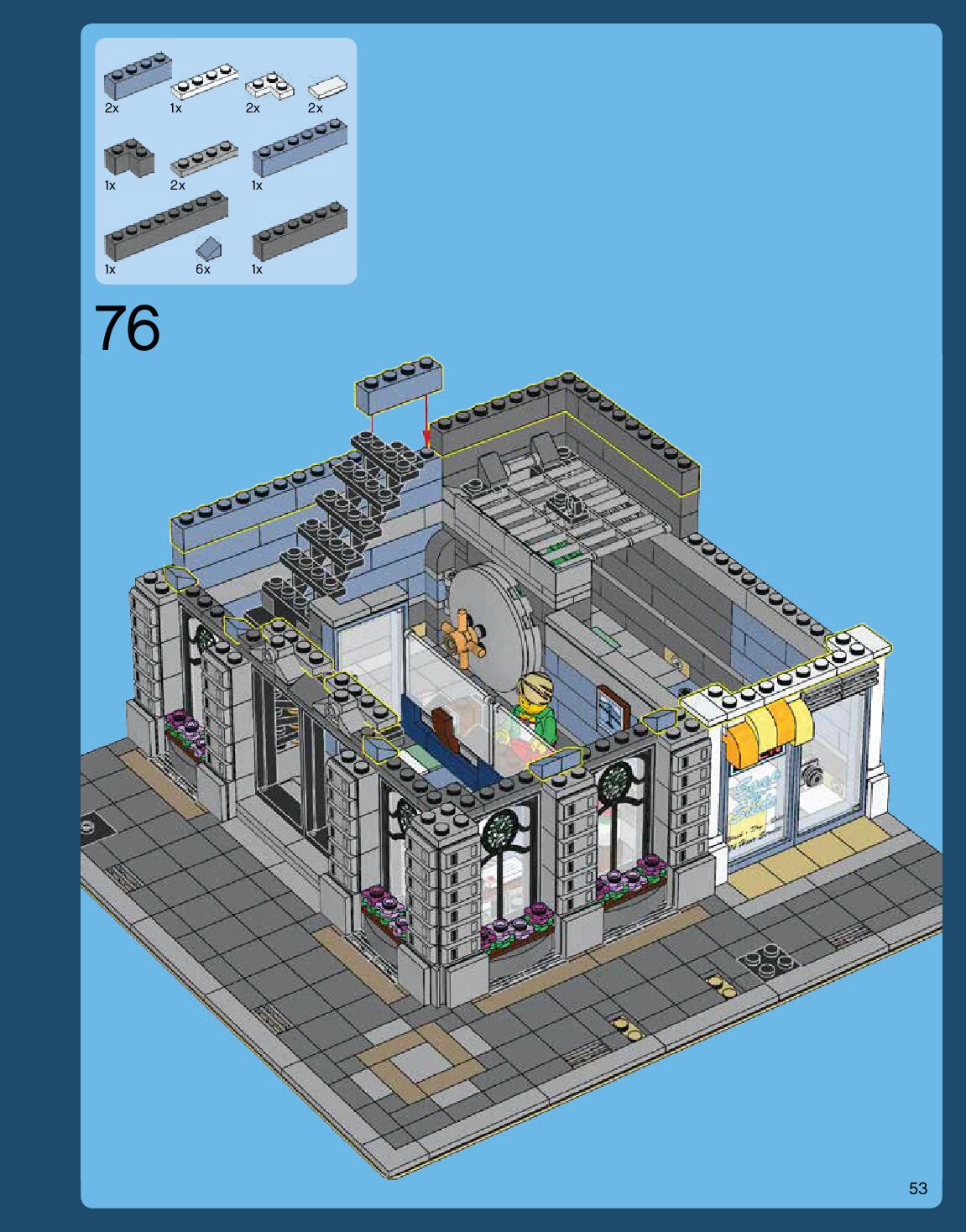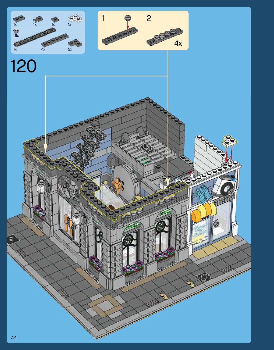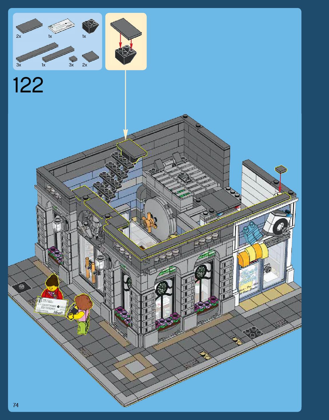 This page shares information about LEGO 10251 Brick Bank manual, LEGO 10251 PDF instructions, LEGO 10251 Brick Bank building guide online, How to build 10251 Brick Bank LEGO.