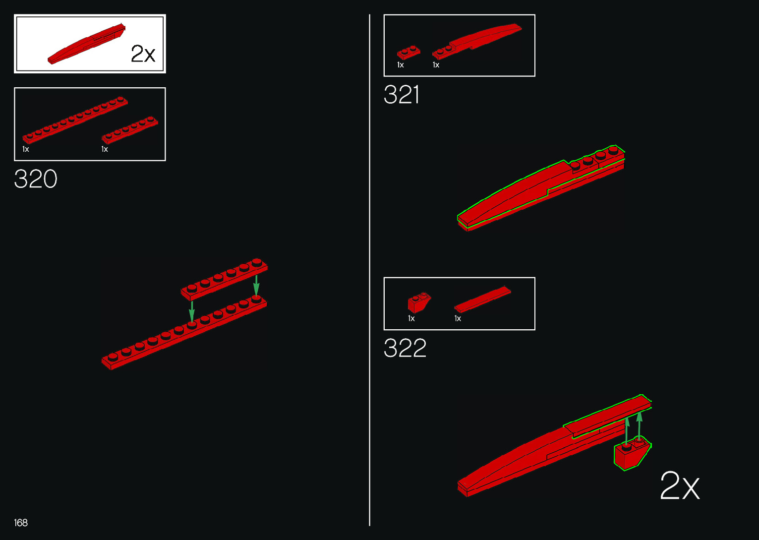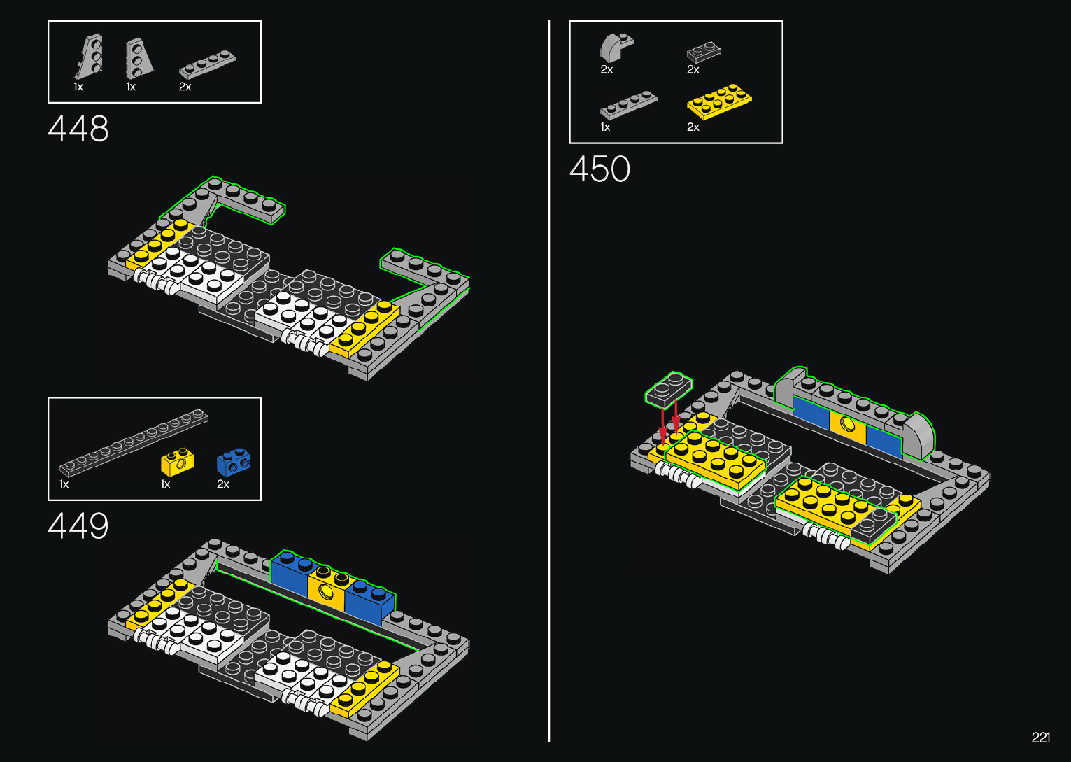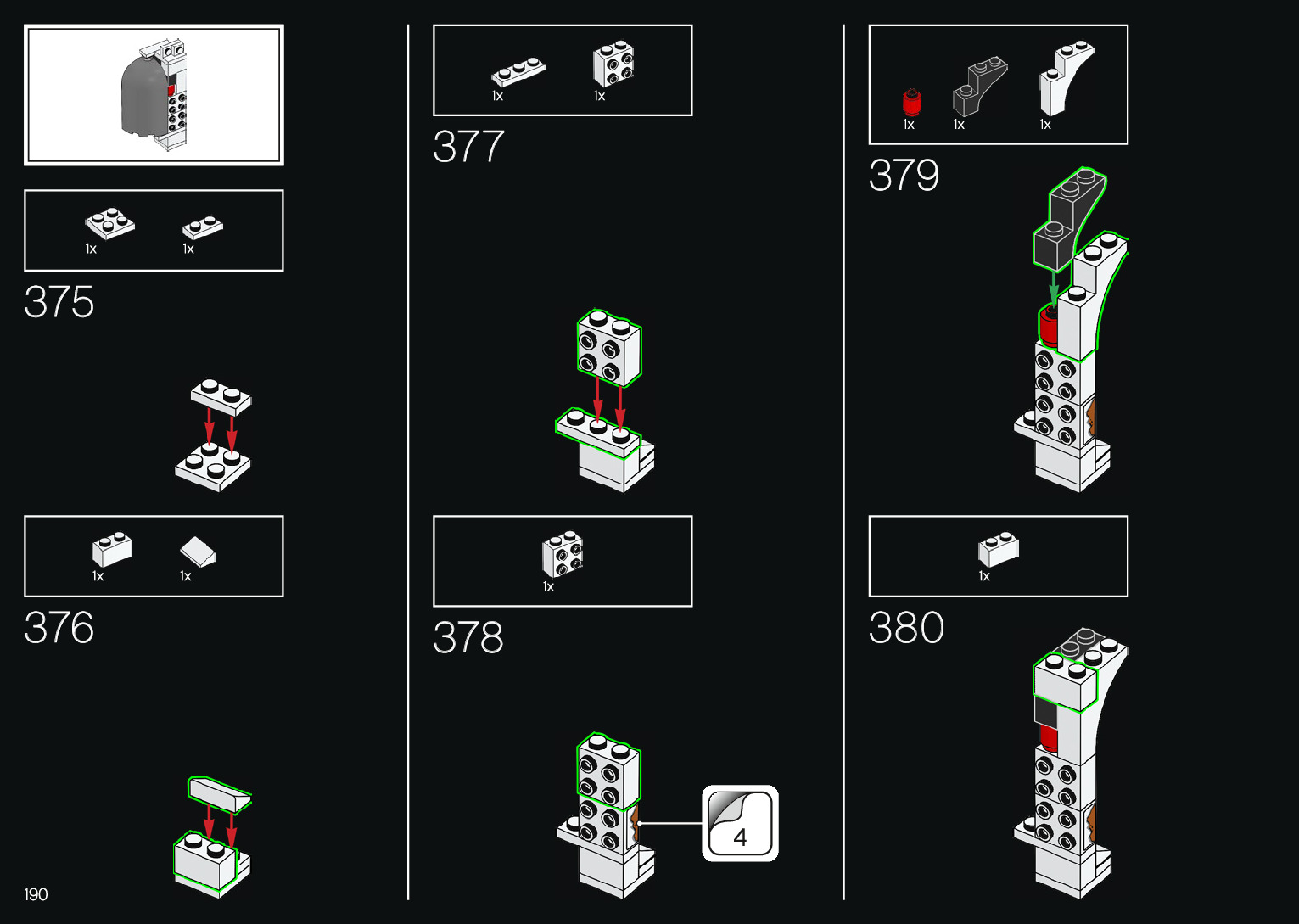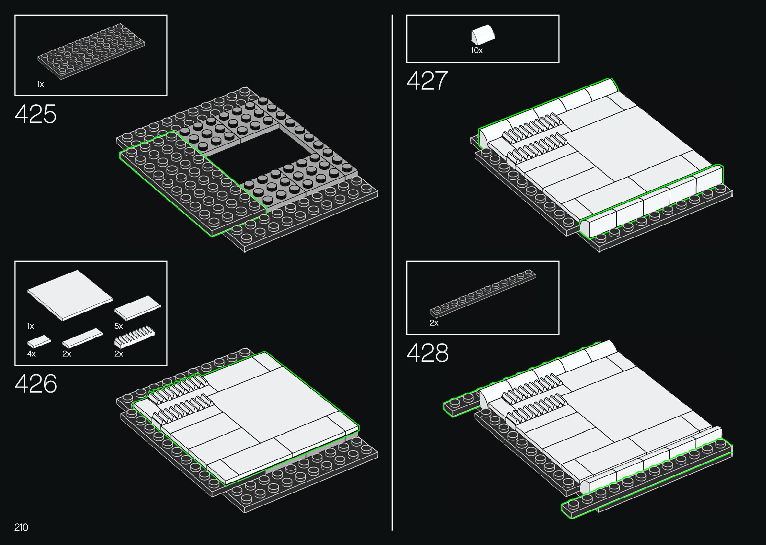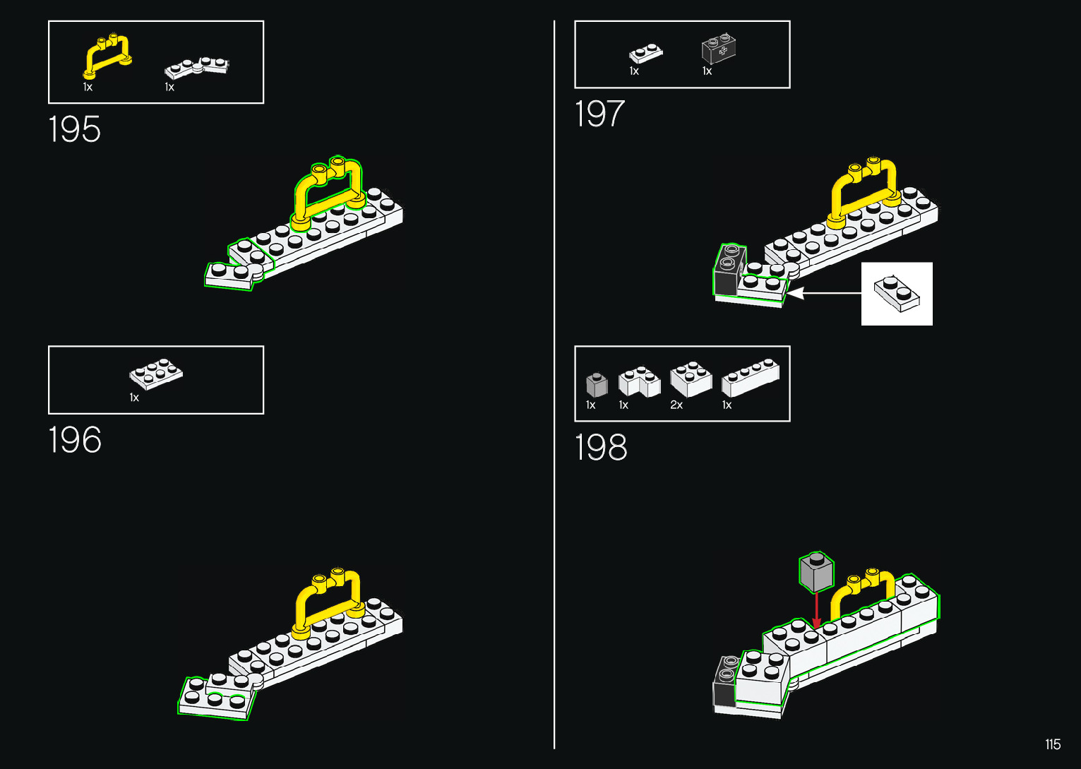 The assembly guide is prepared in a very understandable way for children and adult LEGO enthusiasts. A total of 325 picture galleries are shown, explaining the step-by-step construction stages for 2 different structures.