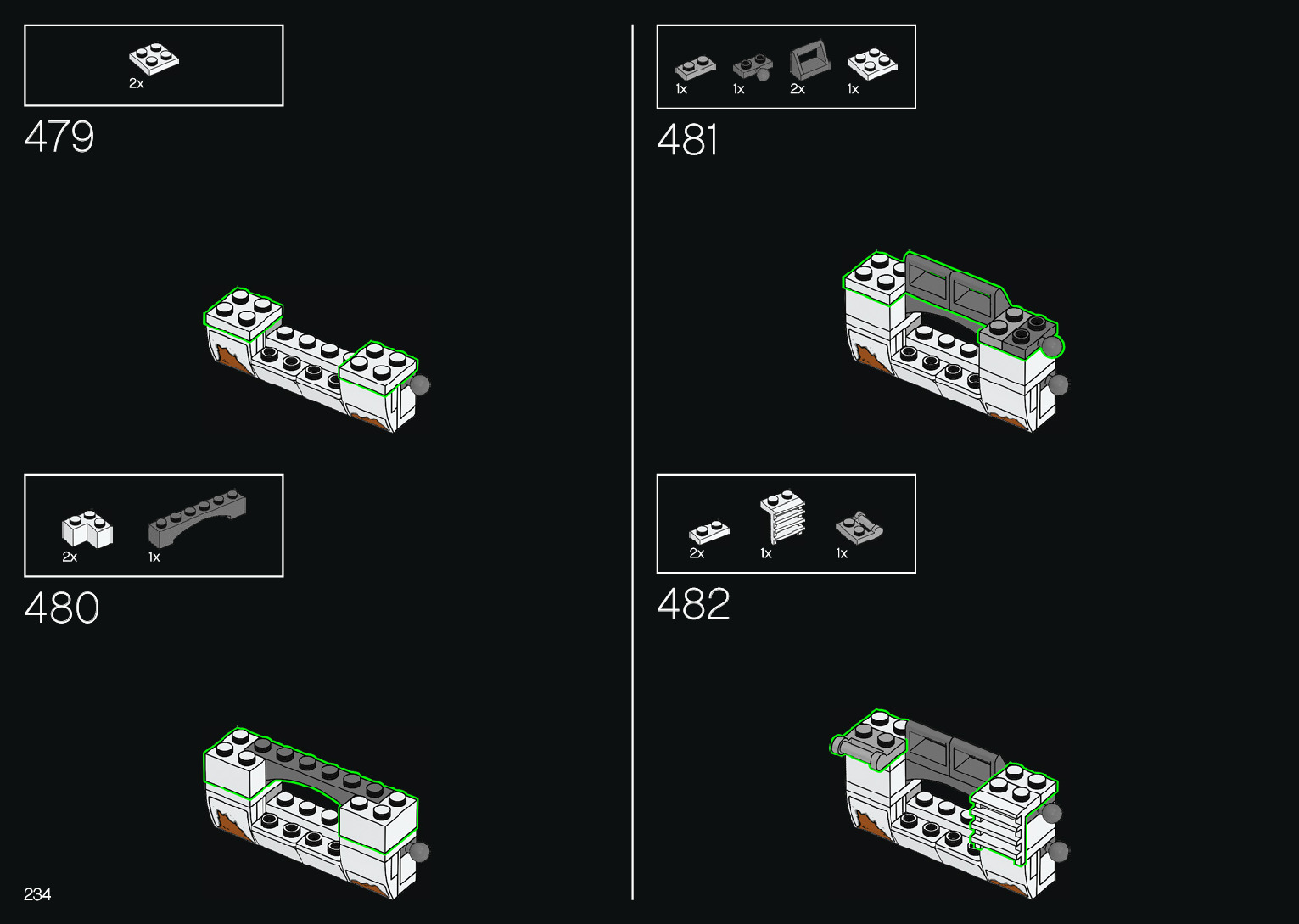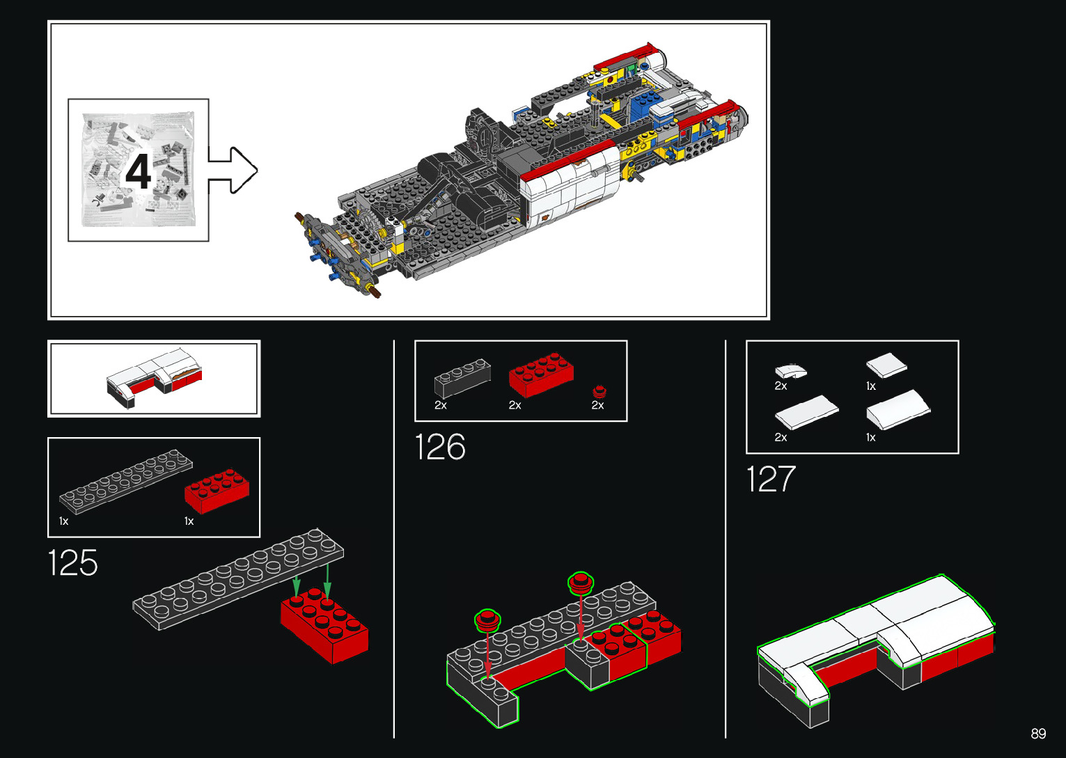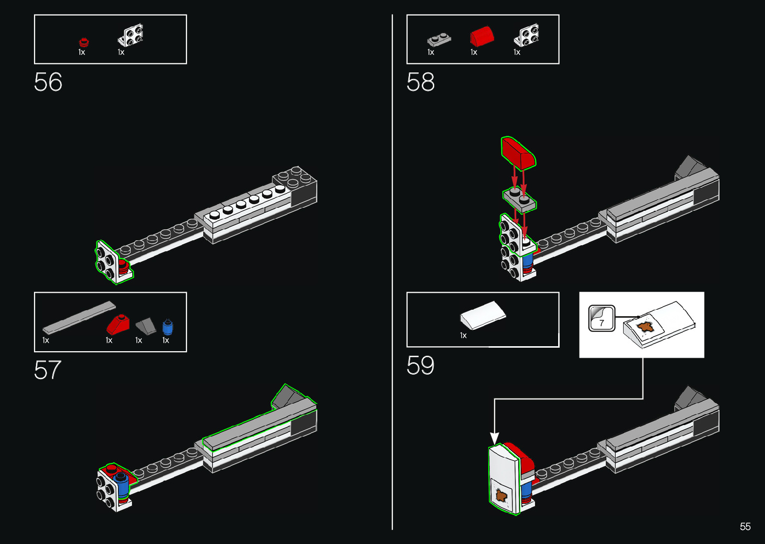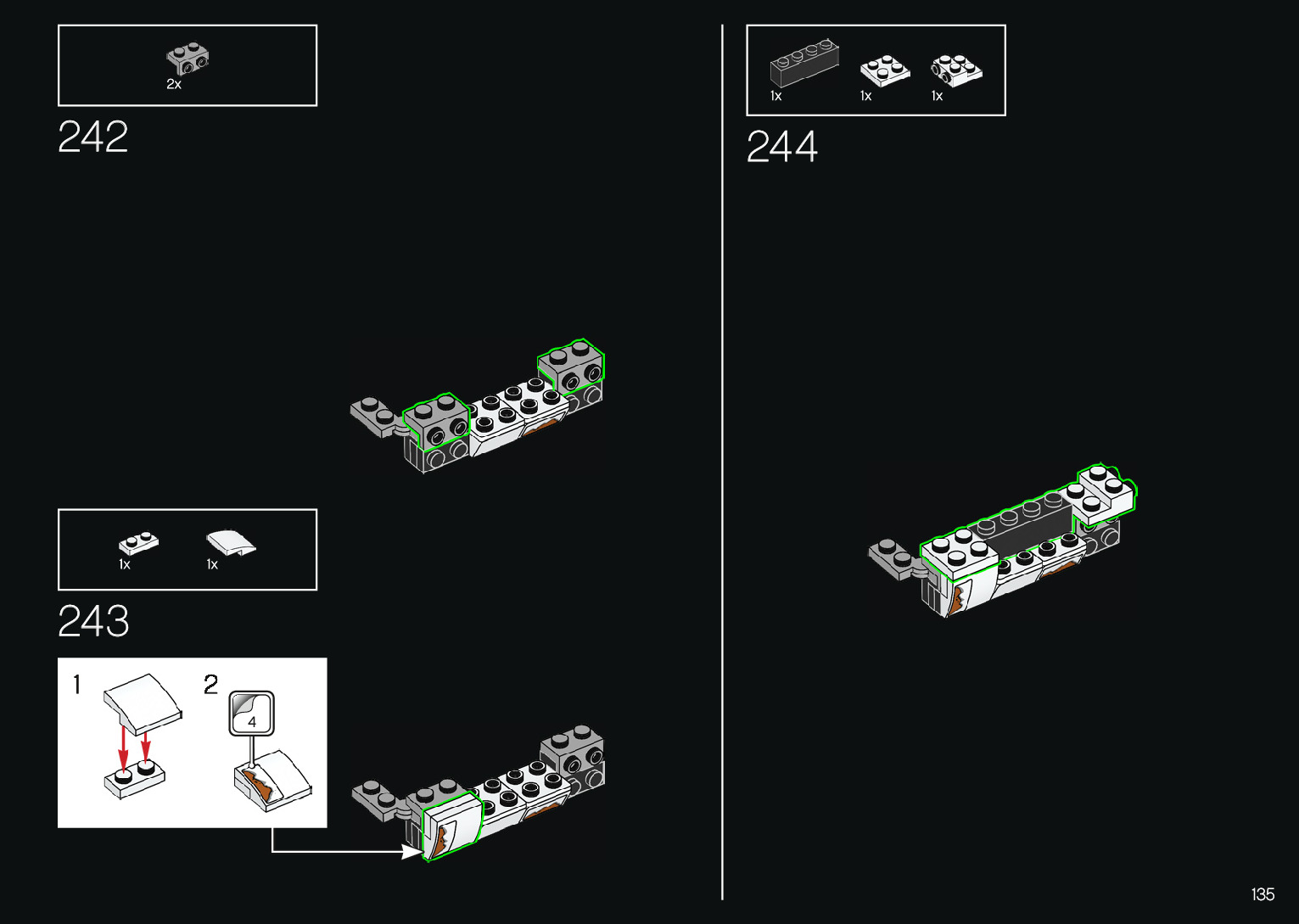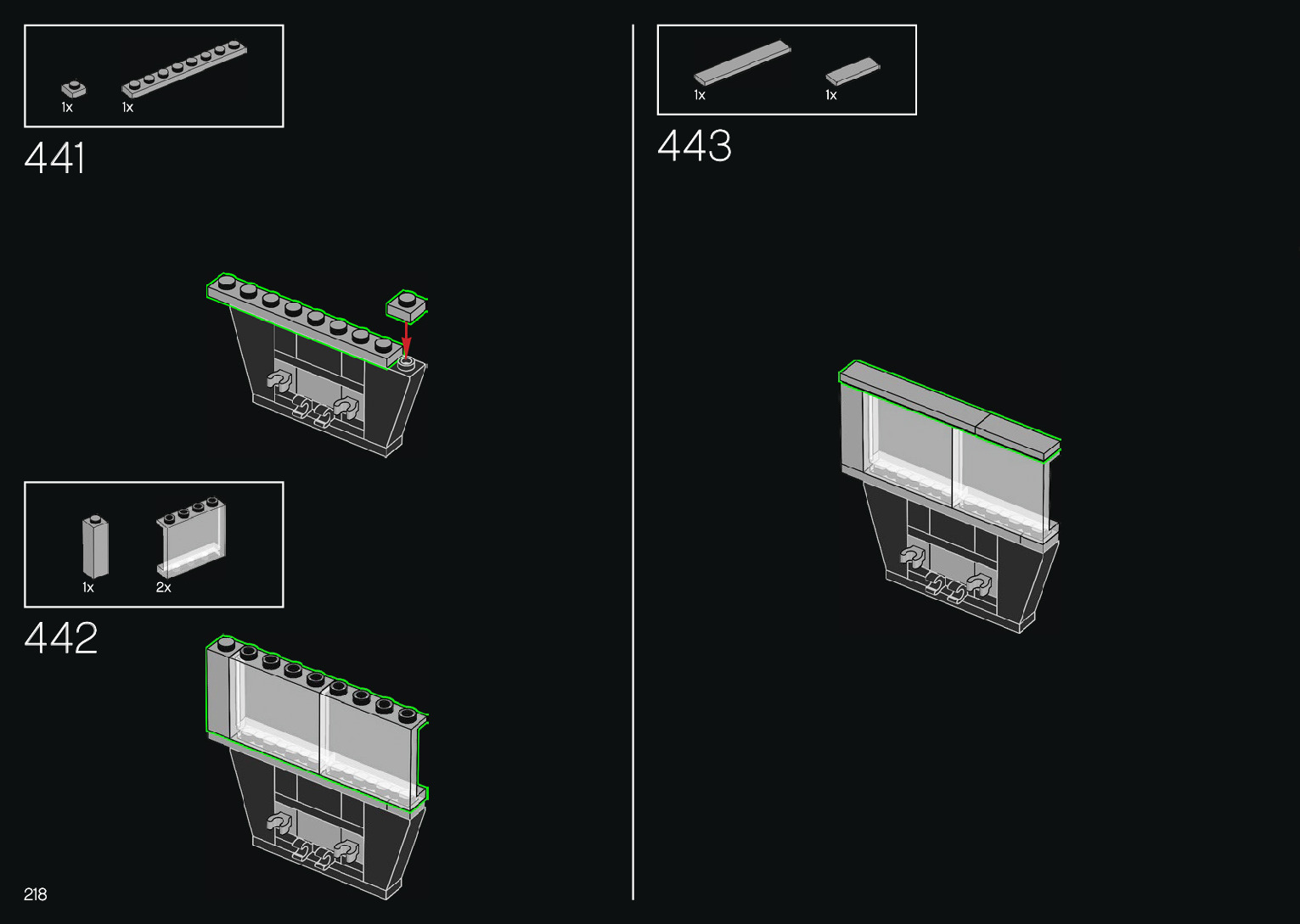 The assembly guide is prepared in a very understandable way for children and adult LEGO enthusiasts. A total of 325 picture galleries are shown, explaining the step-by-step construction stages for 2 different structures.