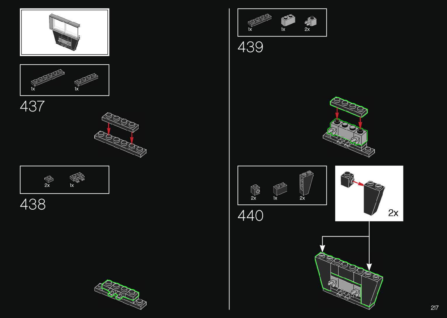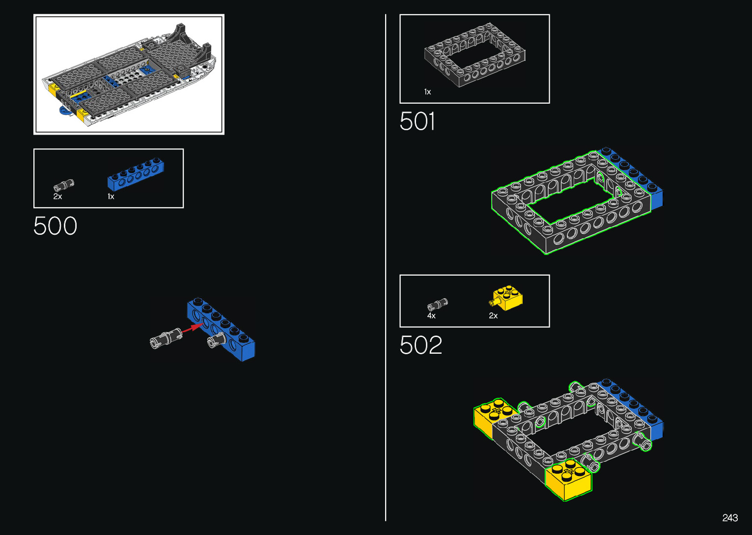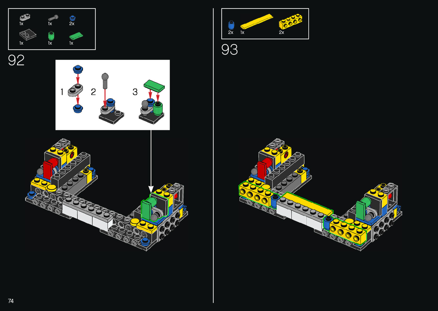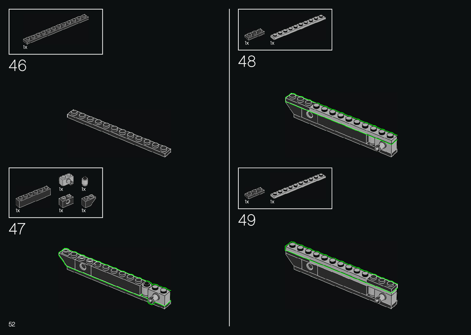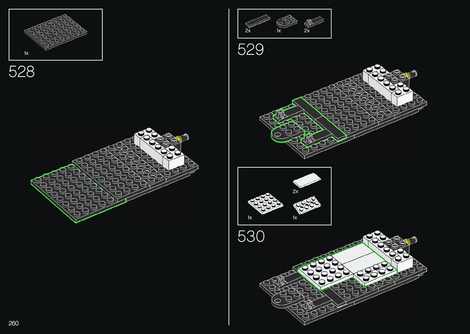 The assembly guide is prepared in a very understandable way for children and adult LEGO enthusiasts. A total of 325 picture galleries are shown, explaining the step-by-step construction stages for 2 different structures.