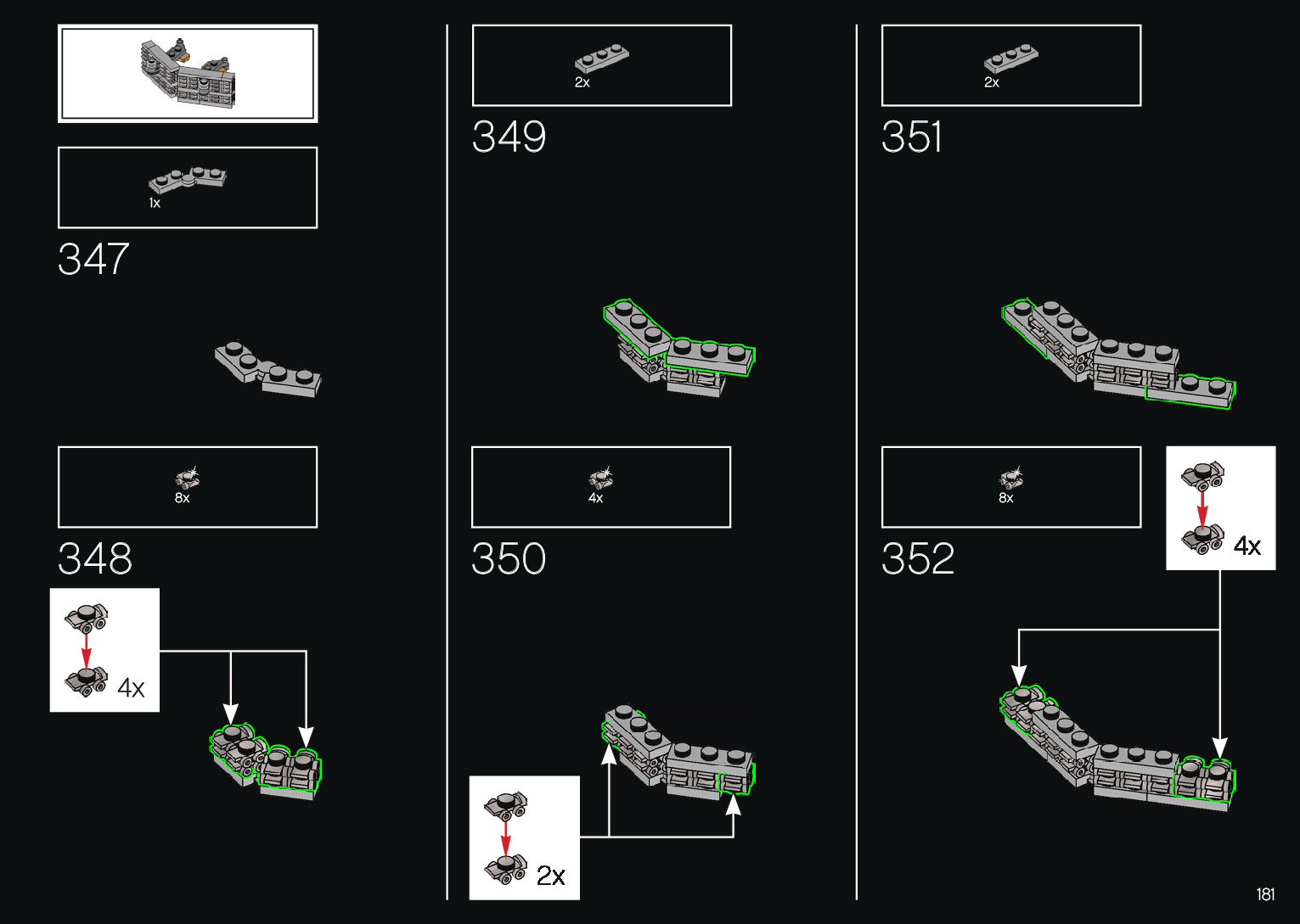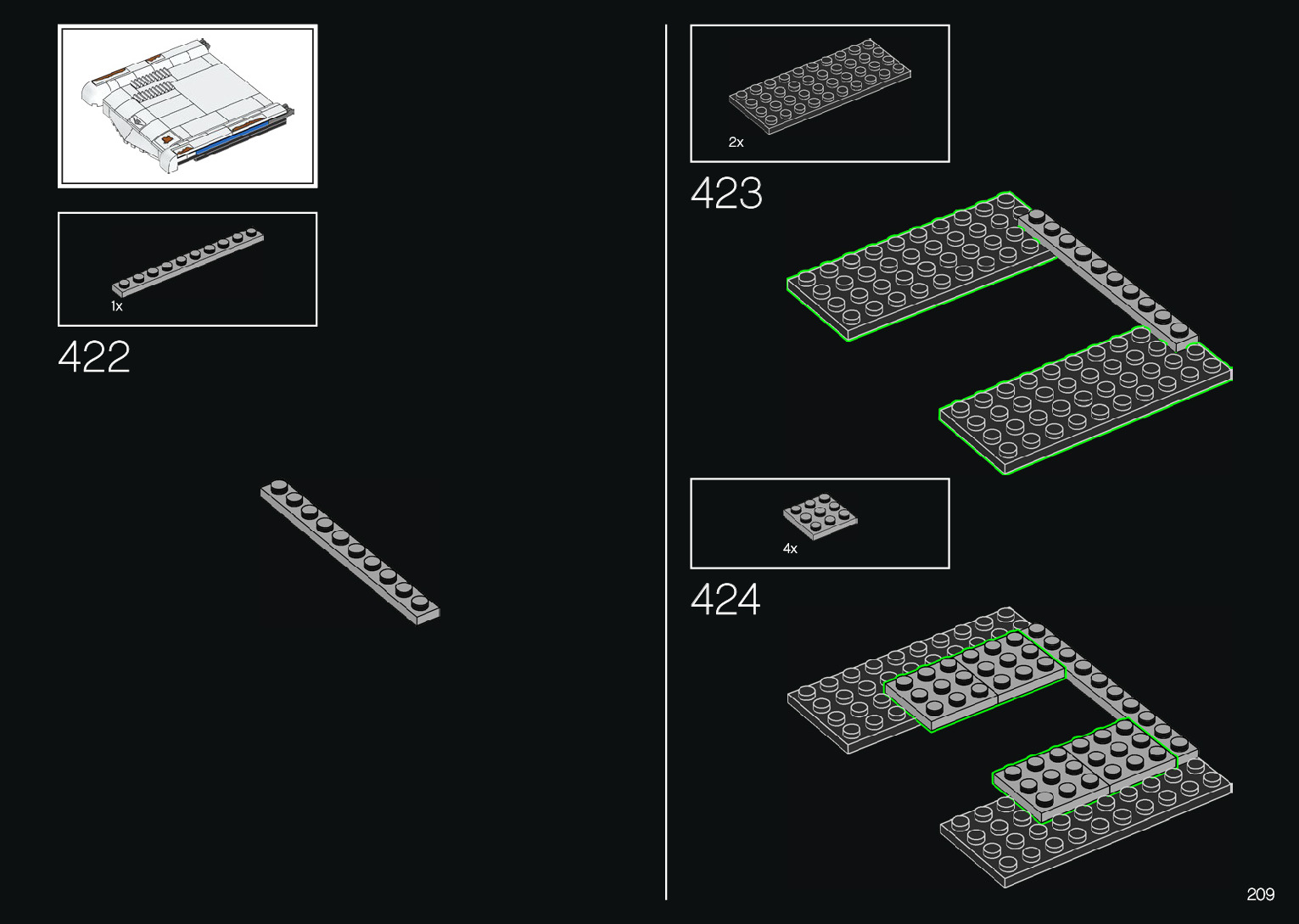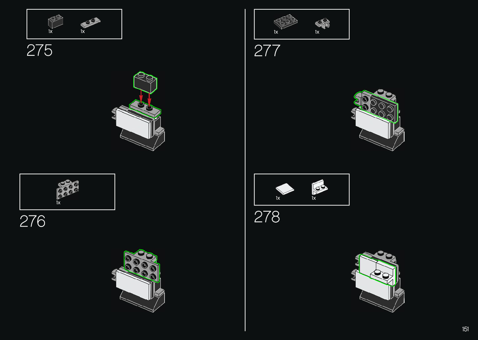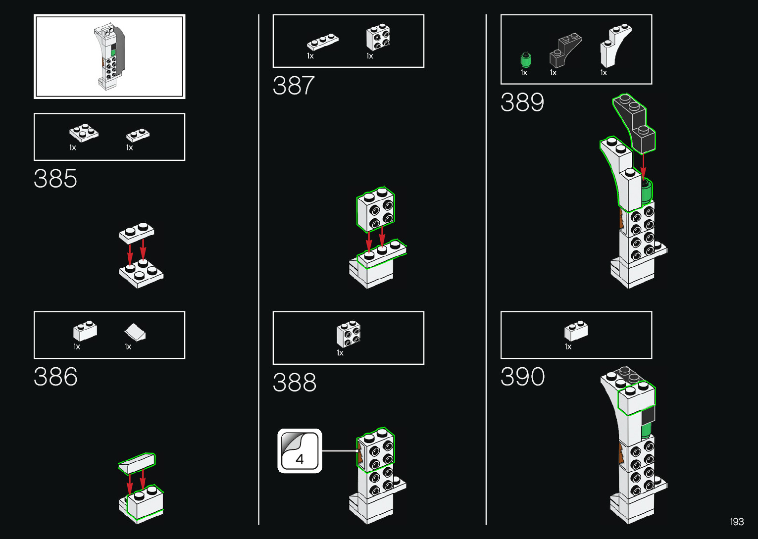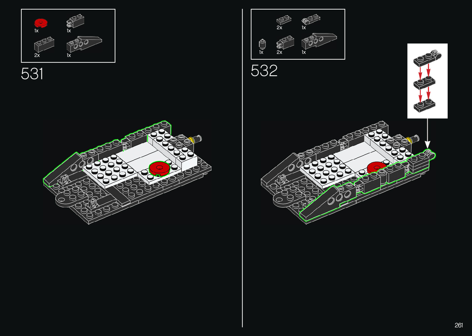 The assembly guide is prepared in a very understandable way for children and adult LEGO enthusiasts. A total of 325 picture galleries are shown, explaining the step-by-step construction stages for 2 different structures.