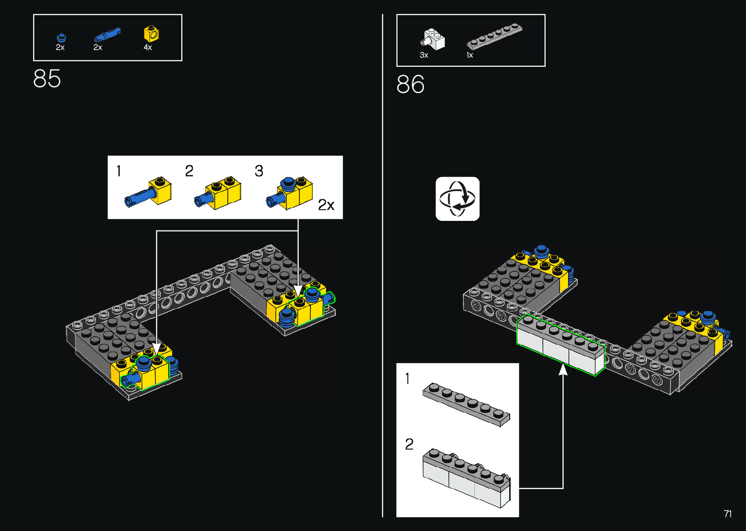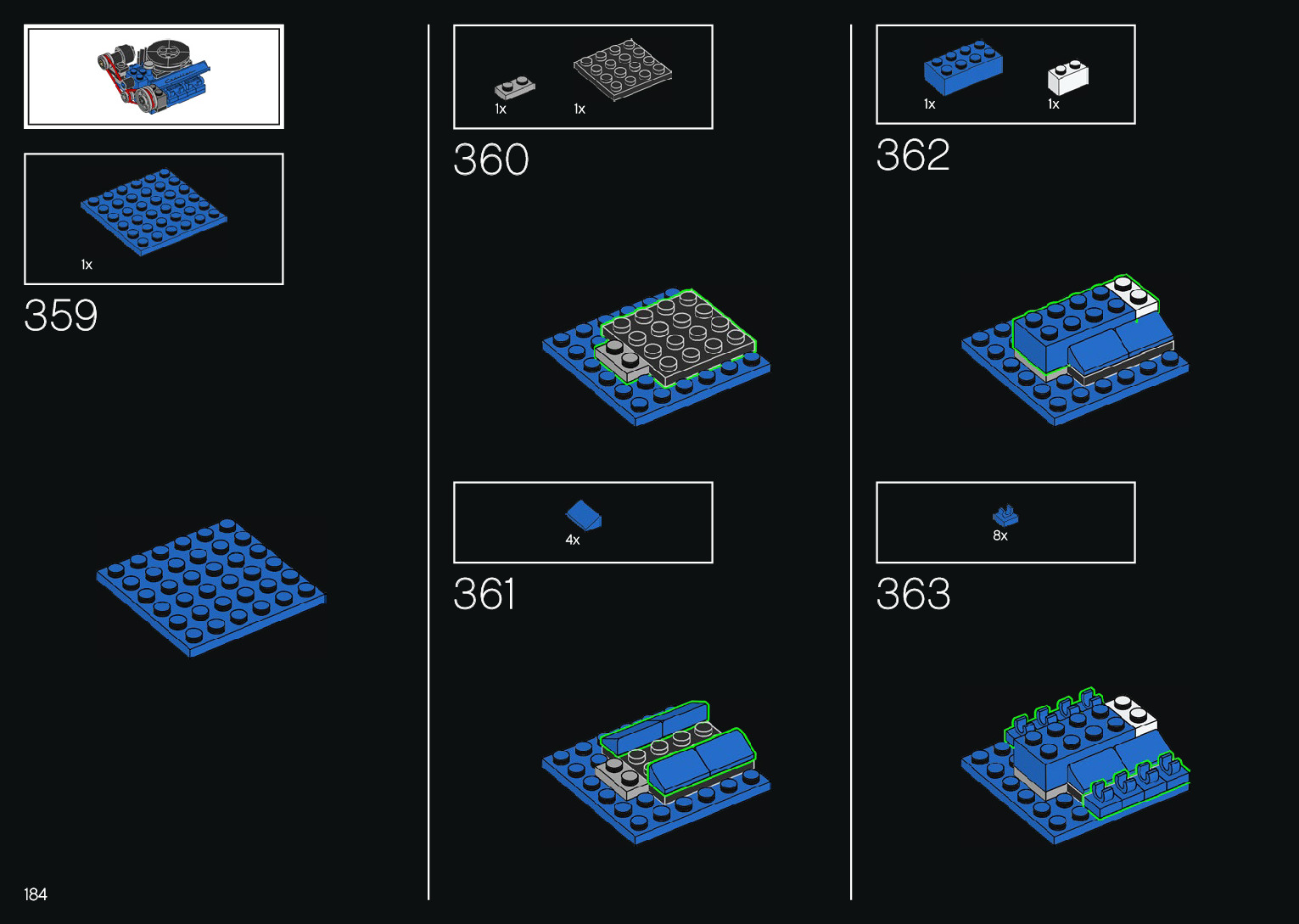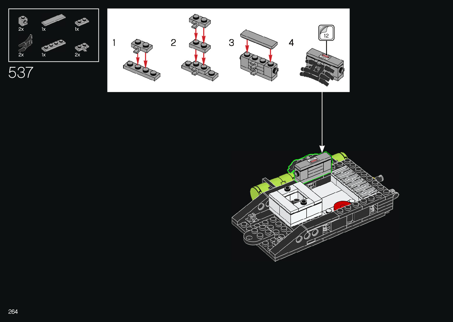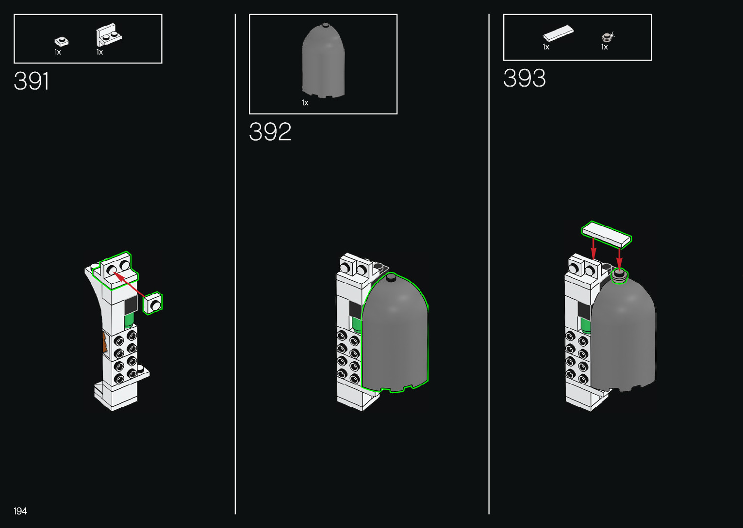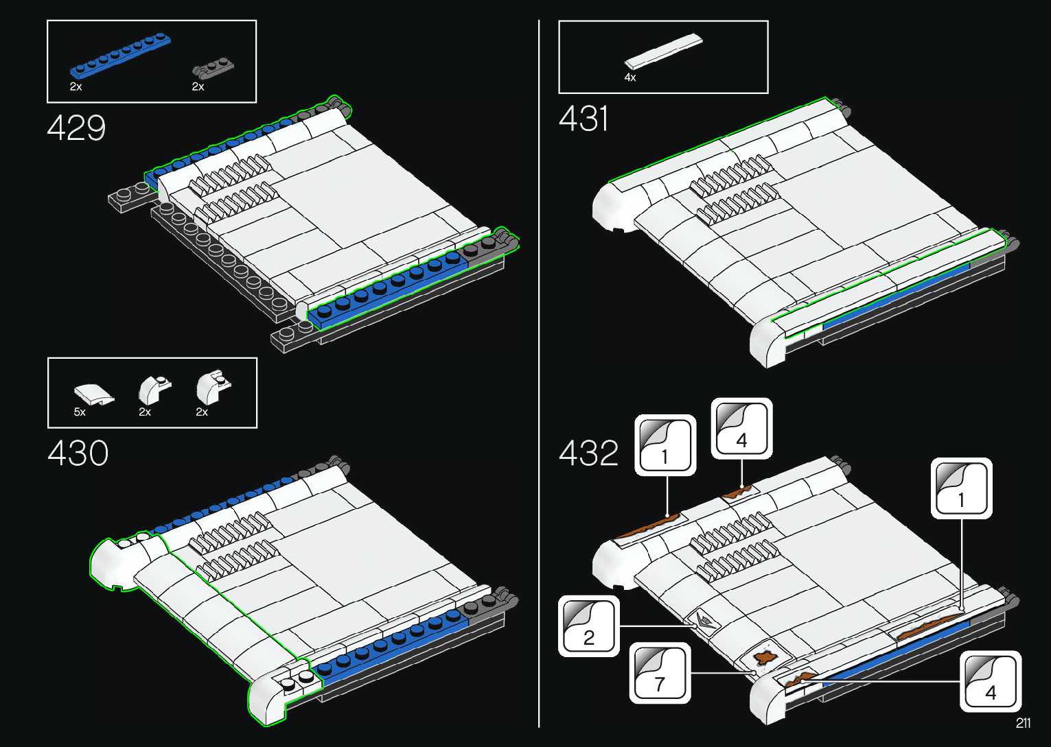 The assembly guide is prepared in a very understandable way for children and adult LEGO enthusiasts. A total of 325 picture galleries are shown, explaining the step-by-step construction stages for 2 different structures.