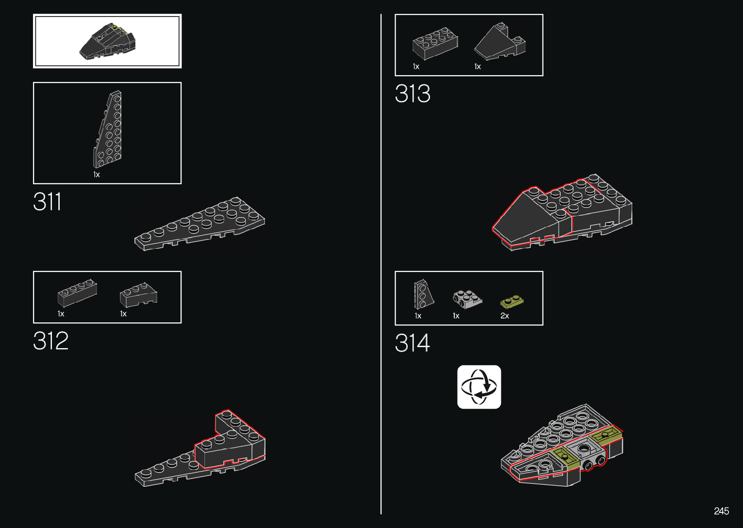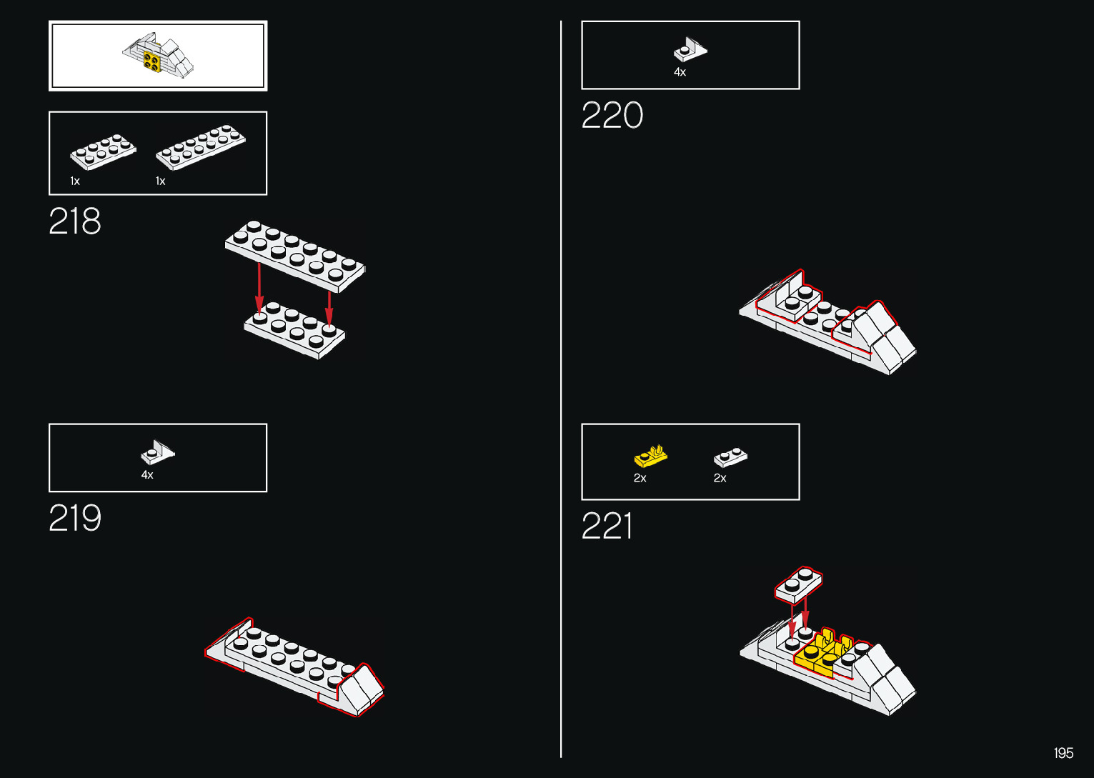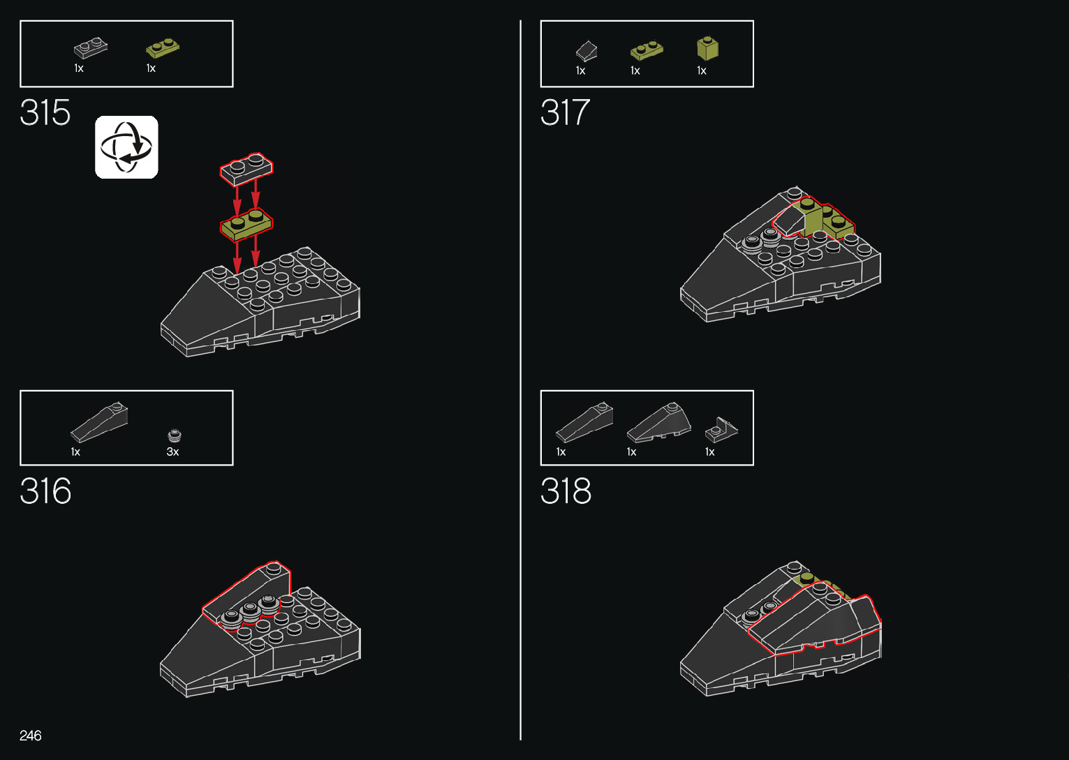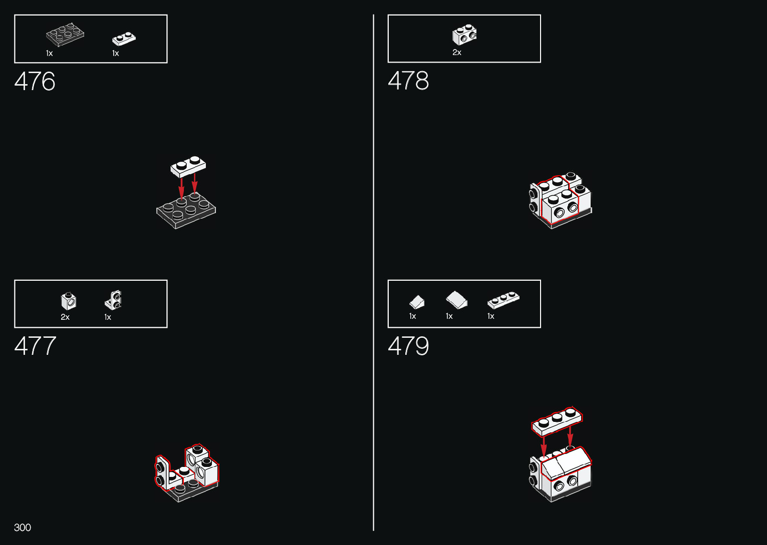 The assembly guide is prepared in a very understandable way for children and adult LEGO enthusiasts. A total of 320 picture galleries are shown, explaining the step-by-step construction stages for 1 different structures.