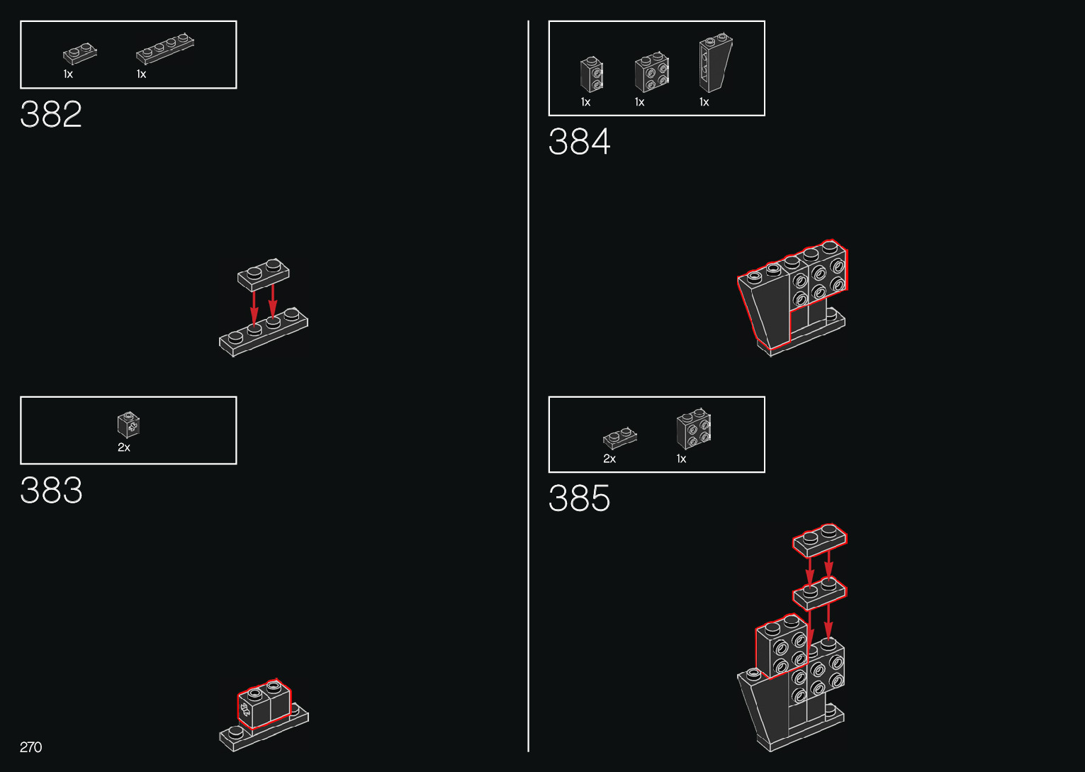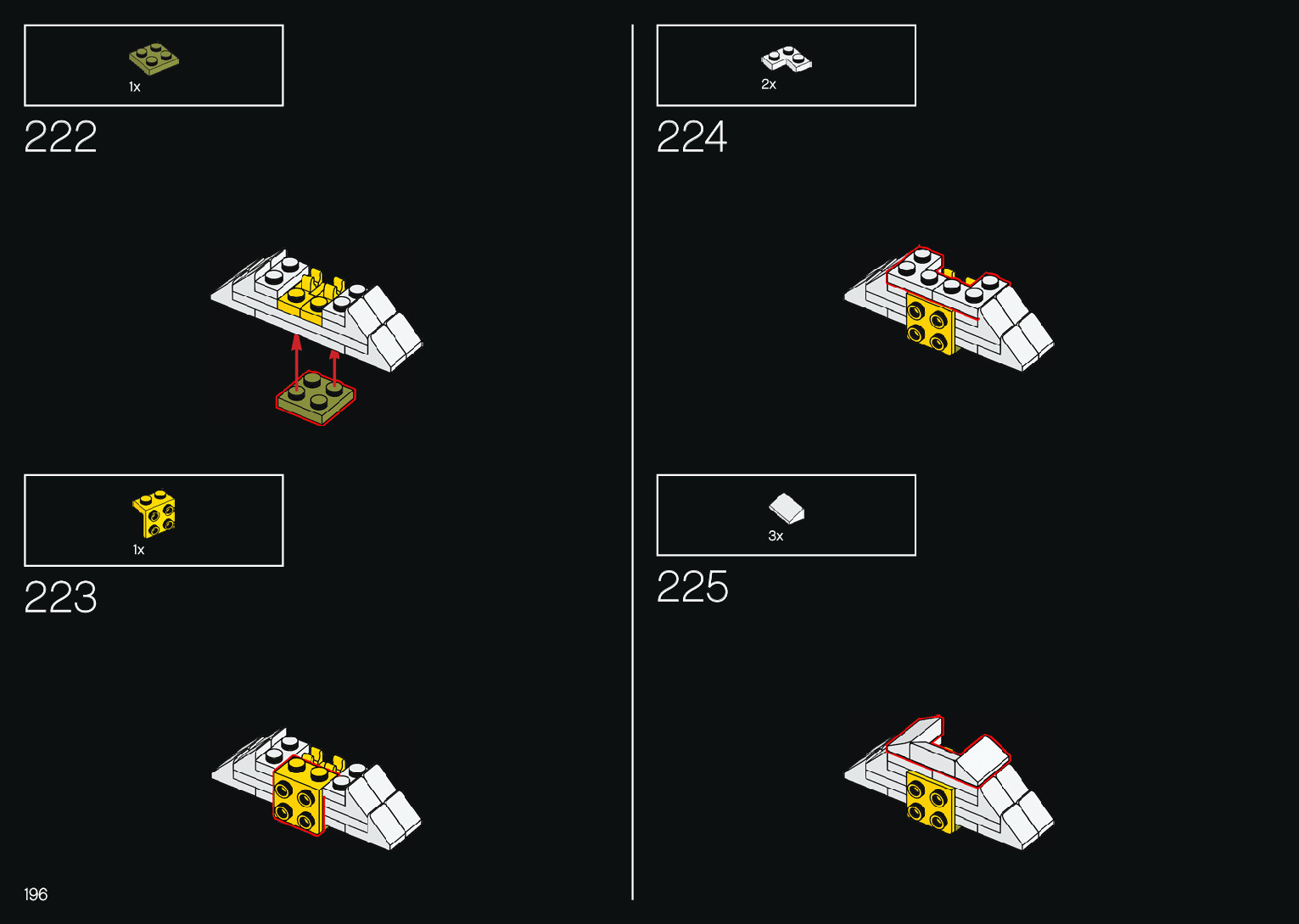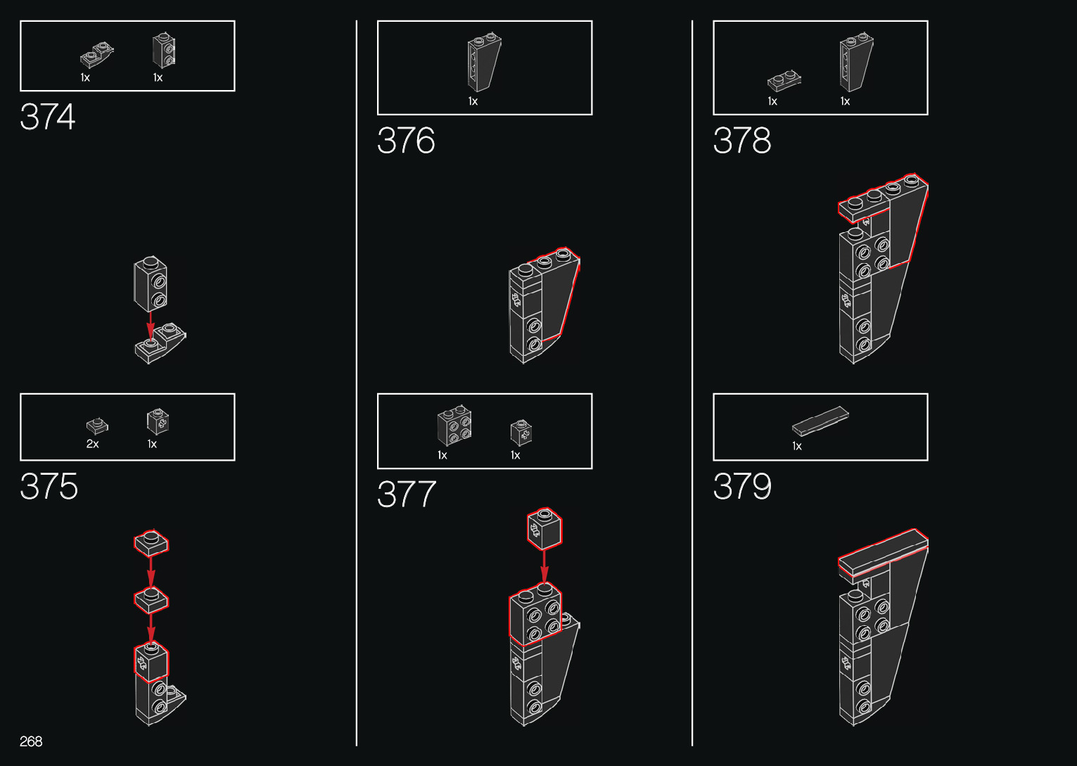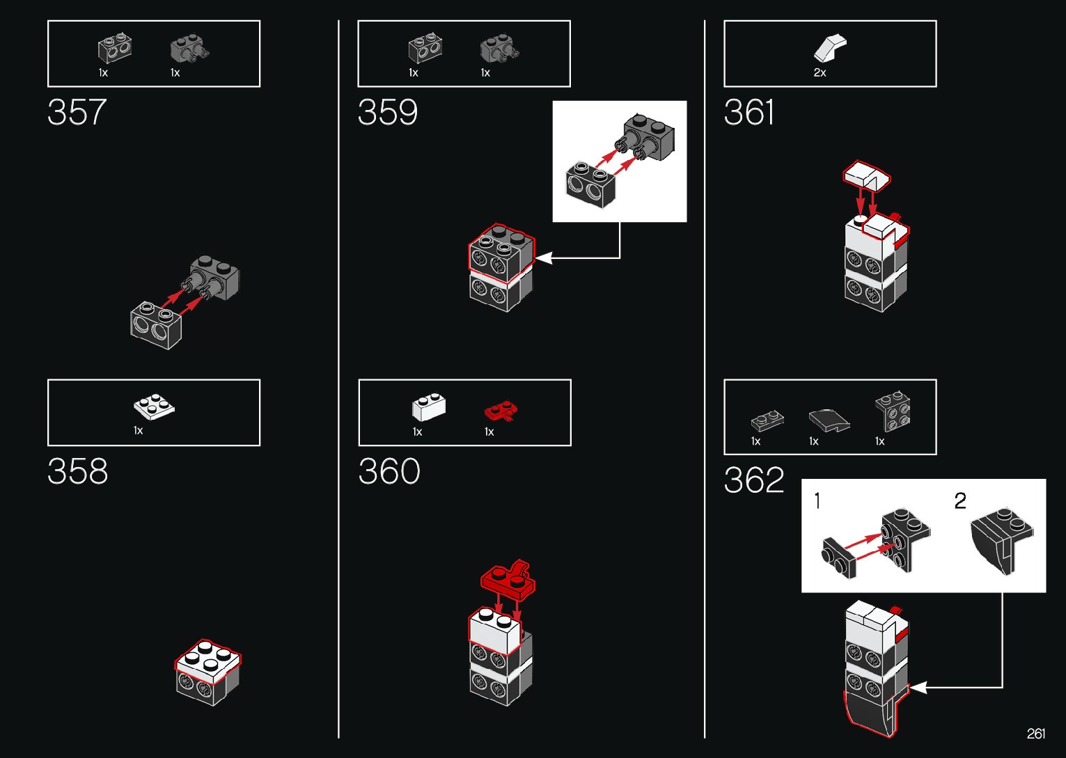 The assembly guide is prepared in a very understandable way for children and adult LEGO enthusiasts. A total of 320 picture galleries are shown, explaining the step-by-step construction stages for 1 different structures.