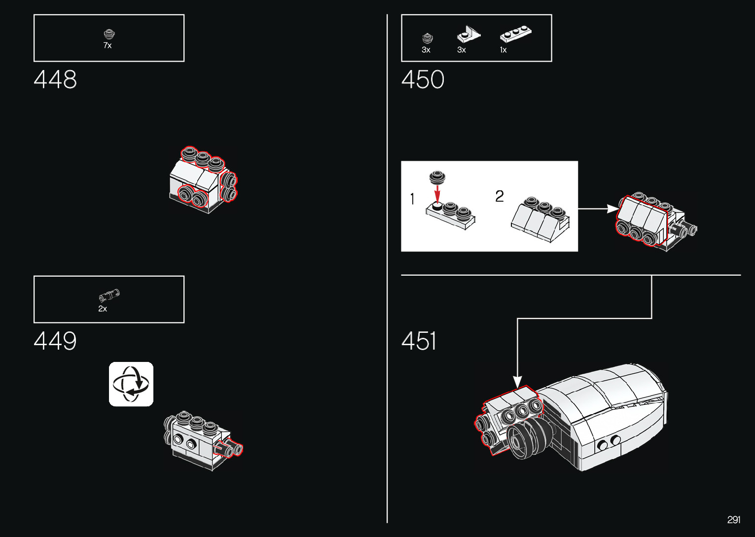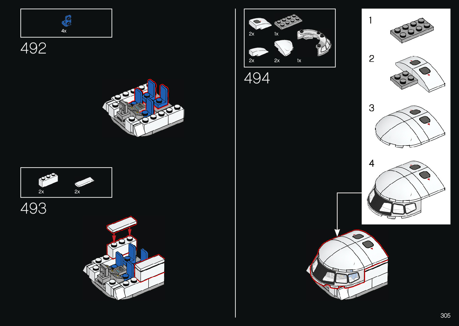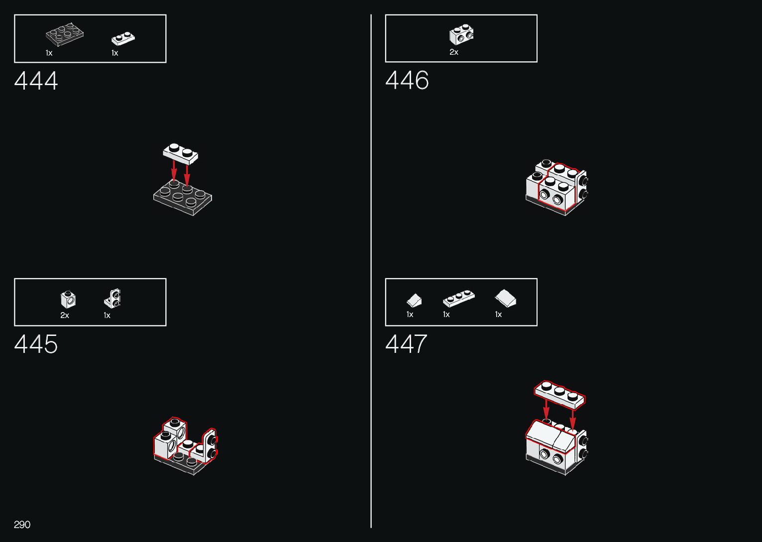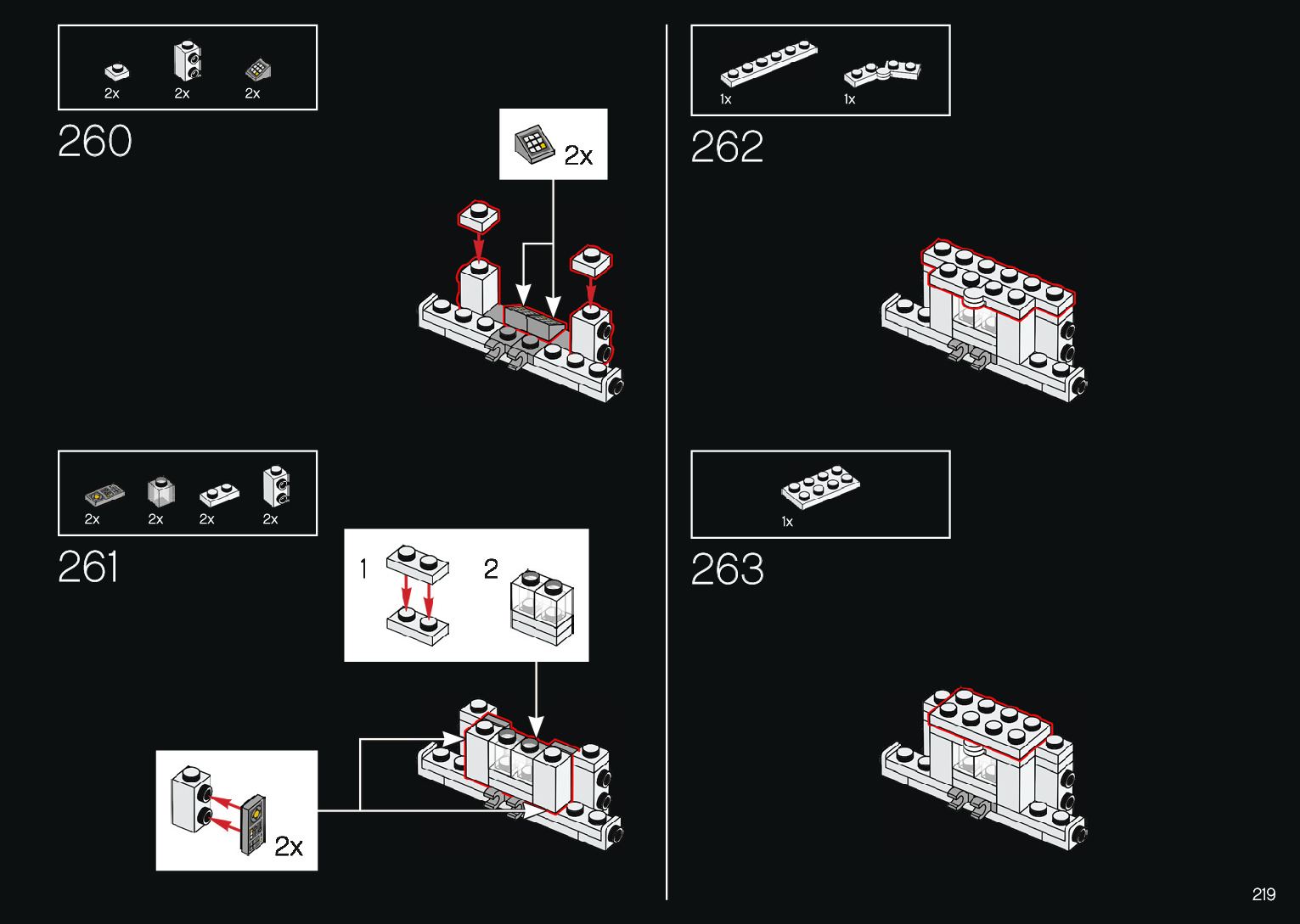 The assembly guide is prepared in a very understandable way for children and adult LEGO enthusiasts. A total of 320 picture galleries are shown, explaining the step-by-step construction stages for 1 different structures.