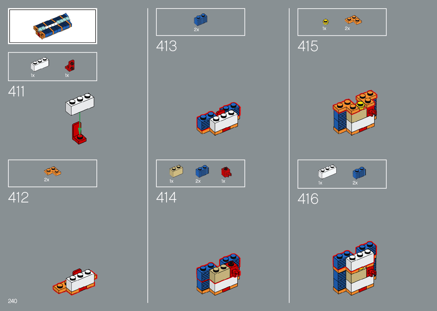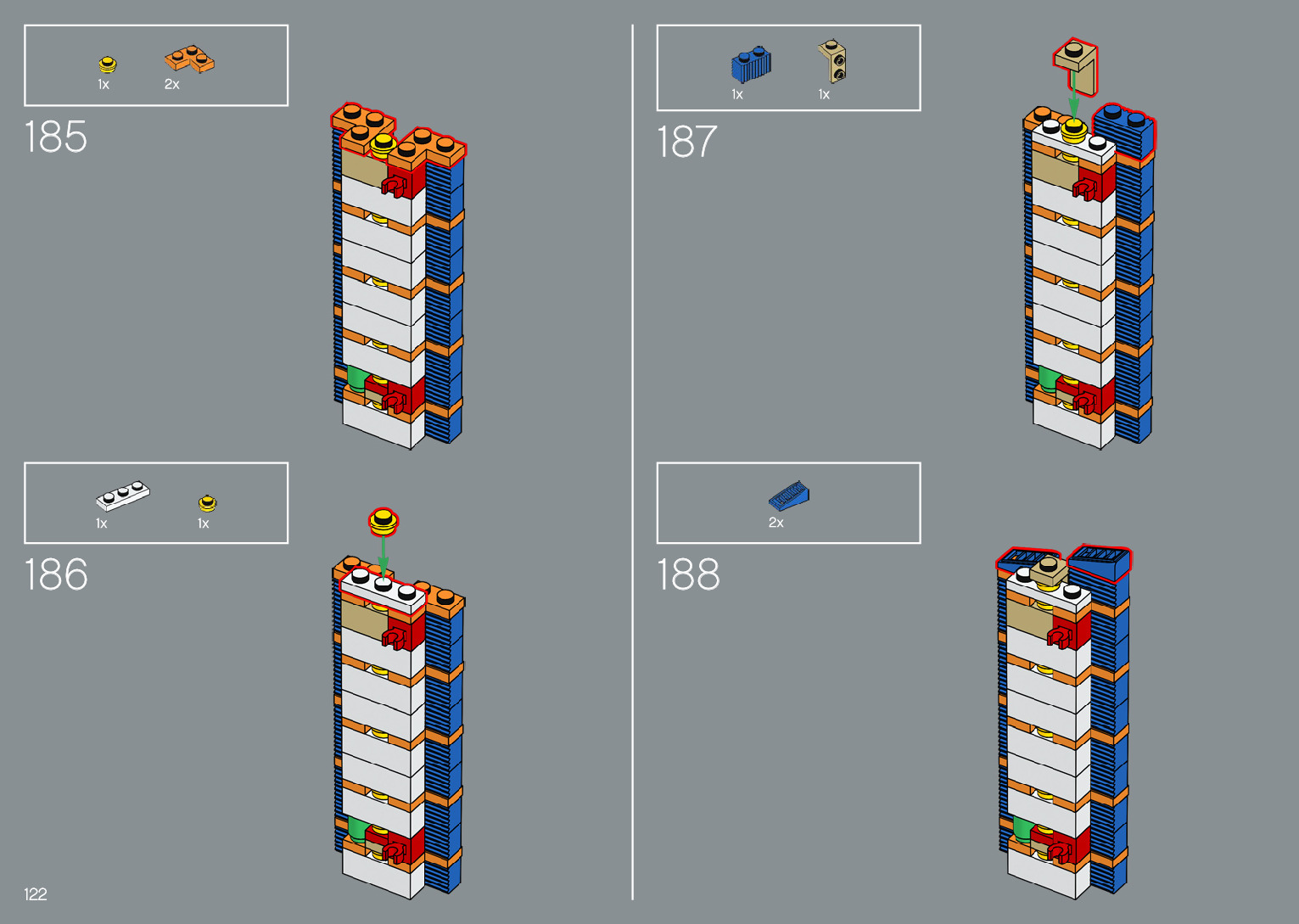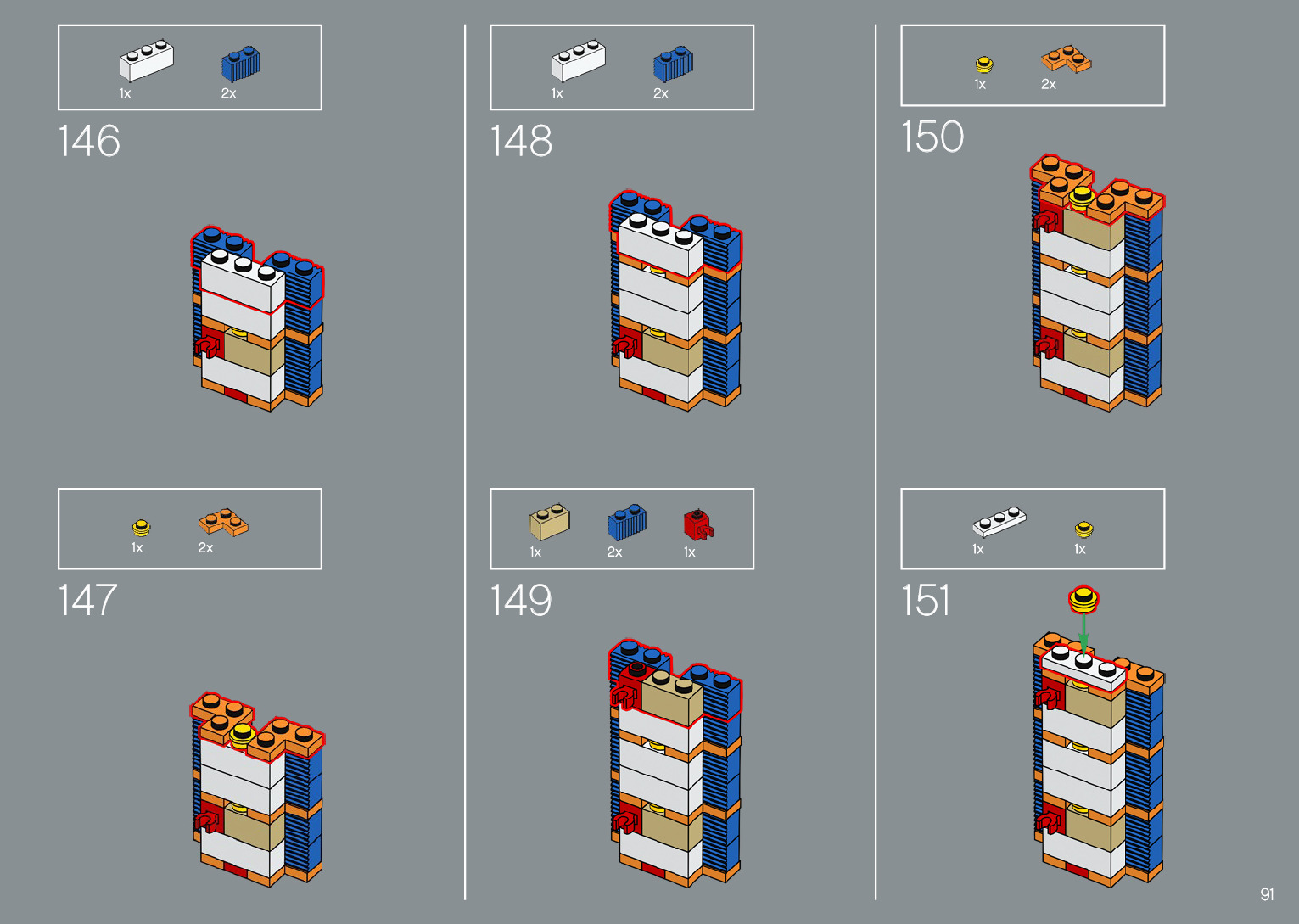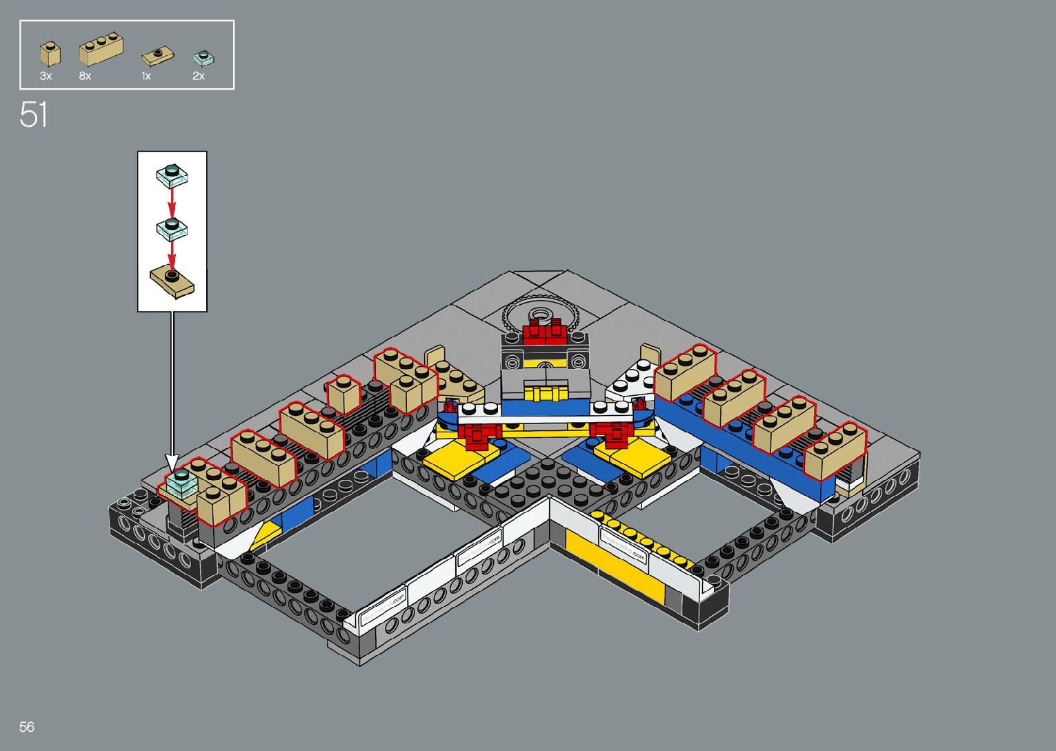 The assembly guide is prepared in a very understandable way for children and adult LEGO enthusiasts. A total of 680 picture galleries are shown, explaining the step-by-step construction stages for 2 different structures.