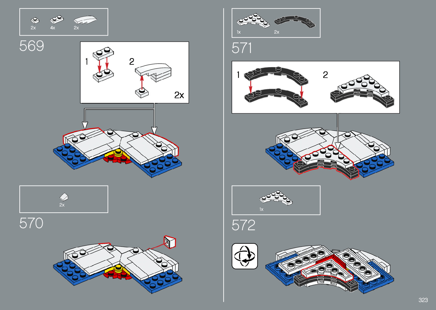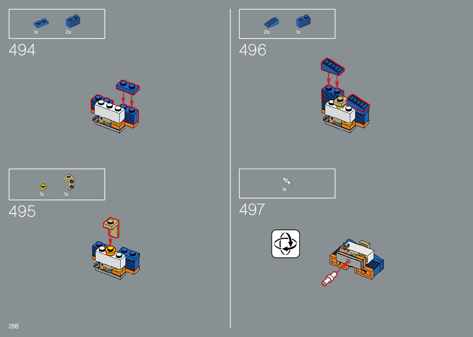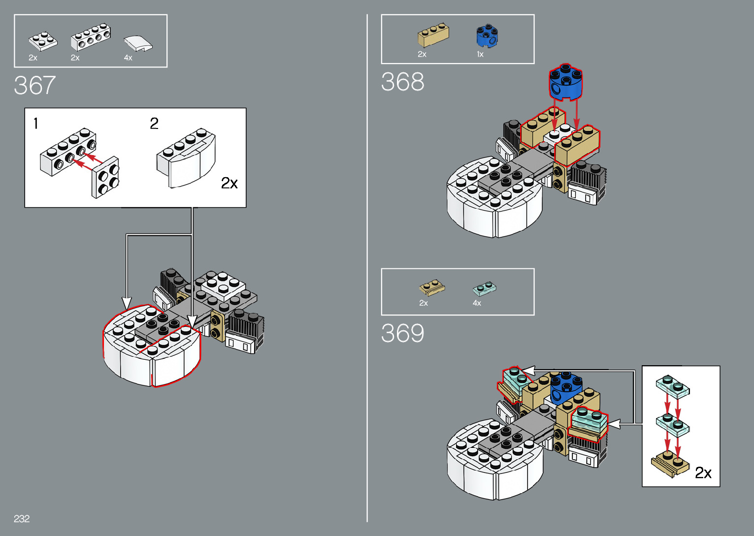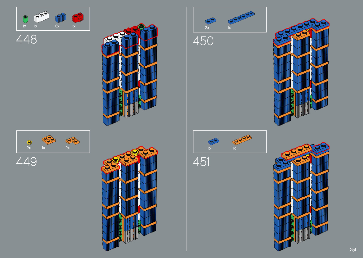 The assembly guide is prepared in a very understandable way for children and adult LEGO enthusiasts. A total of 680 picture galleries are shown, explaining the step-by-step construction stages for 2 different structures.