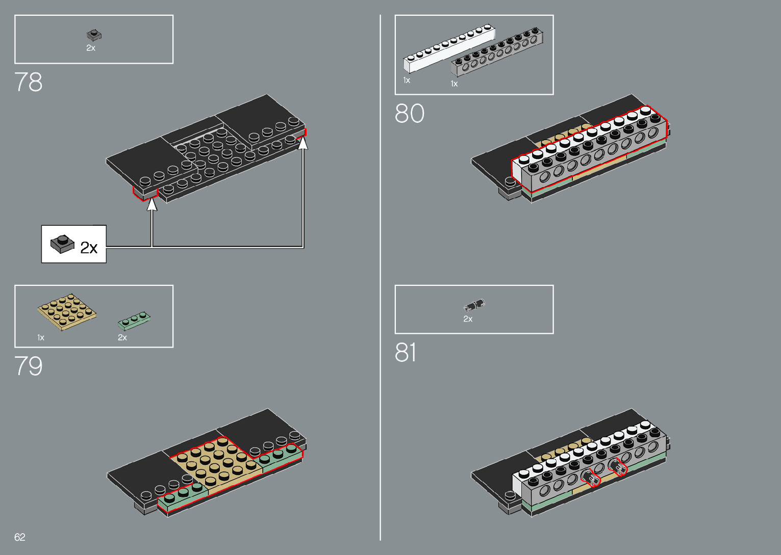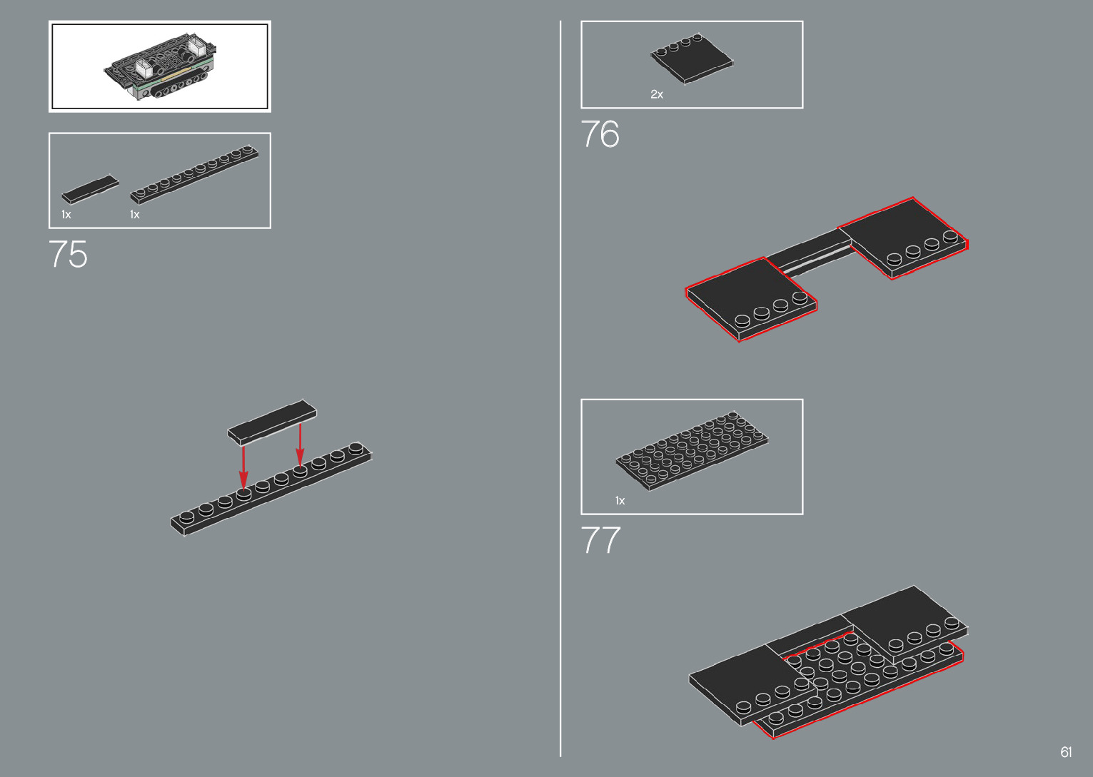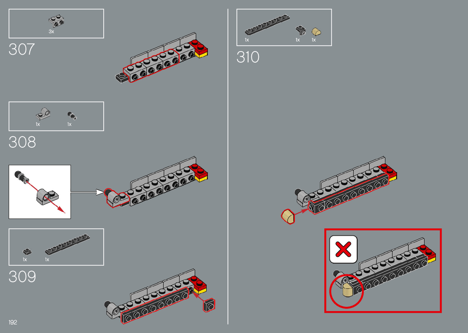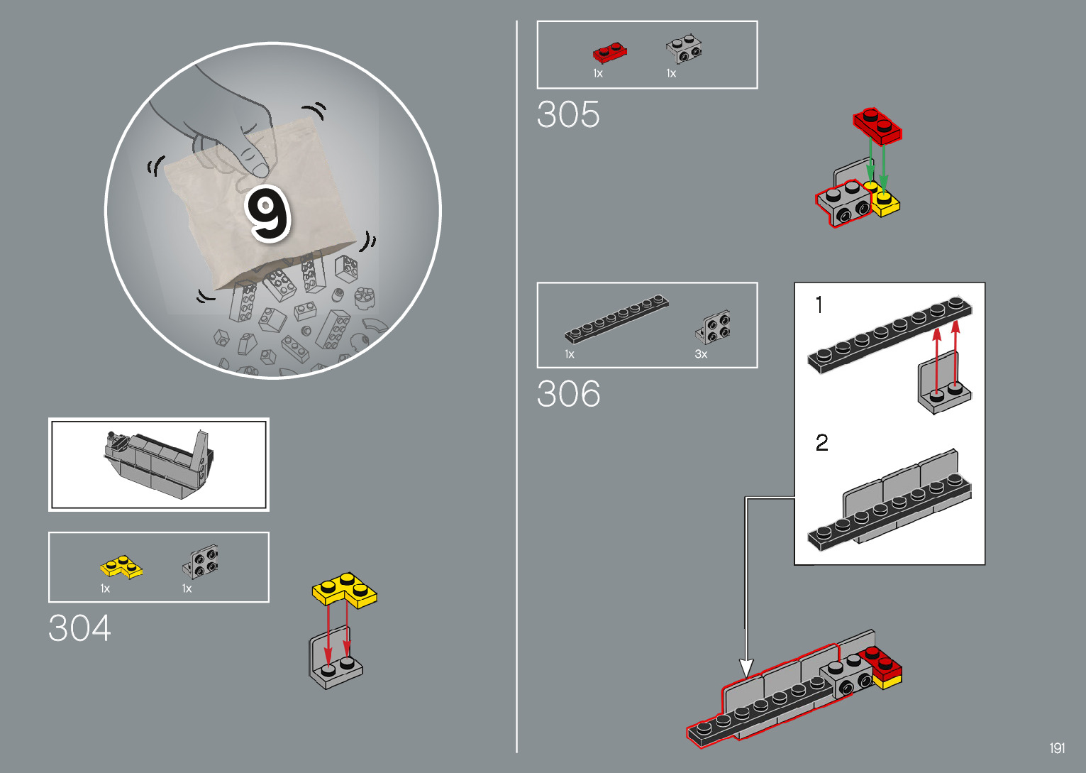 The assembly guide is prepared in a very understandable way for children and adult LEGO enthusiasts. A total of 300 picture galleries are shown, explaining the step-by-step construction stages for 1 different structures.