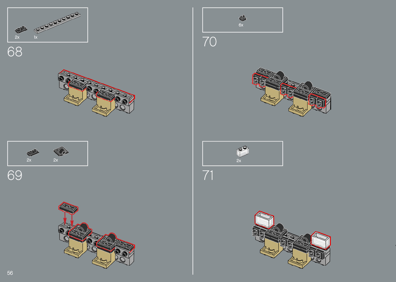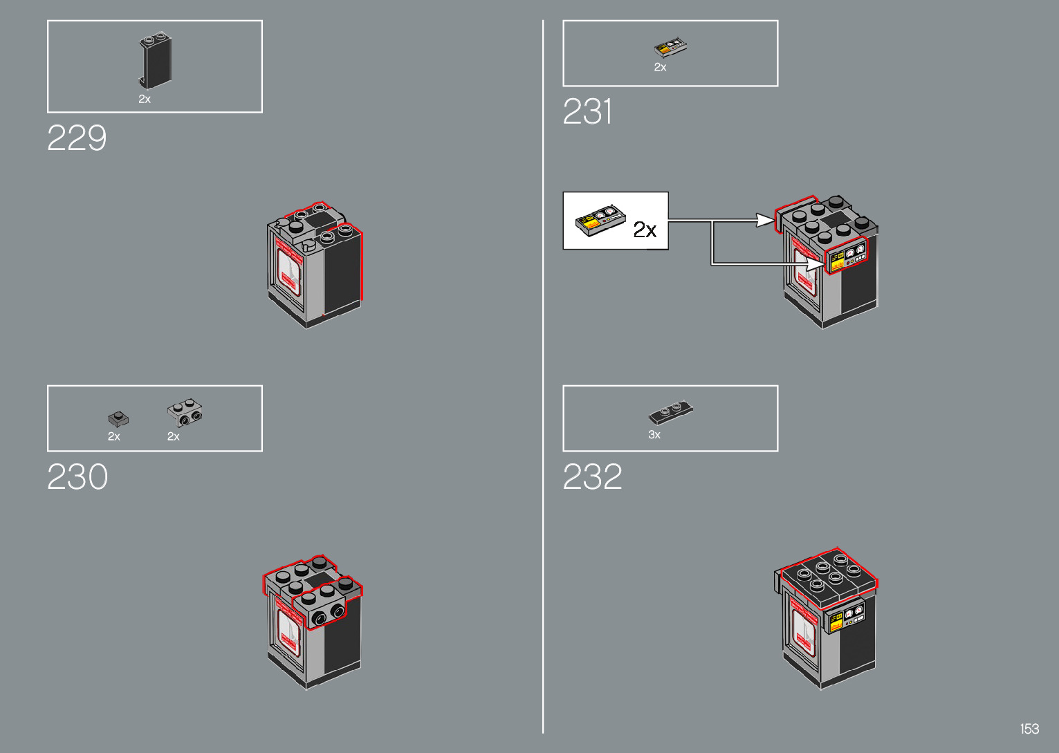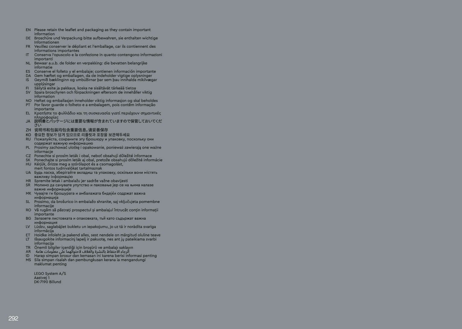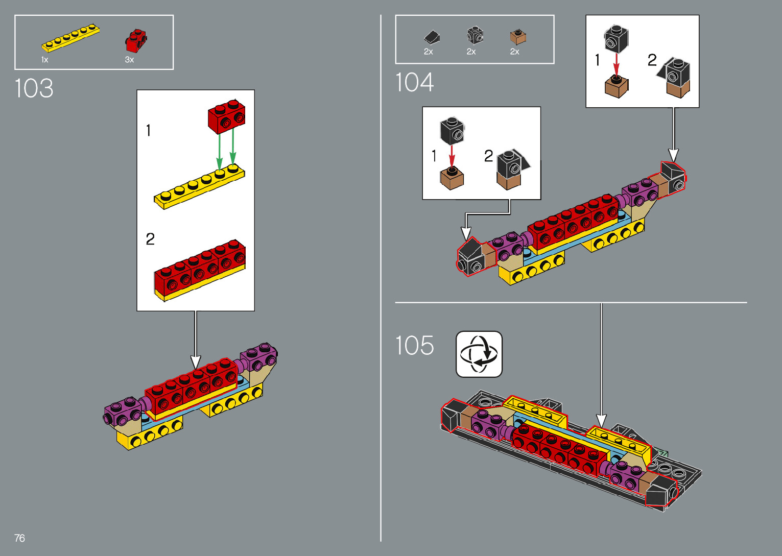 The assembly guide is prepared in a very understandable way for children and adult LEGO enthusiasts. A total of 300 picture galleries are shown, explaining the step-by-step construction stages for 1 different structures.