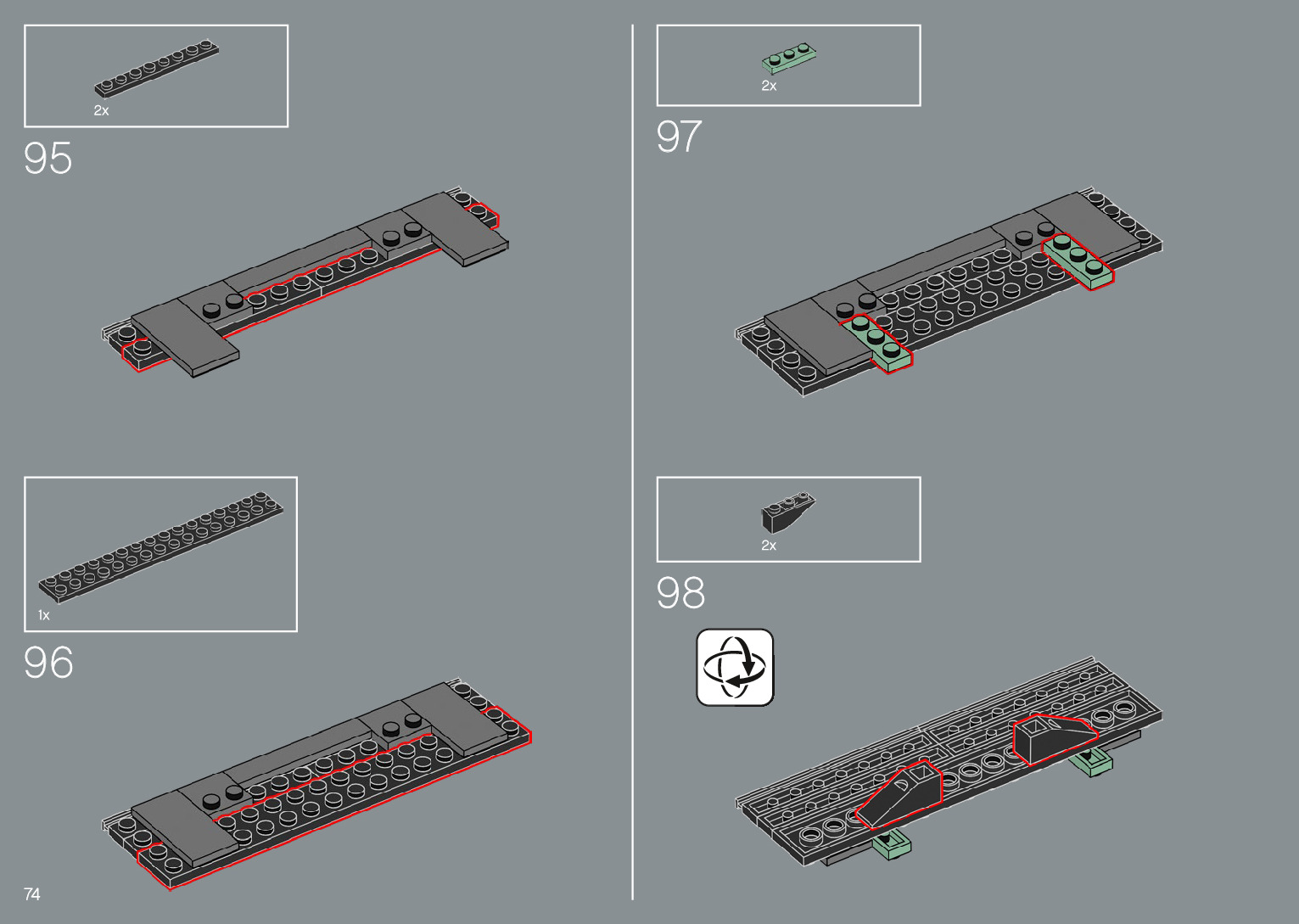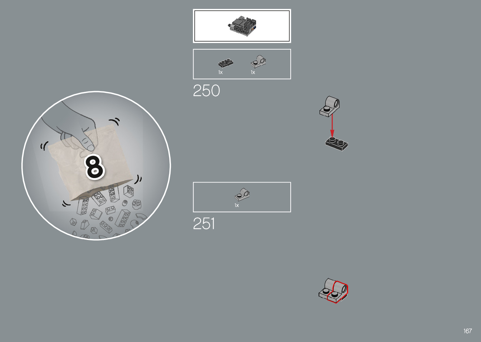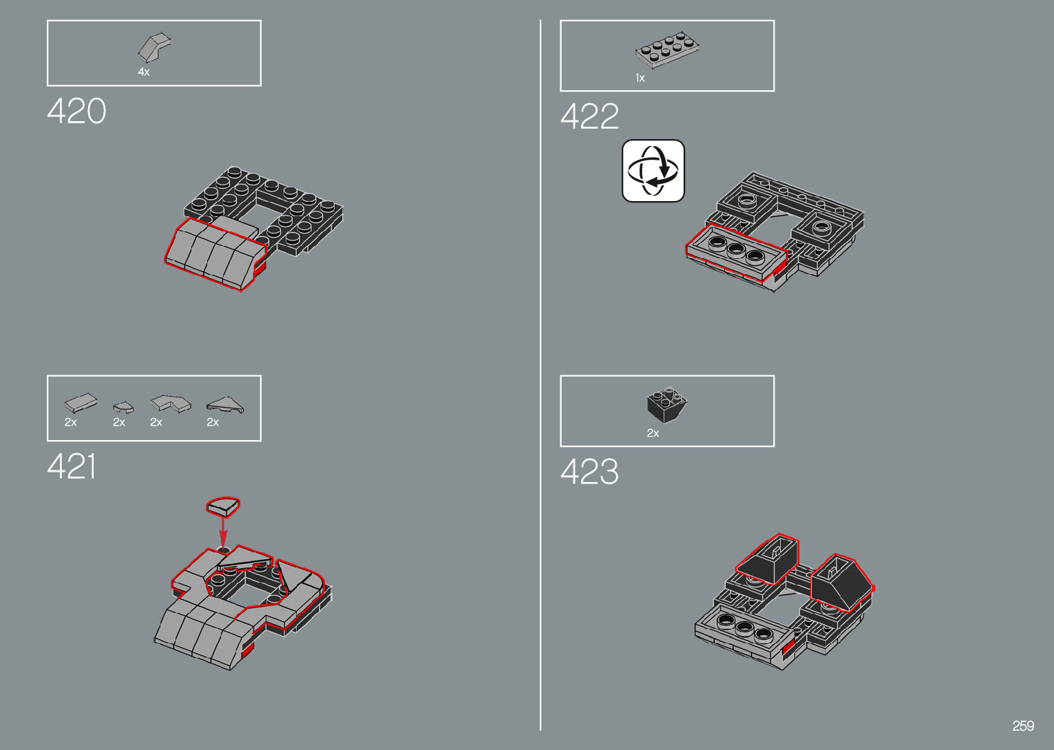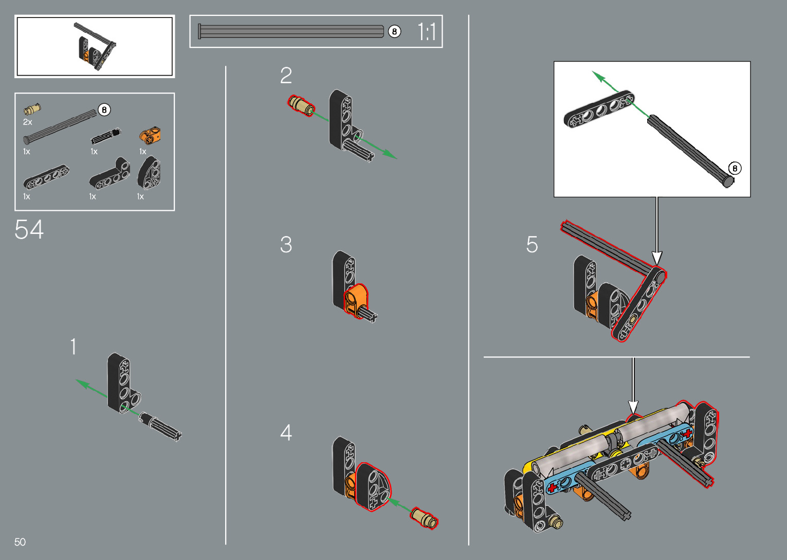 The assembly guide is prepared in a very understandable way for children and adult LEGO enthusiasts. A total of 300 picture galleries are shown, explaining the step-by-step construction stages for 1 different structures.