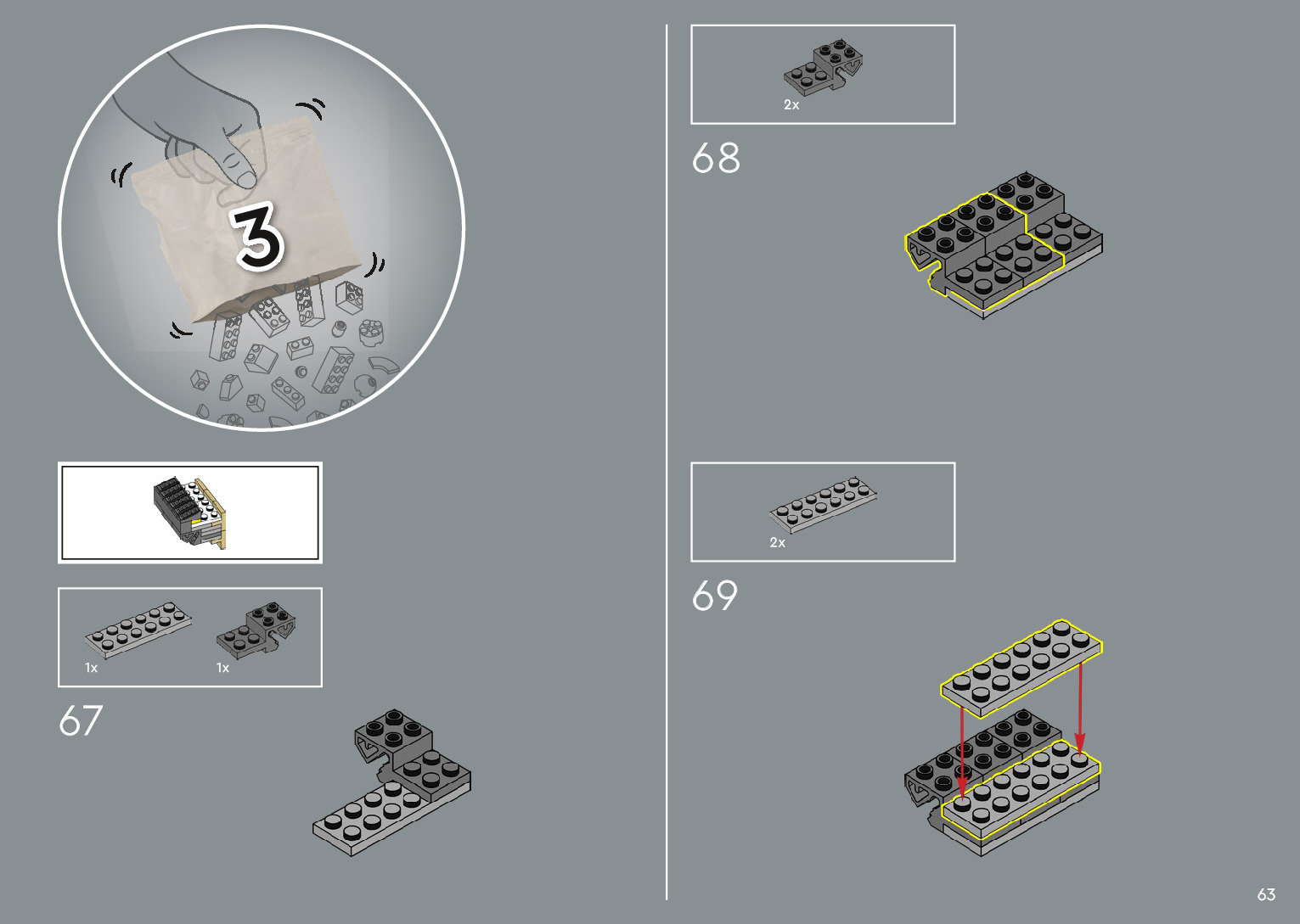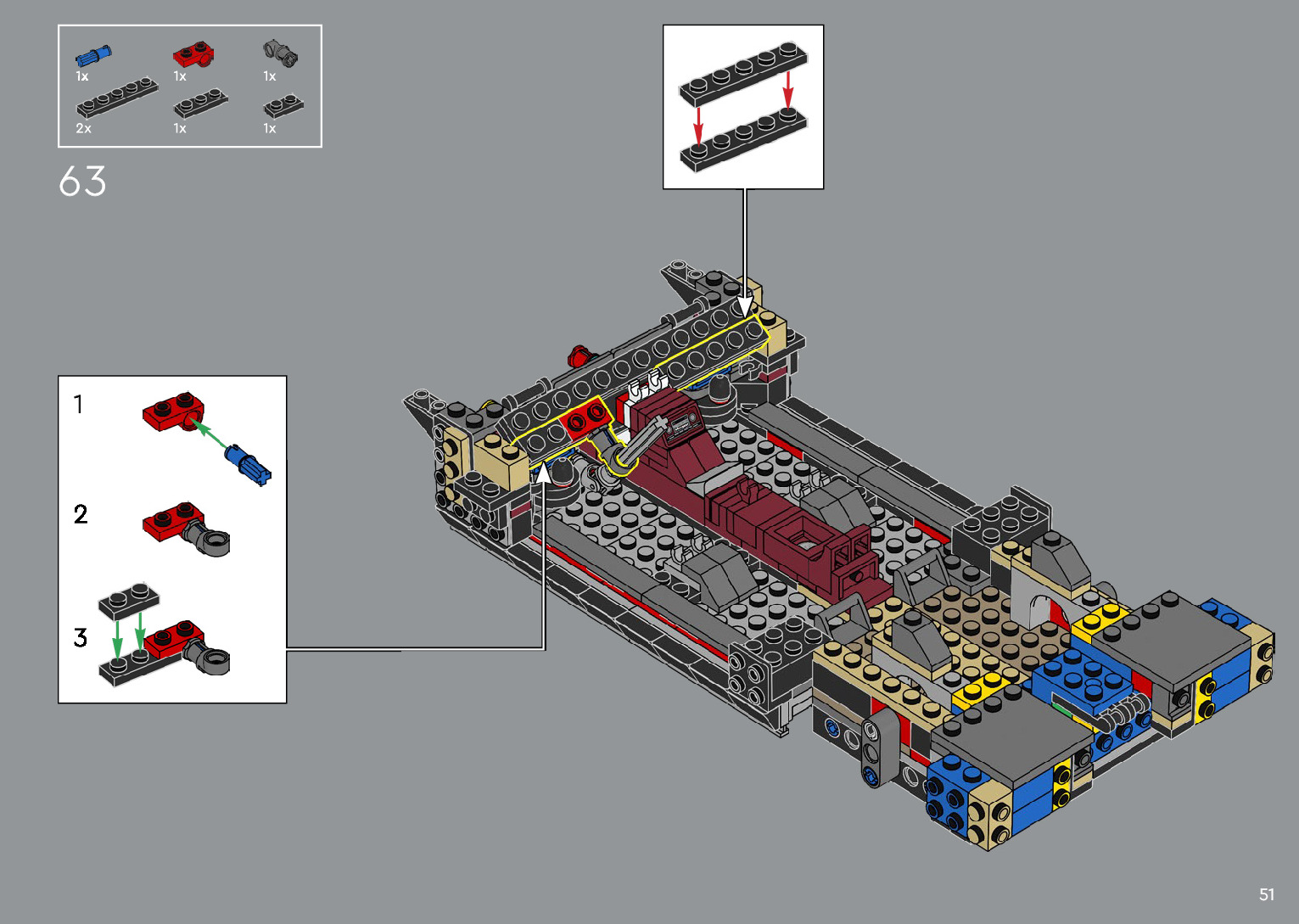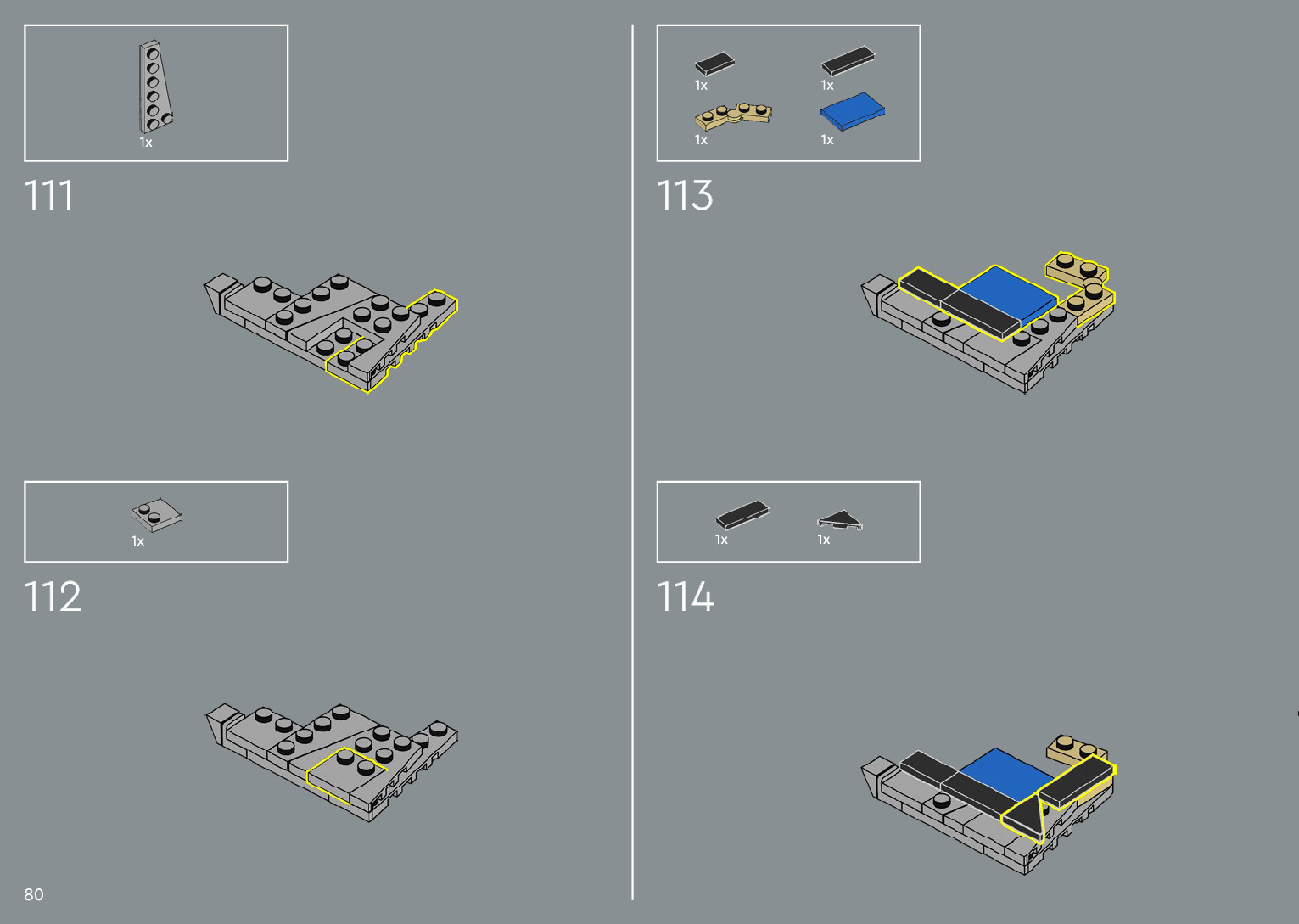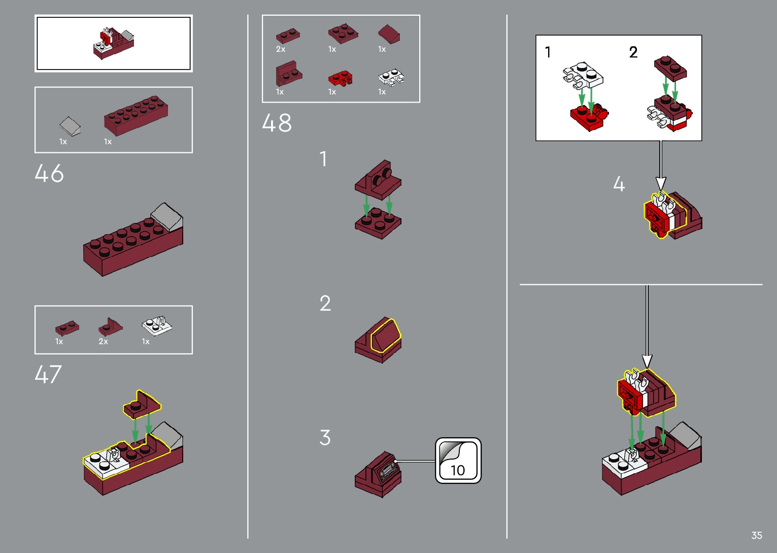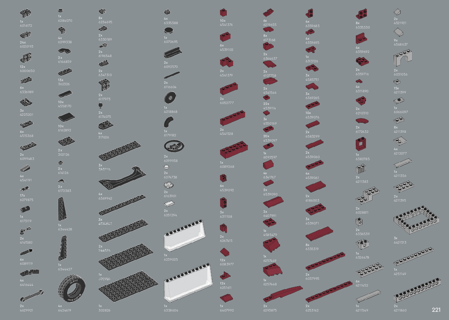 The assembly guide is prepared in a very understandable way for children and adult LEGO enthusiasts. A total of 648 picture galleries are shown, explaining the step-by-step construction stages for 3 different structures.