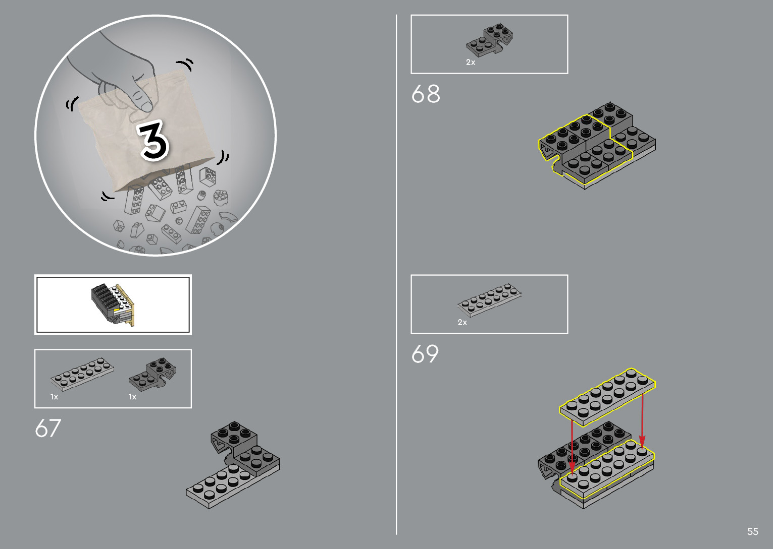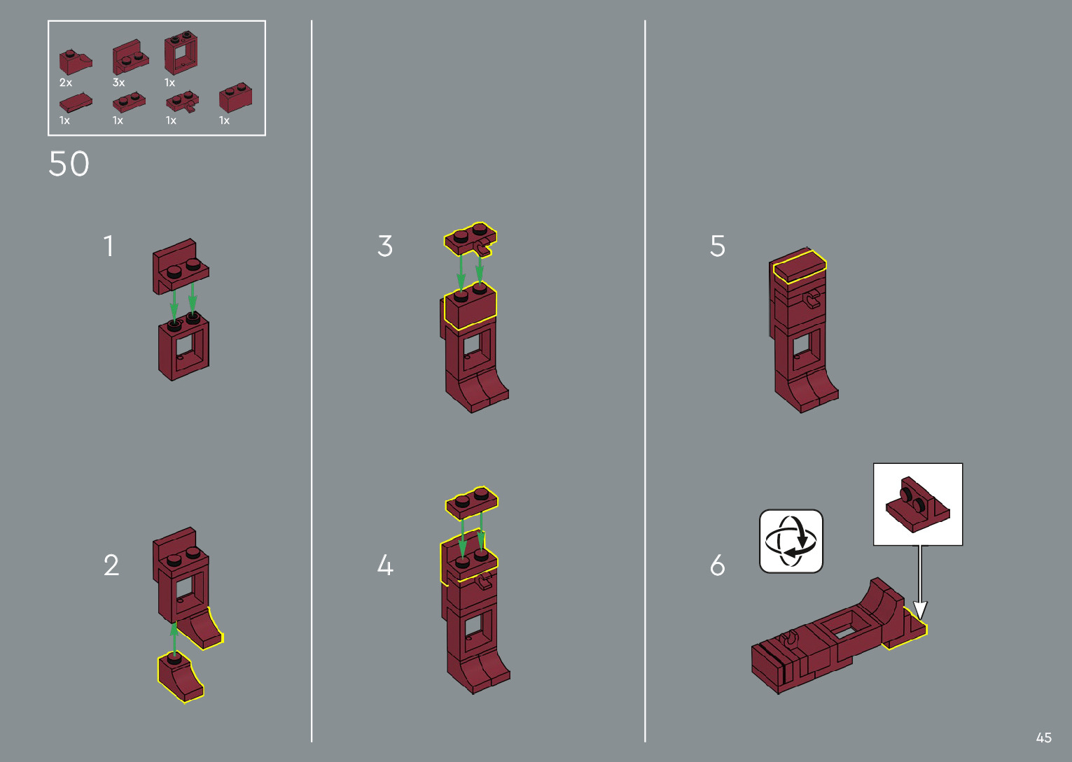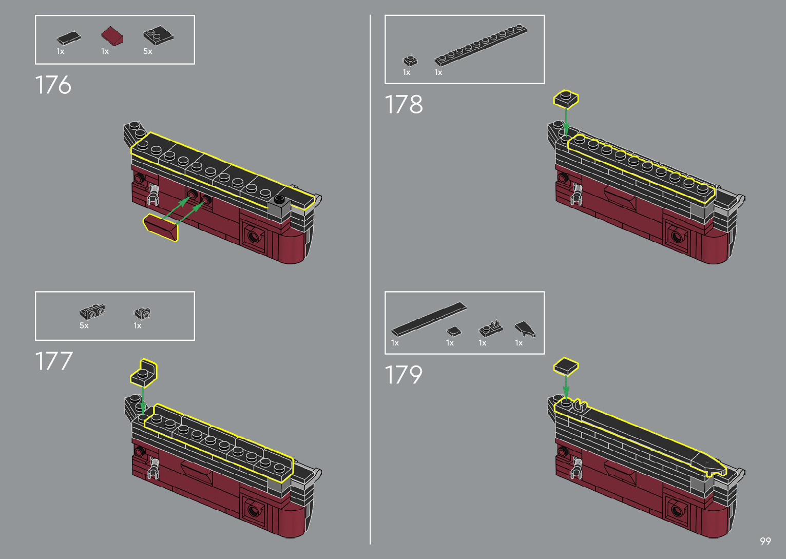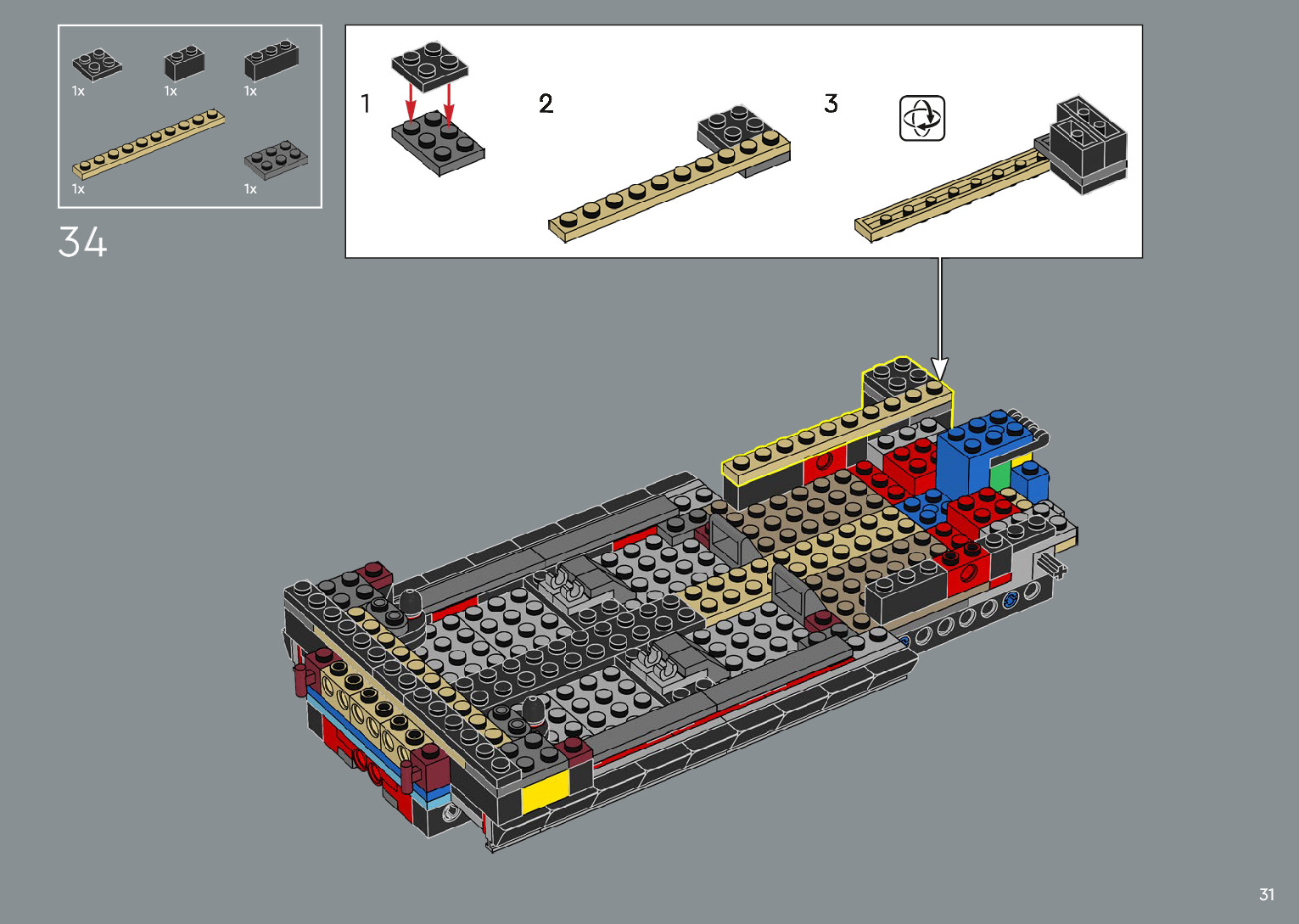The assembly guide is prepared in a very understandable way for children and adult LEGO enthusiasts. A total of 648 picture galleries are shown, explaining the step-by-step construction stages for 3 different structures.