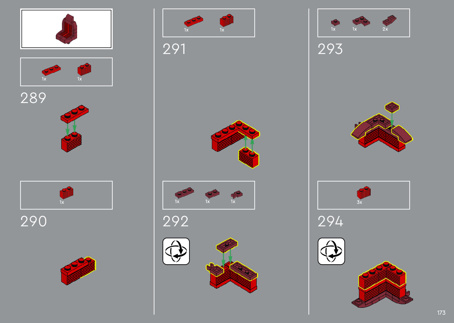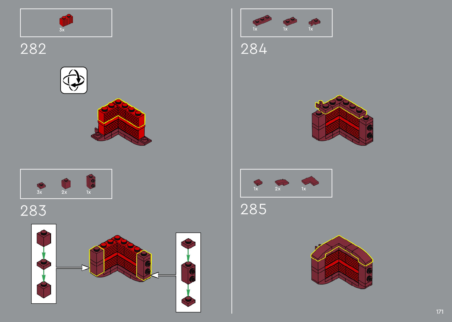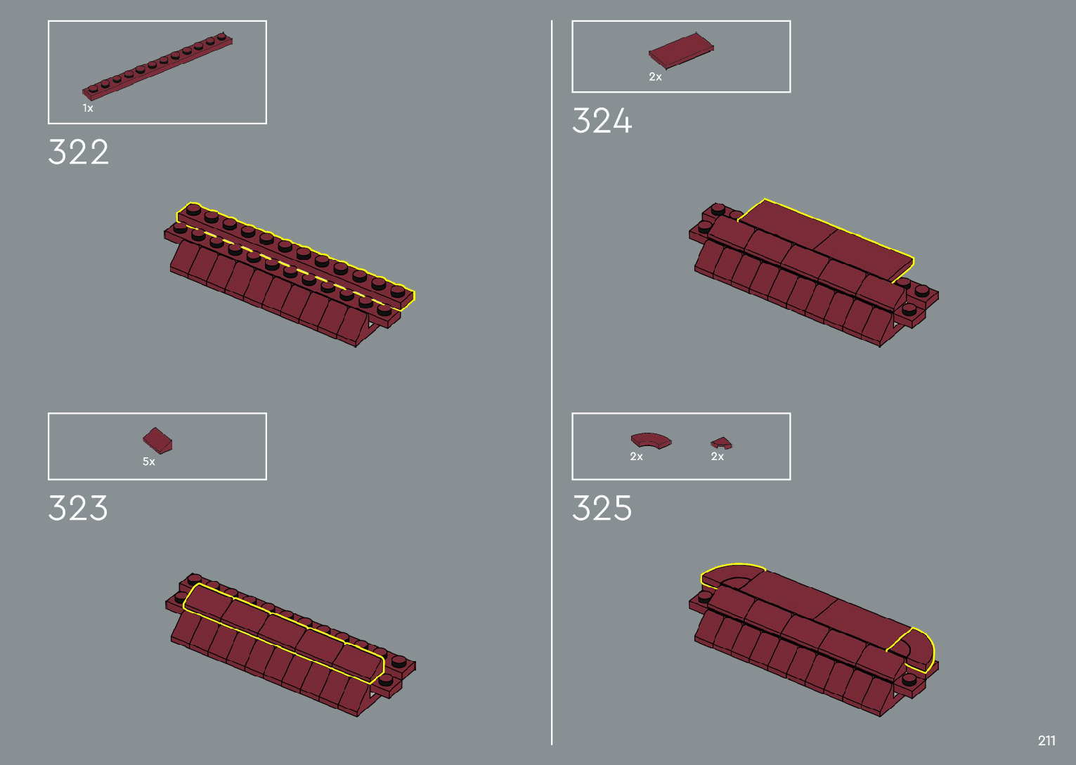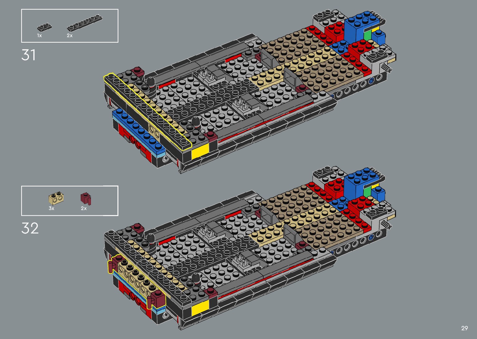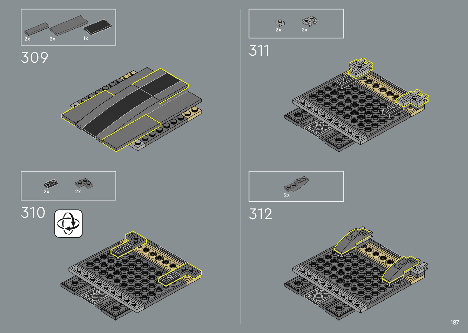 The assembly guide is prepared in a very understandable way for children and adult LEGO enthusiasts. A total of 648 picture galleries are shown, explaining the step-by-step construction stages for 3 different structures.