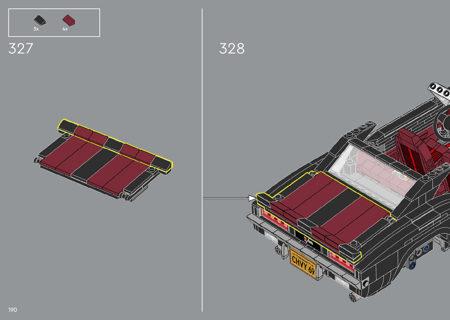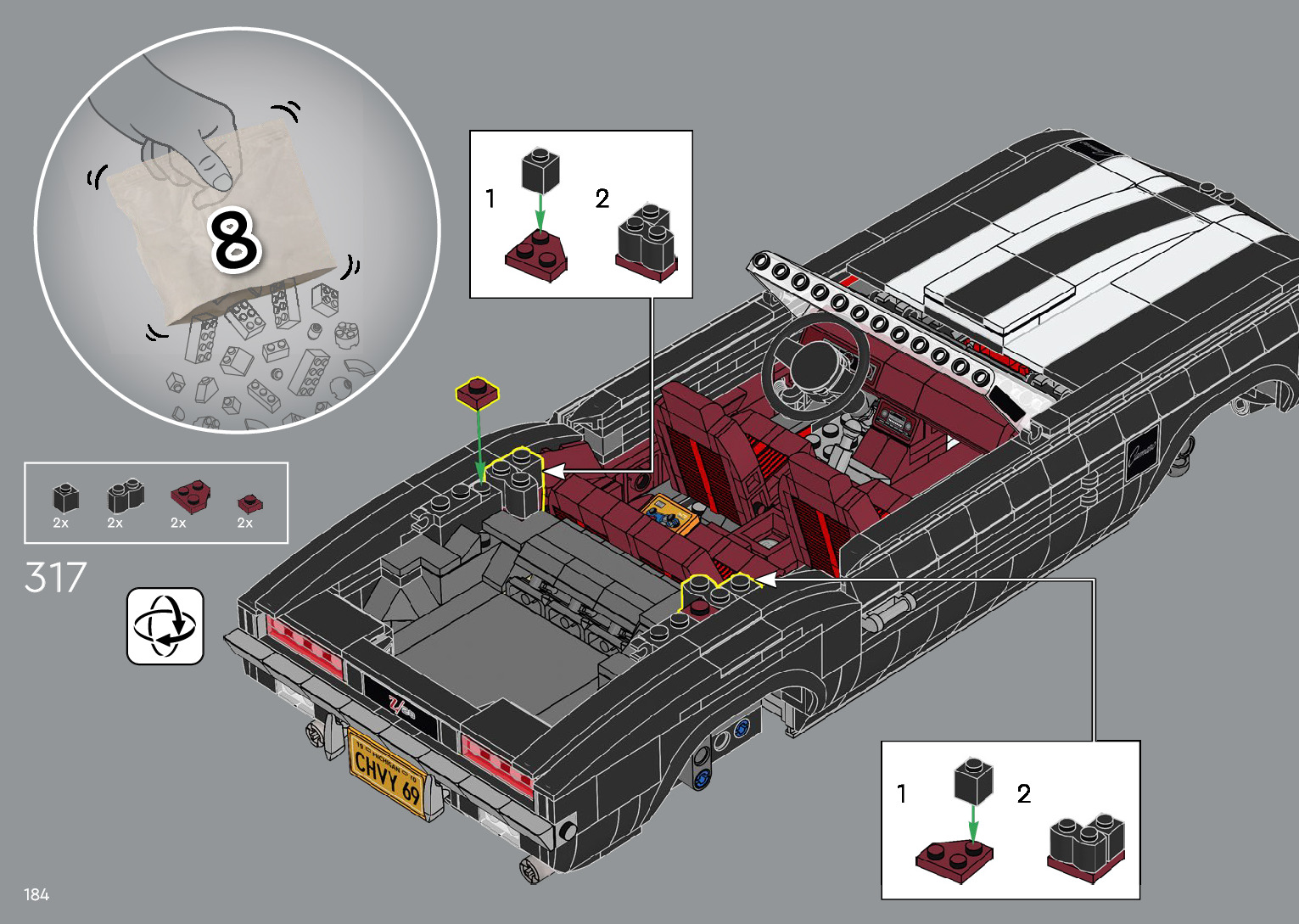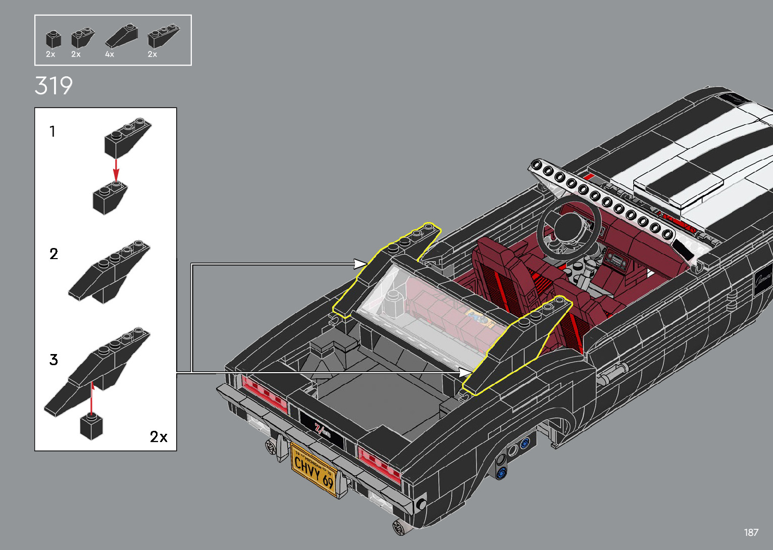 This page shares information about LEGO 10304 Chevrolet Camaro Z28 manual, LEGO 10304 PDF instructions, LEGO 10304 Chevrolet Camaro Z28 building guide online, How to build 10304 Chevrolet Camaro Z28 LEGO.