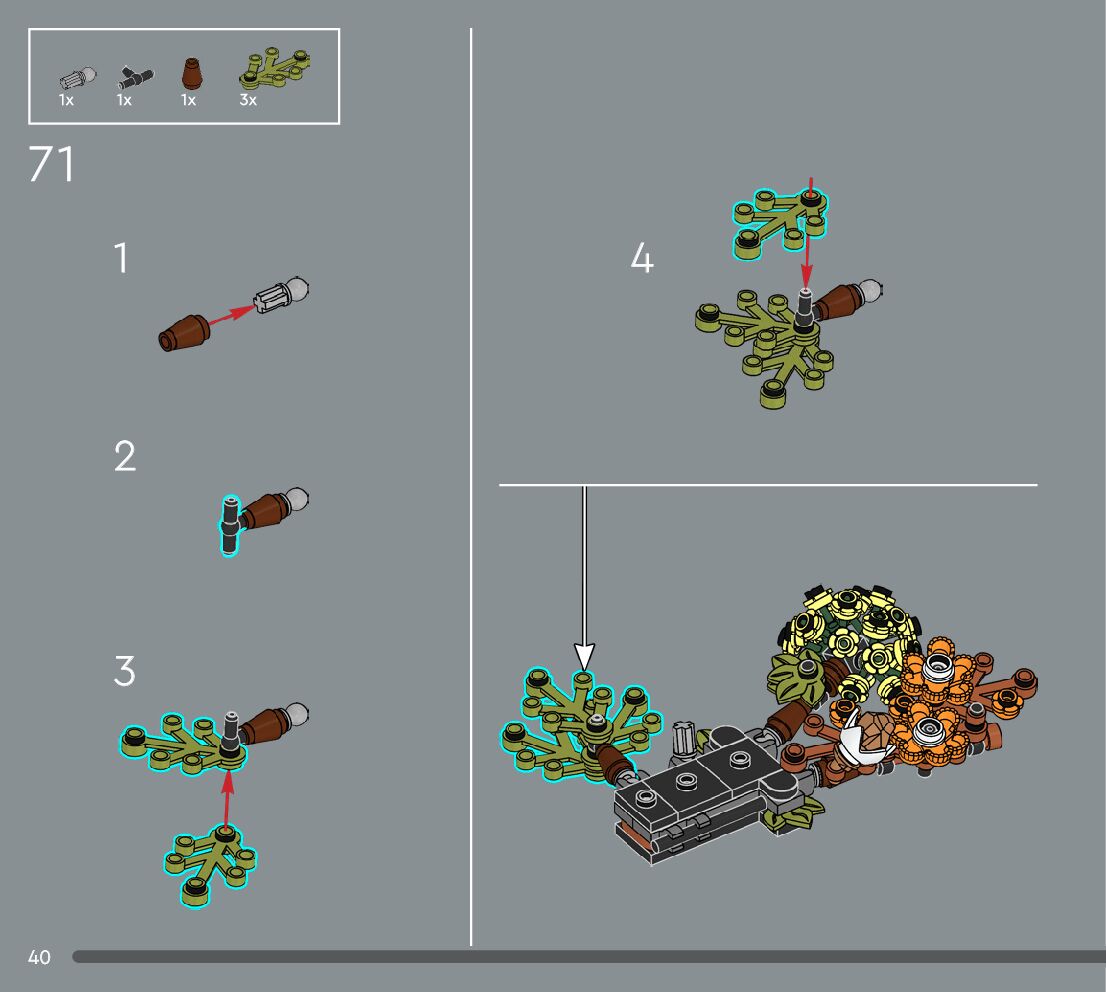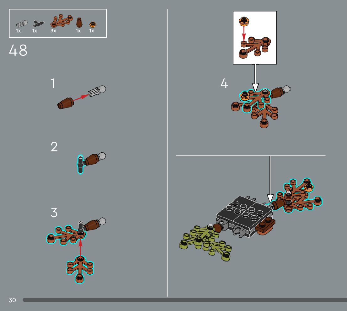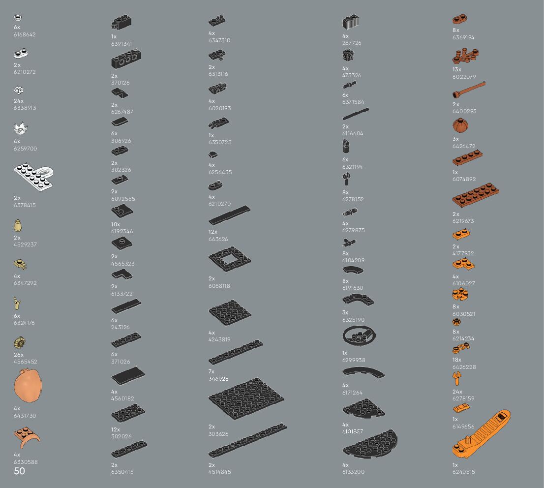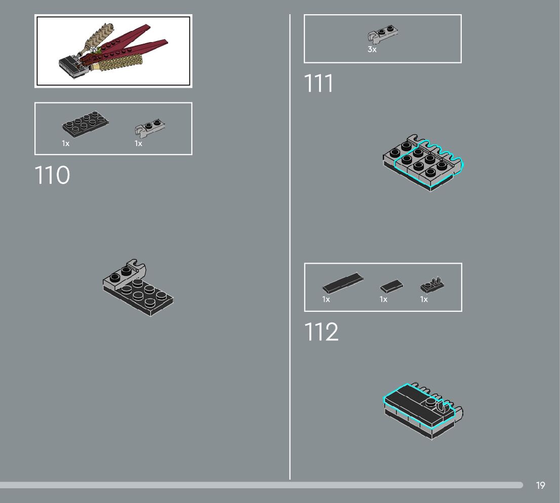 The assembly guide is prepared in a very understandable way for children and adult LEGO enthusiasts. A total of 115 picture galleries are shown, explaining the step-by-step construction stages for 2 different structures.
