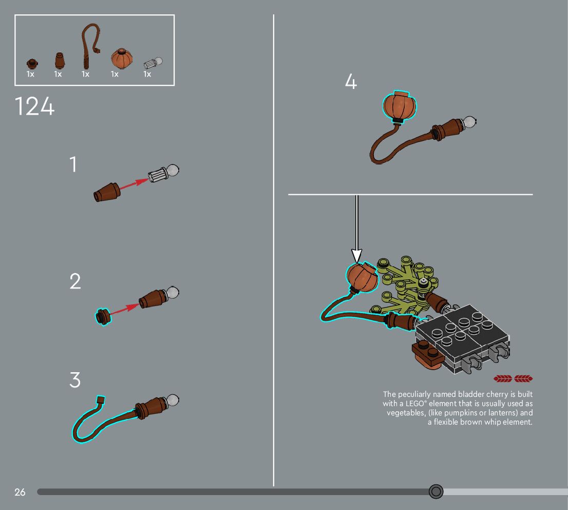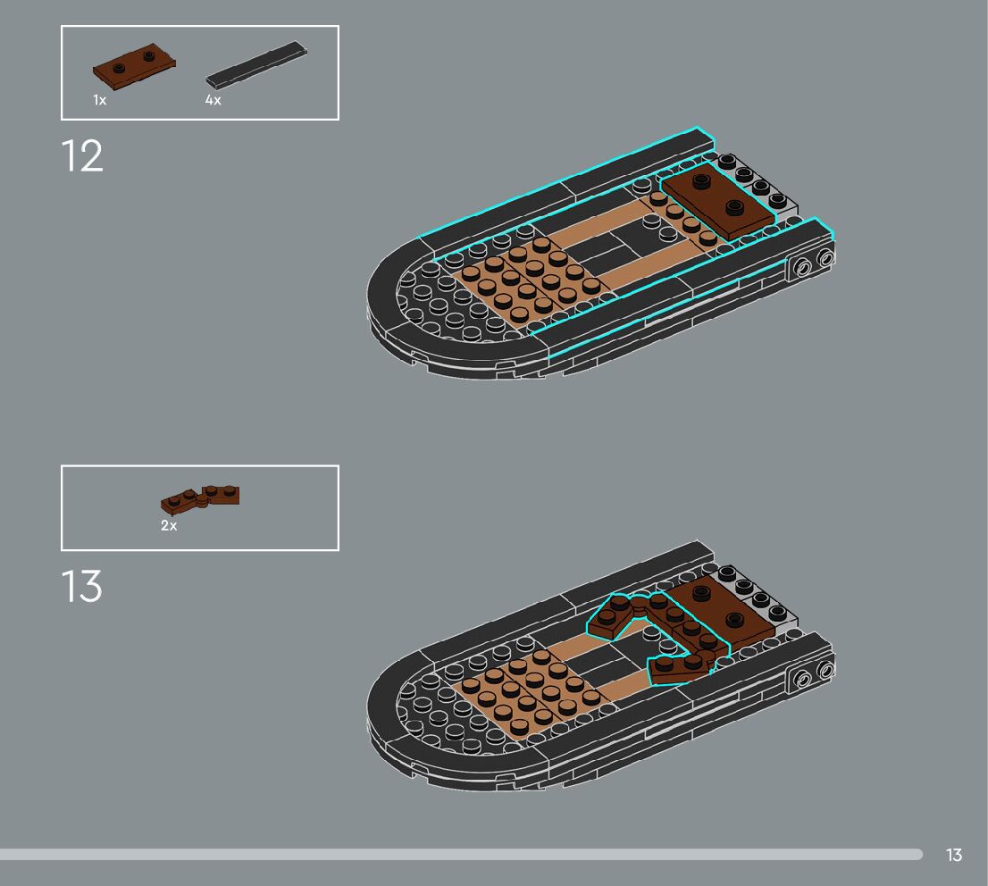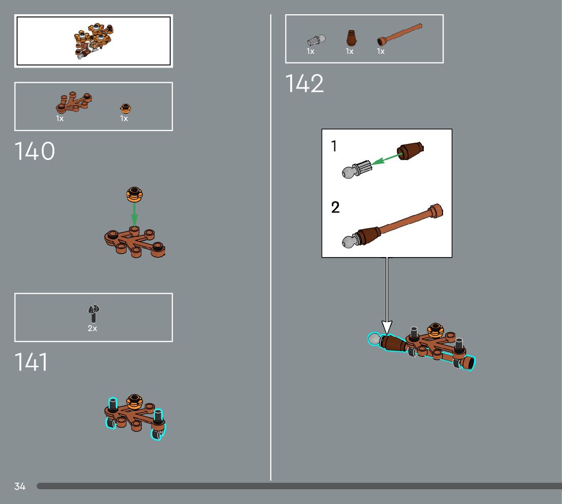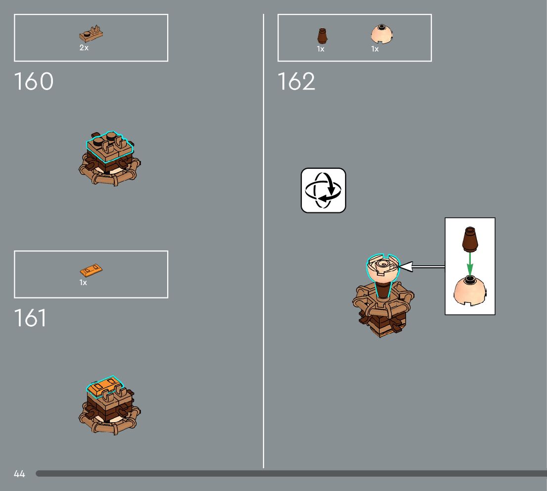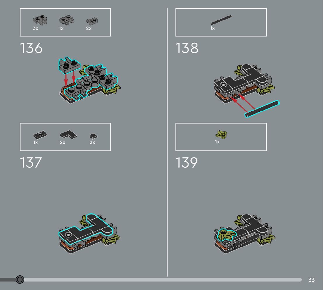 The assembly guide is prepared in a very understandable way for children and adult LEGO enthusiasts. A total of 115 picture galleries are shown, explaining the step-by-step construction stages for 2 different structures.