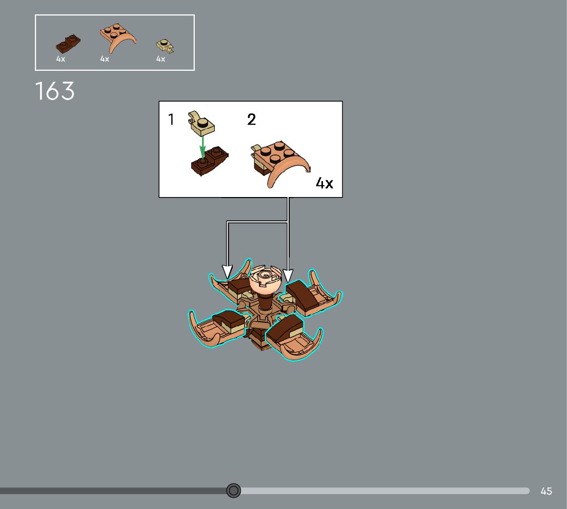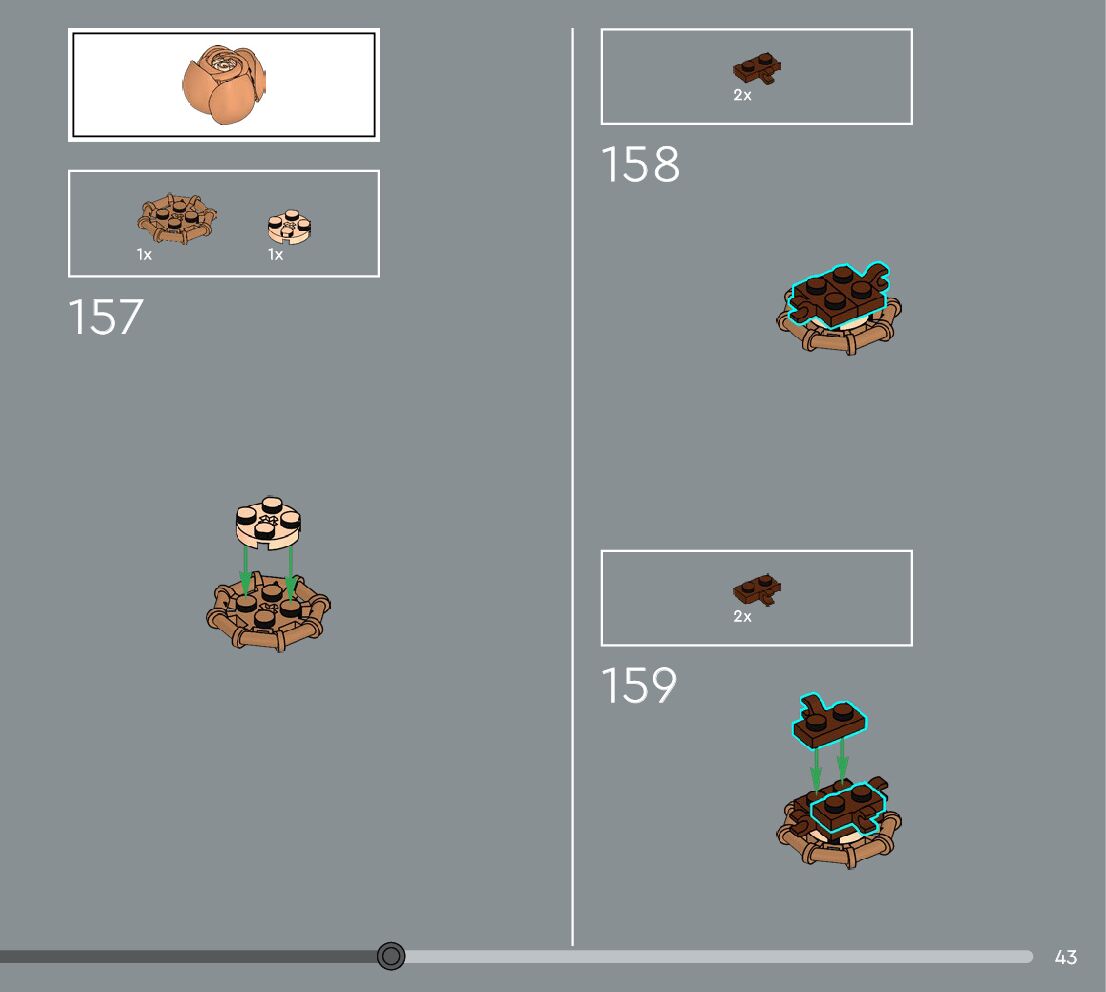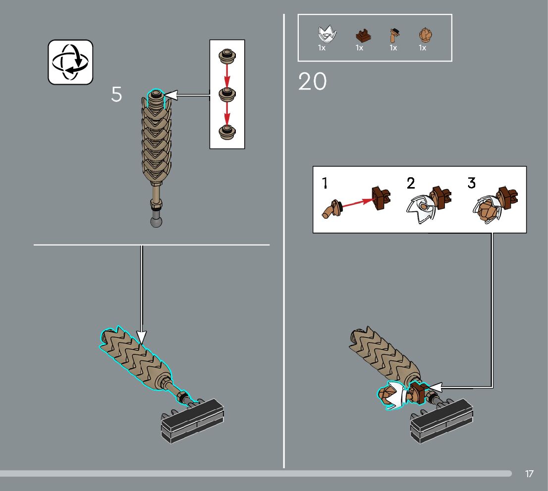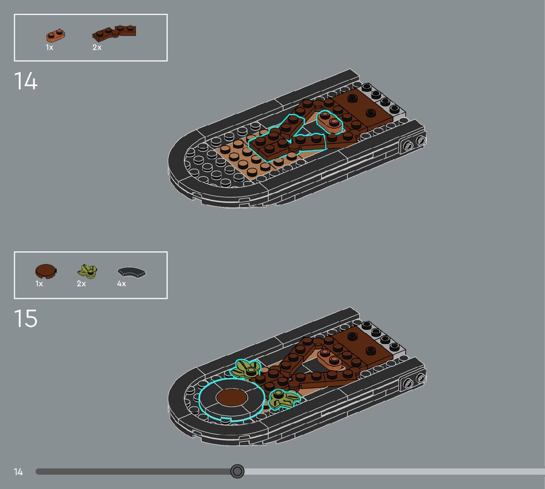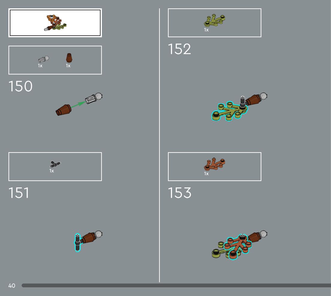 The assembly guide is prepared in a very understandable way for children and adult LEGO enthusiasts. A total of 115 picture galleries are shown, explaining the step-by-step construction stages for 2 different structures.