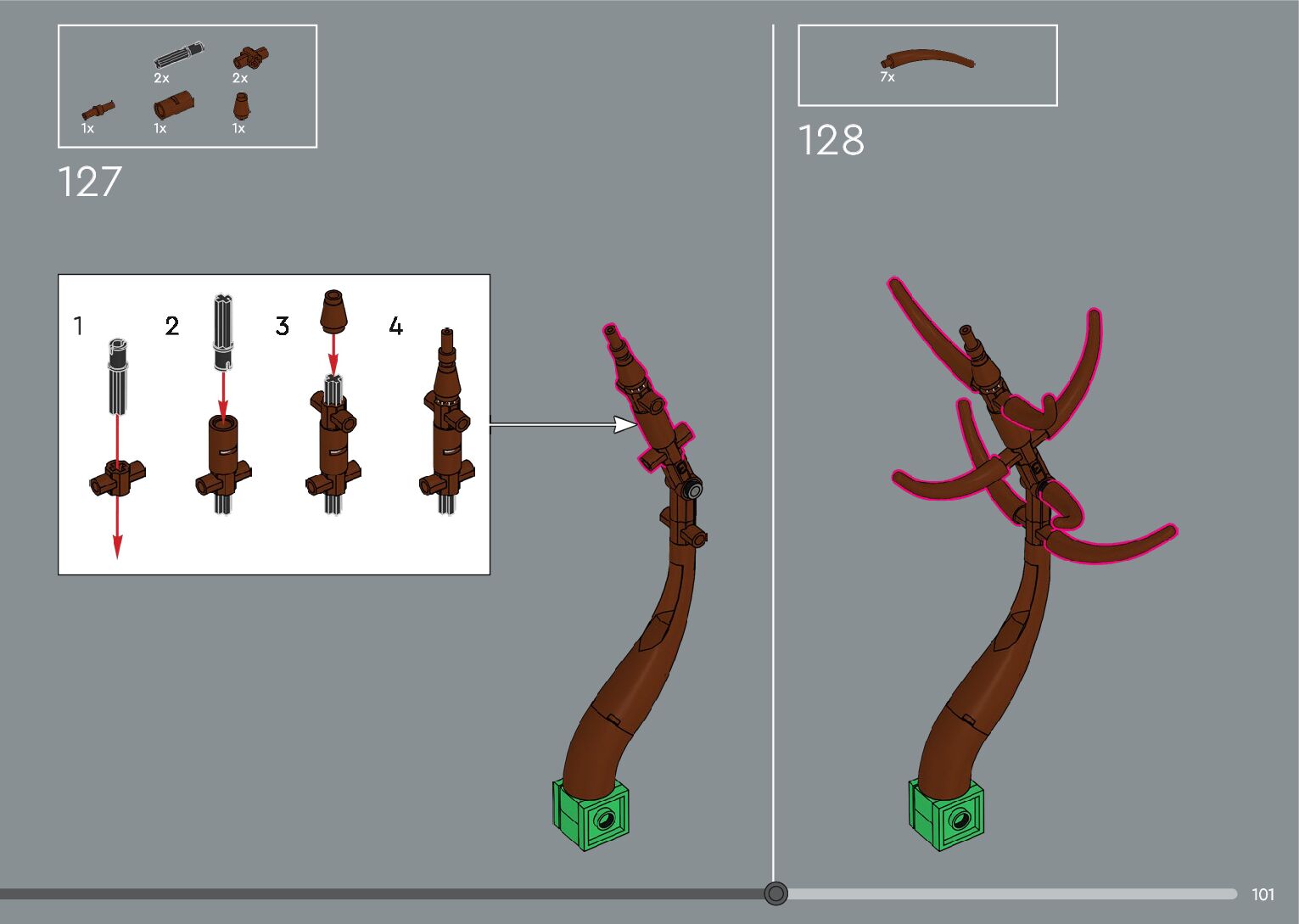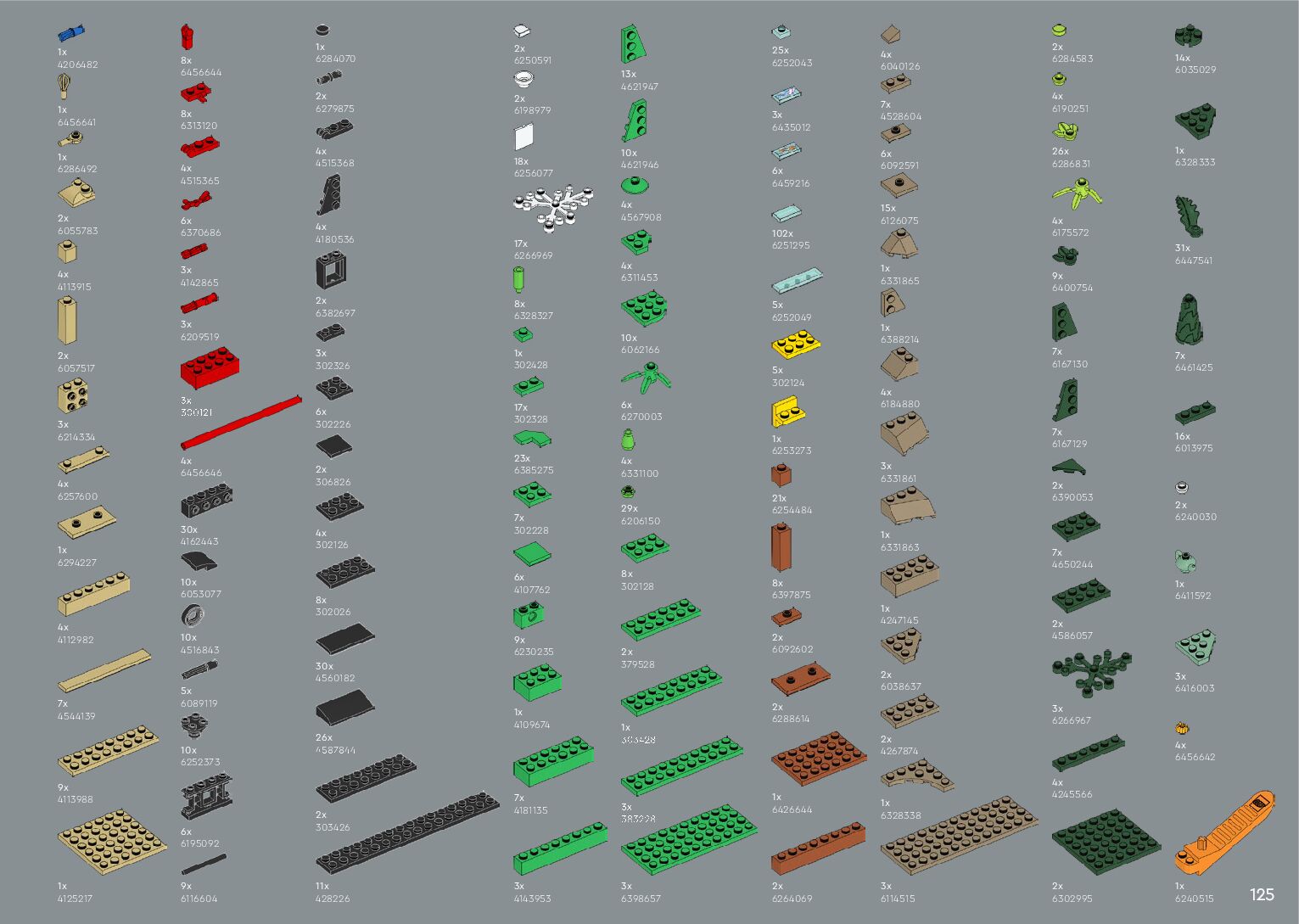 The assembly guide is prepared in a very understandable way for children and adult LEGO enthusiasts. A total of 128 picture galleries are shown, explaining the step-by-step construction stages for 1 different structures.