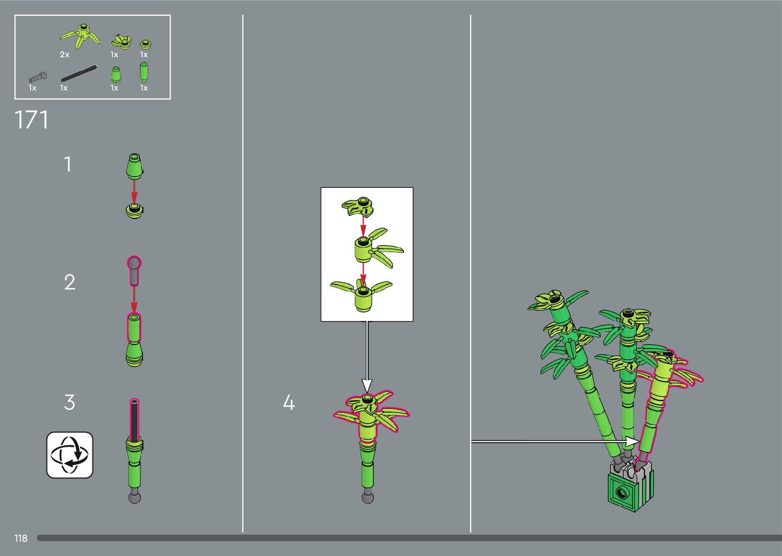 On this page you can find the original construction manual for the LEGO 10315 set. With the assembly manual you can easily learn how to build the 10315 Tranquil Garden step by step. The set was released in 2023.