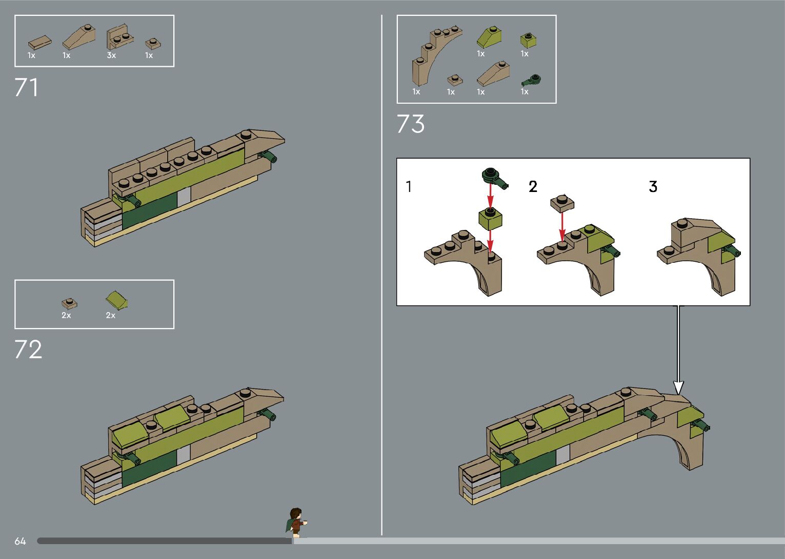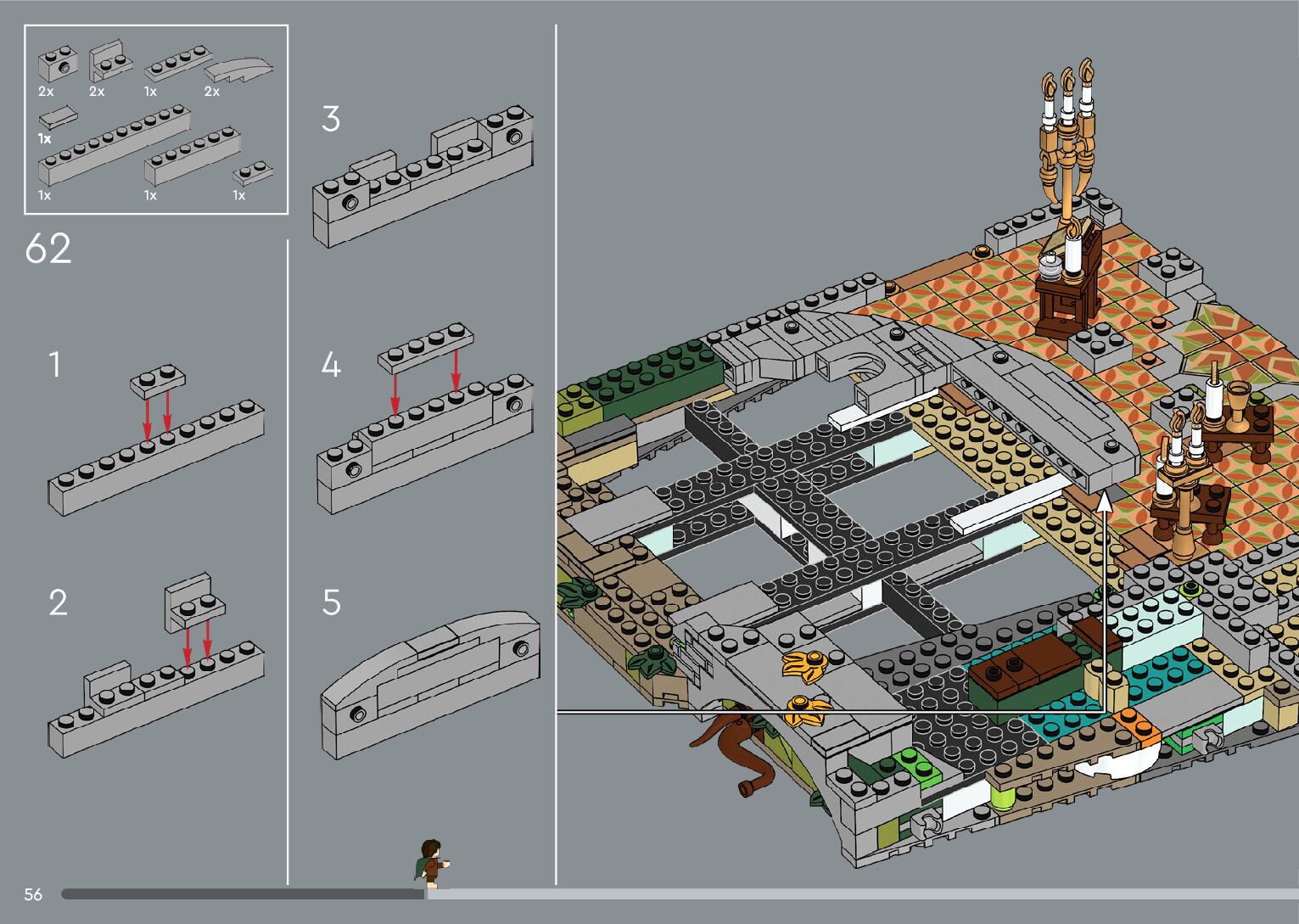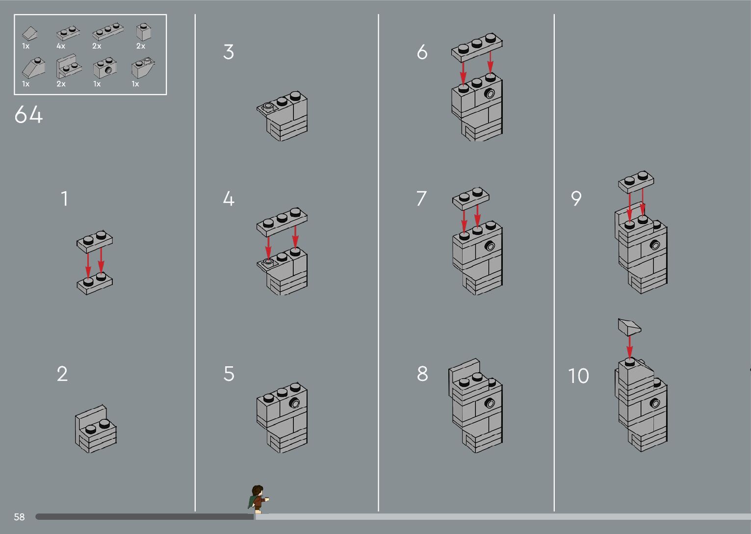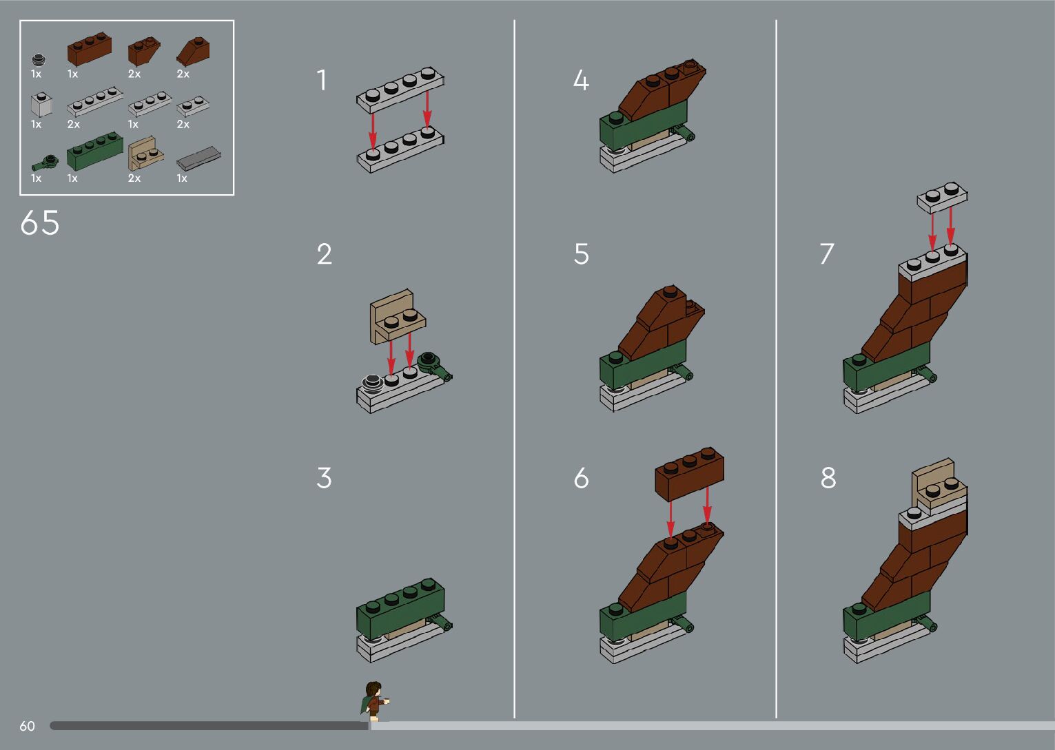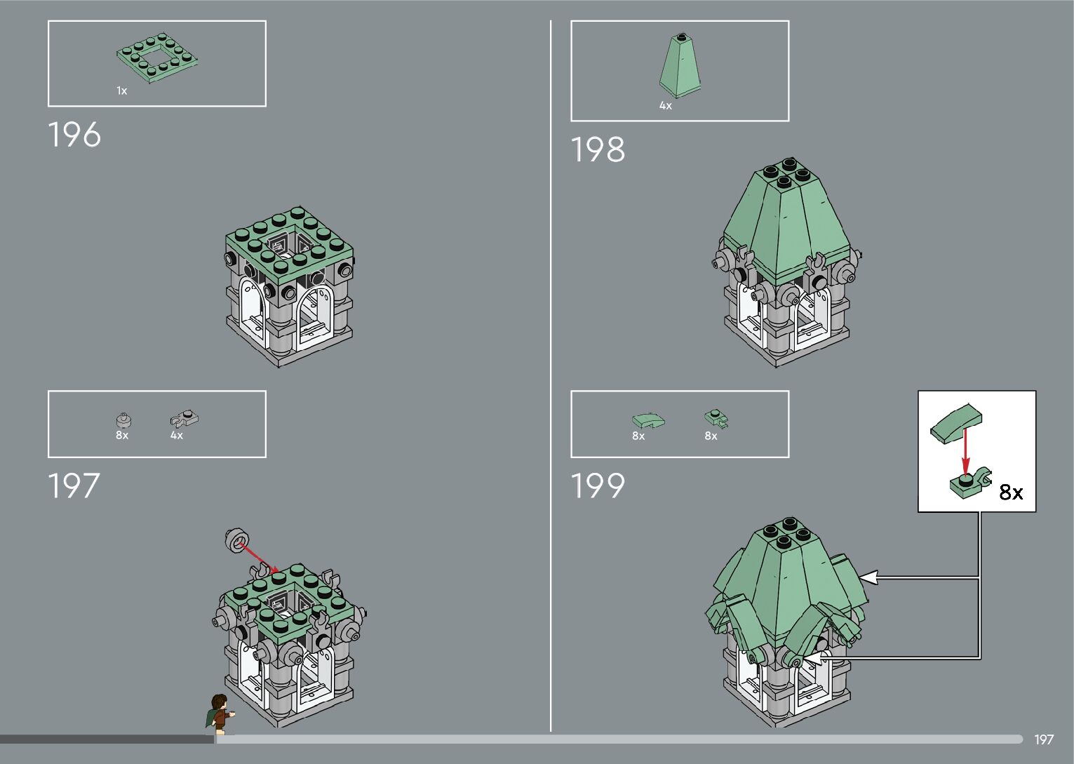 The assembly guide is prepared in a very understandable way for children and adult LEGO enthusiasts. A total of 680 picture galleries are shown, explaining the step-by-step construction stages for 3 different structures.