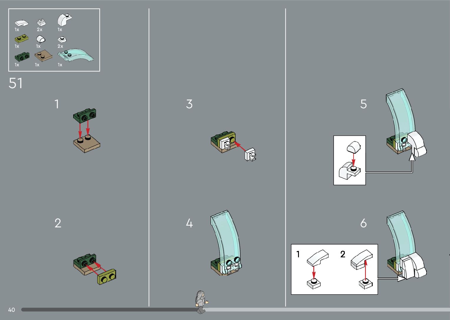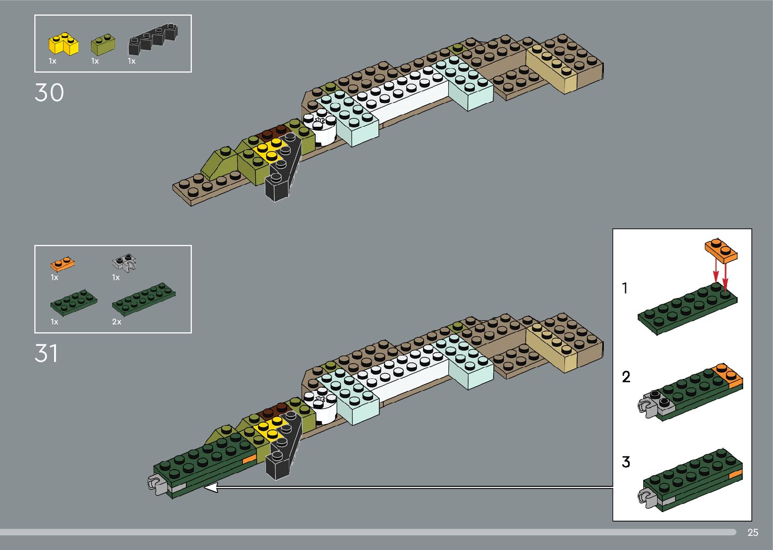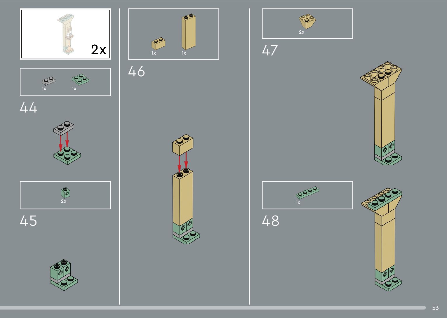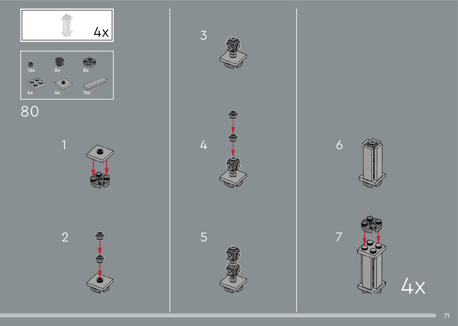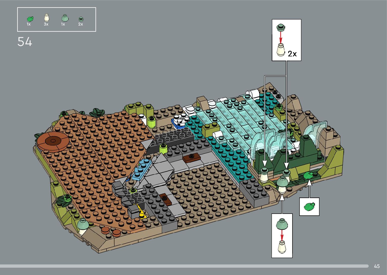 The assembly guide is prepared in a very understandable way for children and adult LEGO enthusiasts. A total of 680 picture galleries are shown, explaining the step-by-step construction stages for 3 different structures.