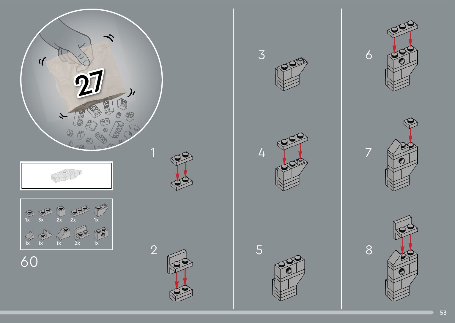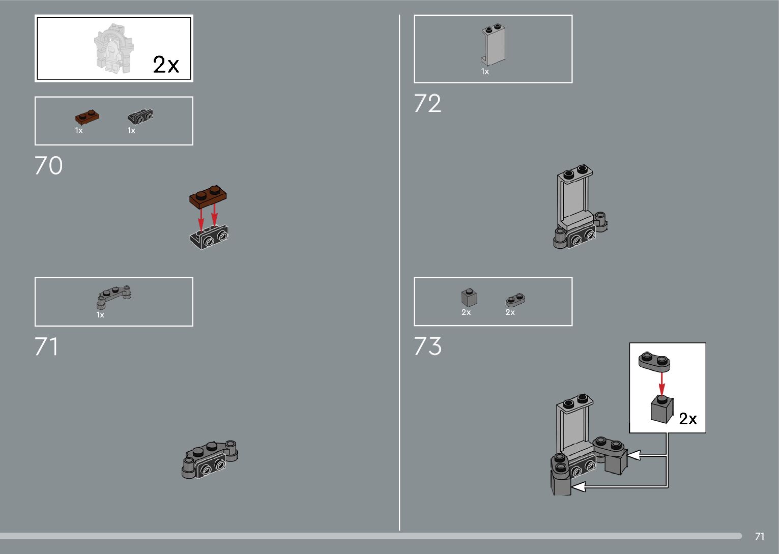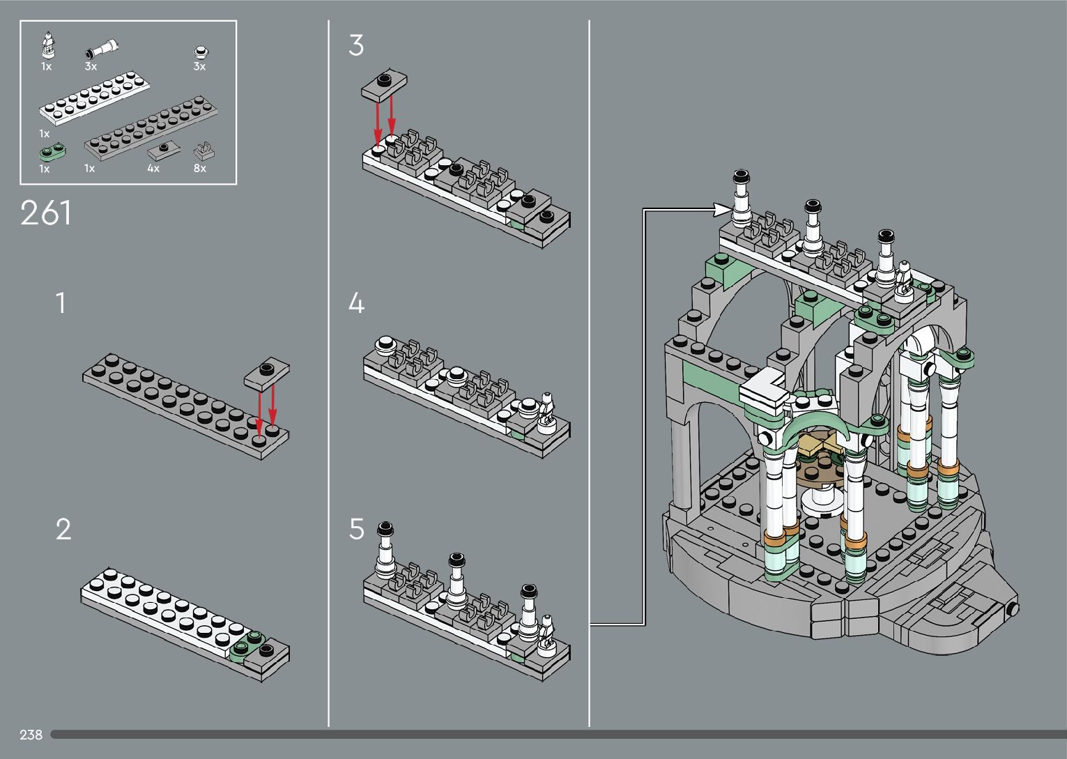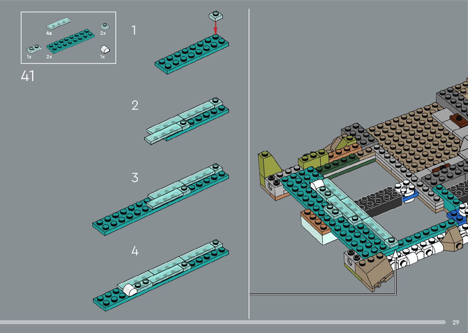 The assembly guide is prepared in a very understandable way for children and adult LEGO enthusiasts. A total of 680 picture galleries are shown, explaining the step-by-step construction stages for 3 different structures.