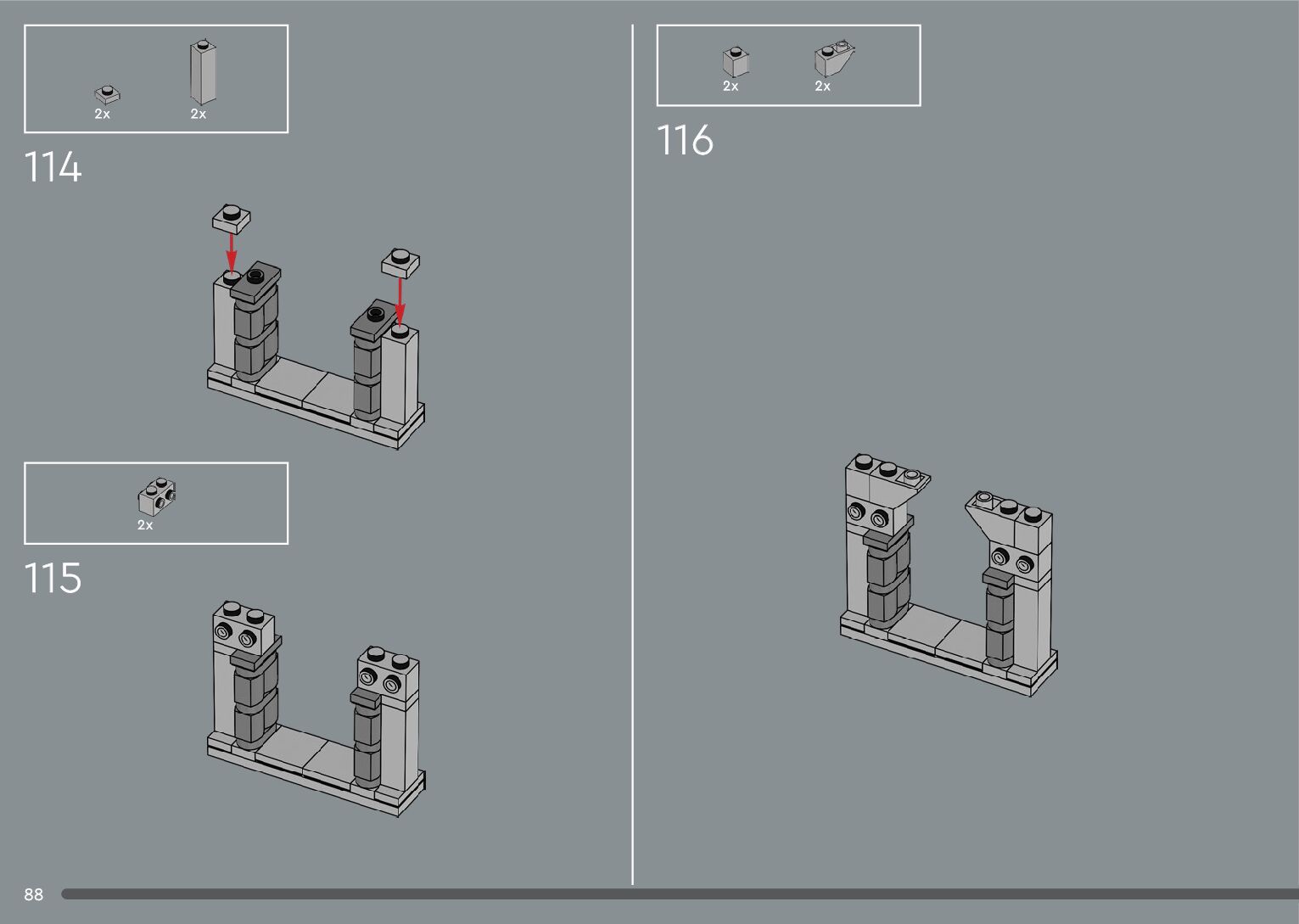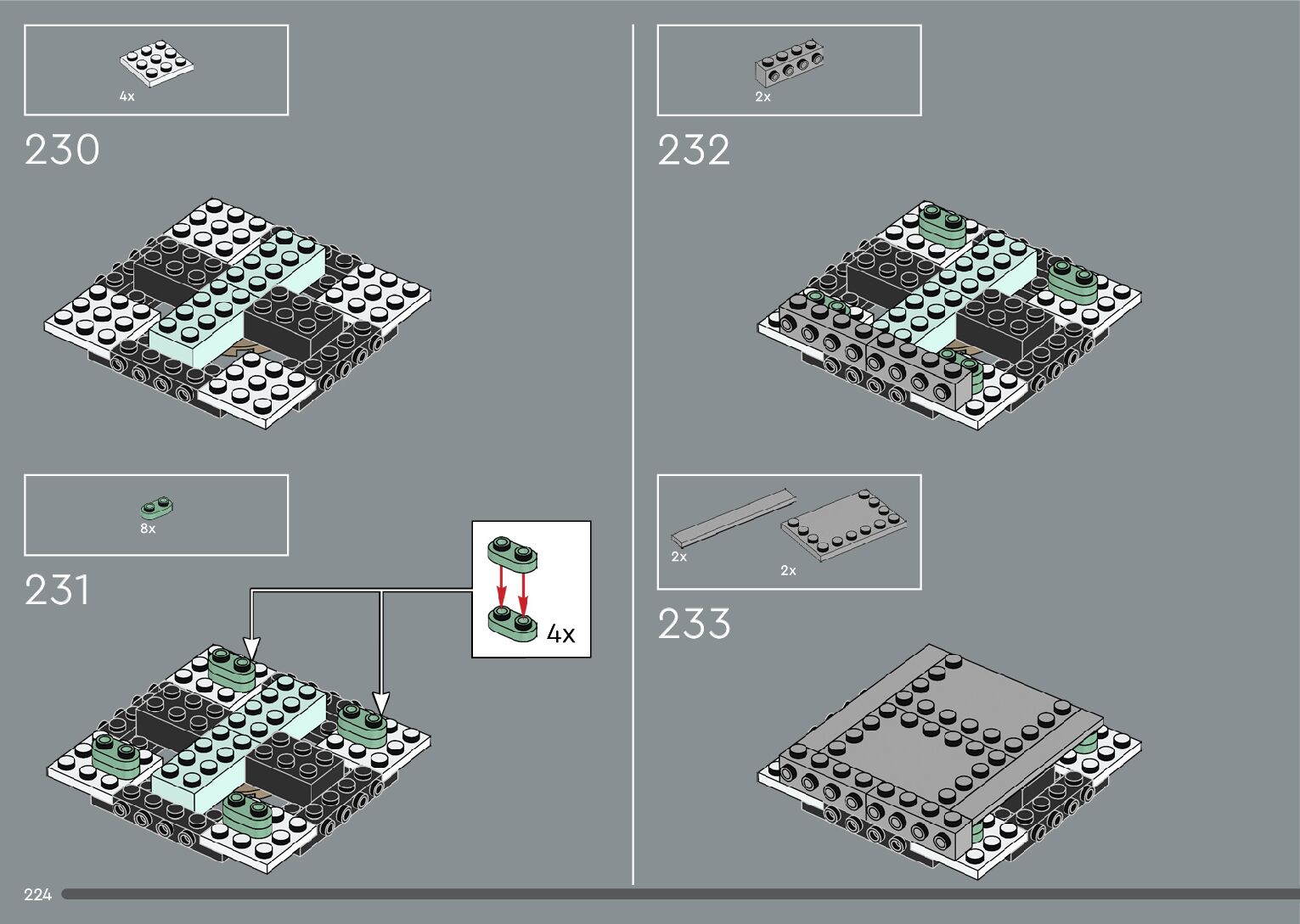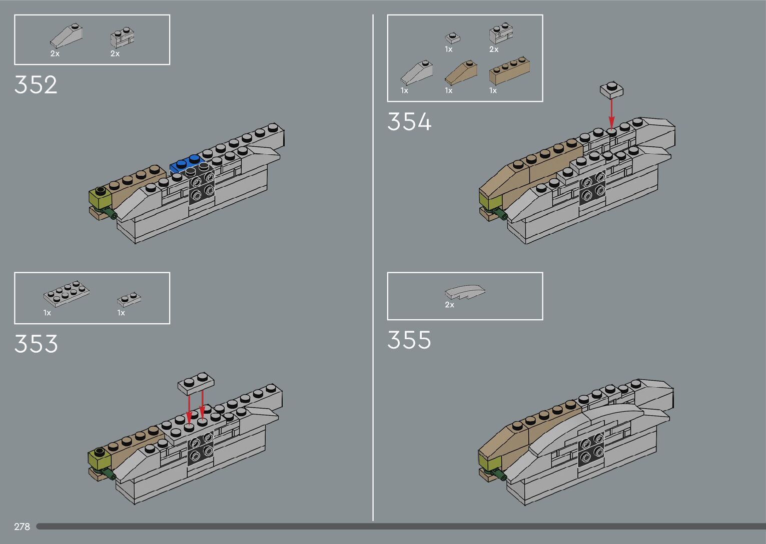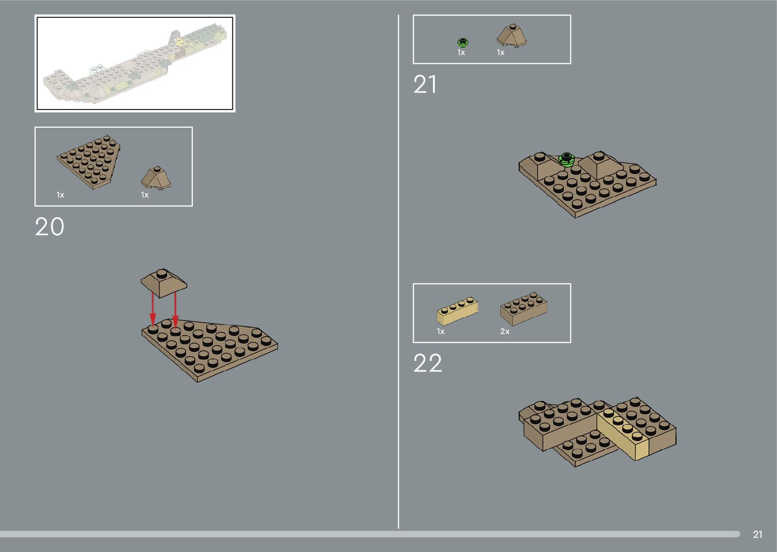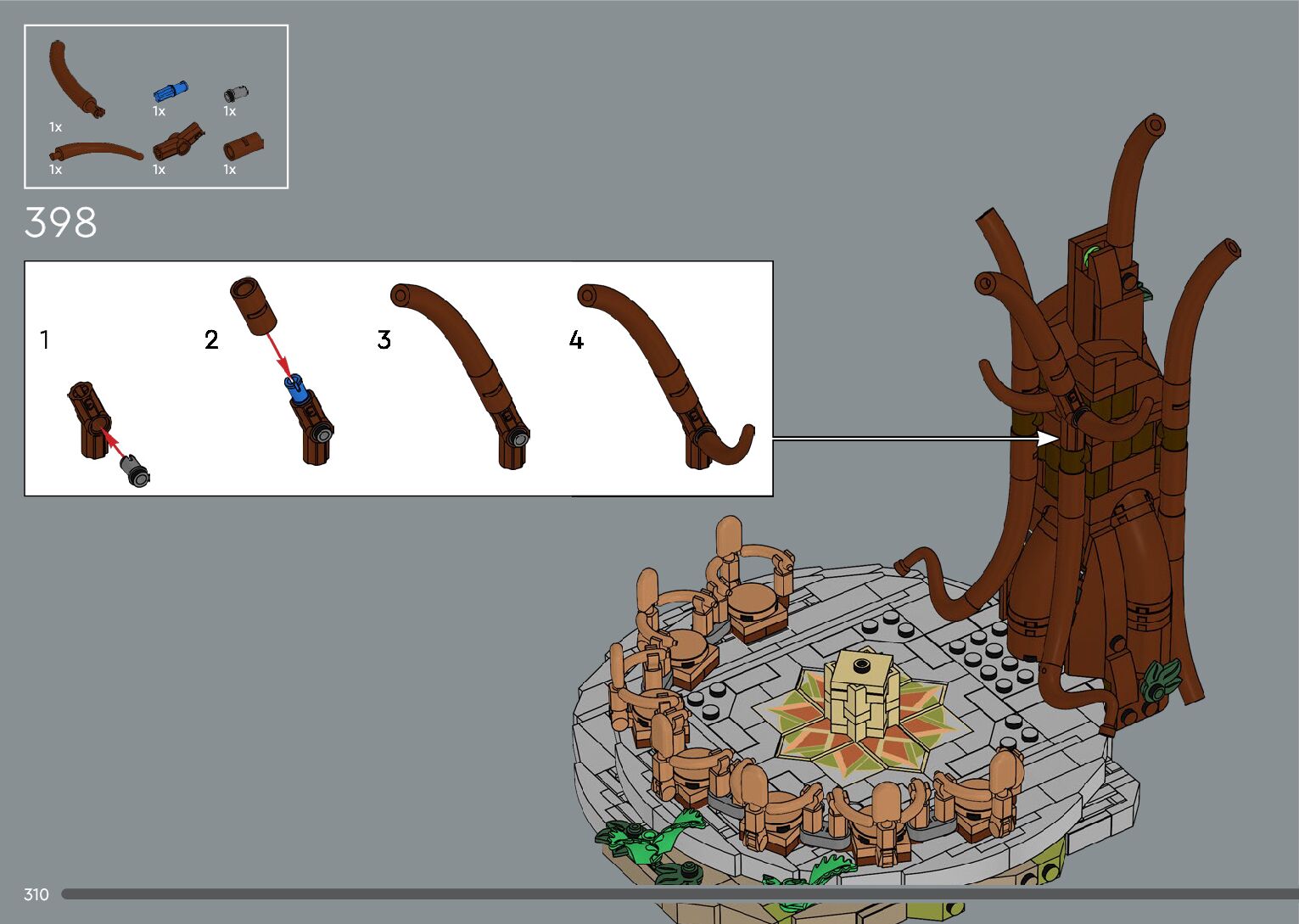 The assembly guide is prepared in a very understandable way for children and adult LEGO enthusiasts. A total of 680 picture galleries are shown, explaining the step-by-step construction stages for 3 different structures.