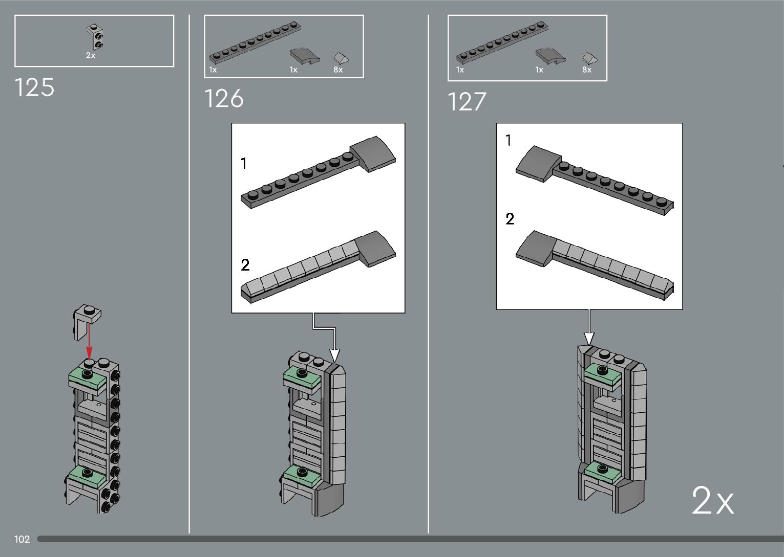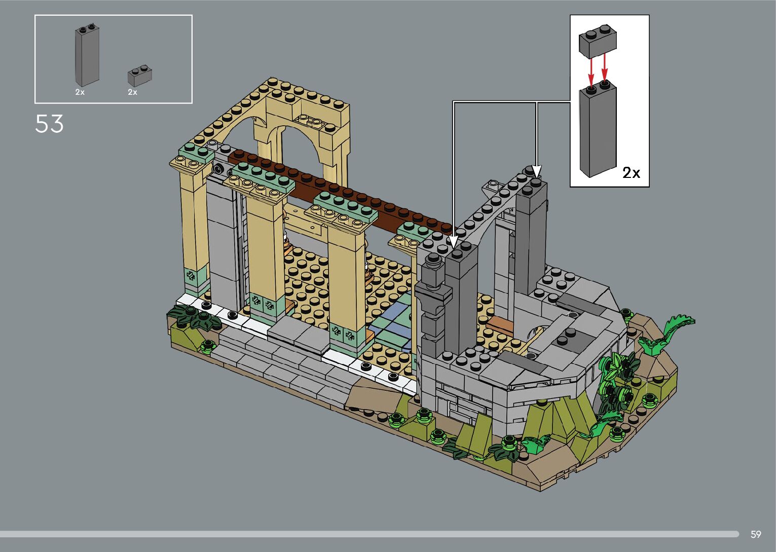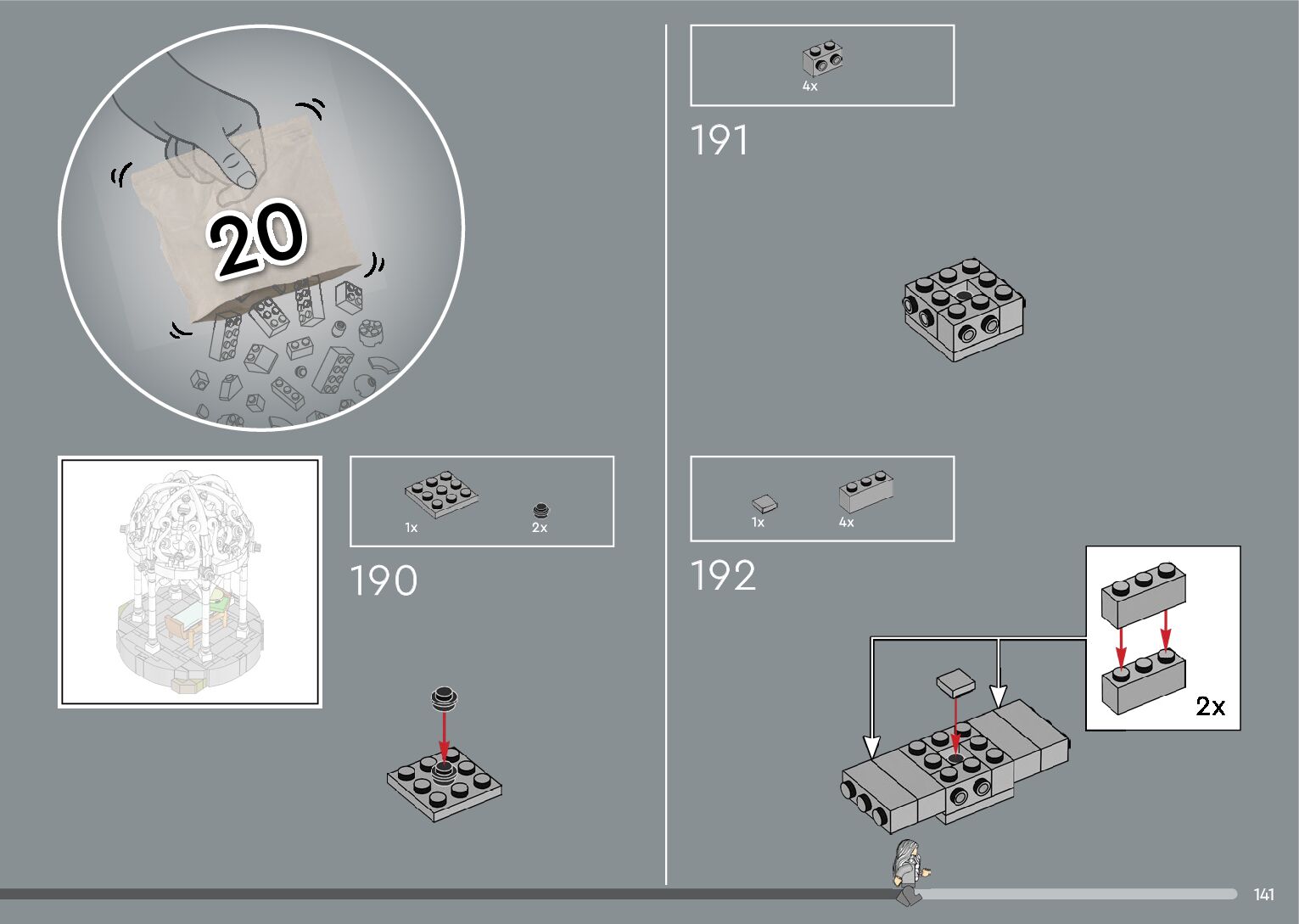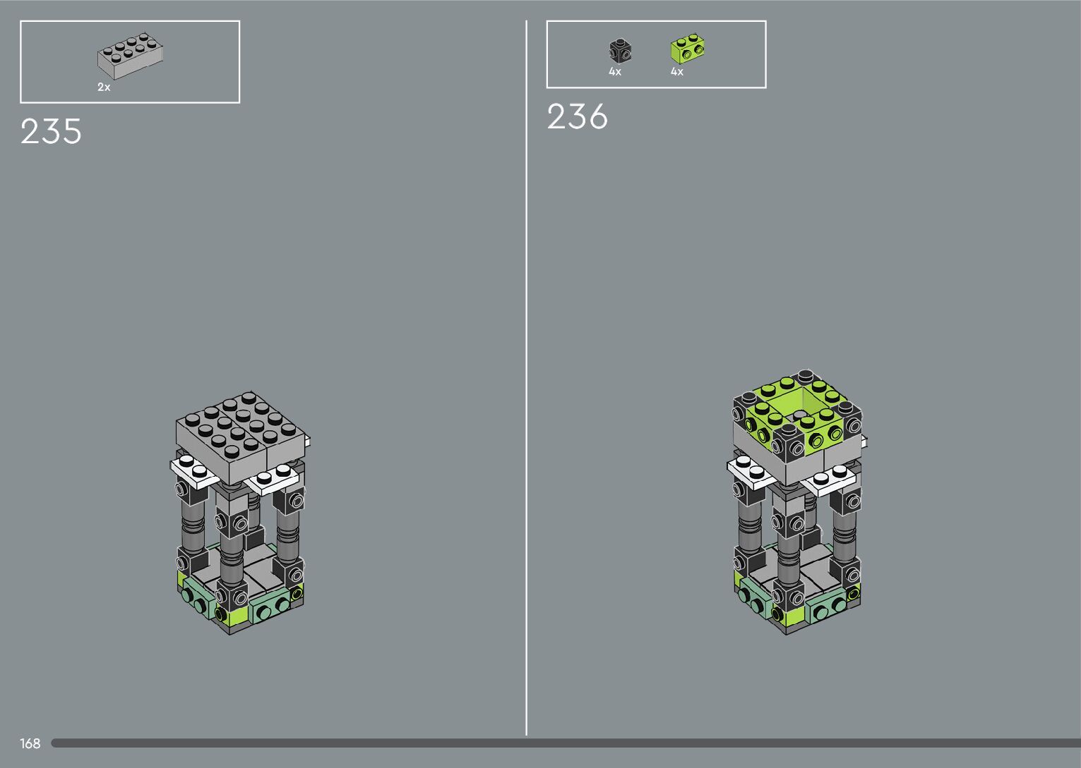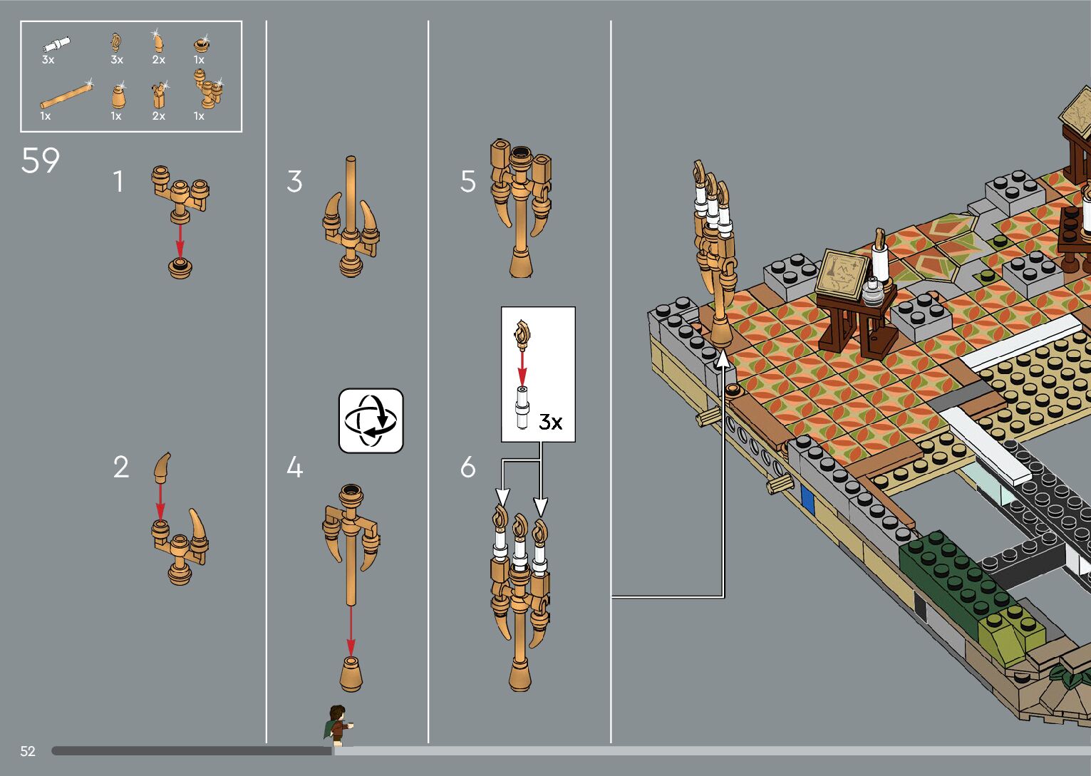 The assembly guide is prepared in a very understandable way for children and adult LEGO enthusiasts. A total of 680 picture galleries are shown, explaining the step-by-step construction stages for 3 different structures.