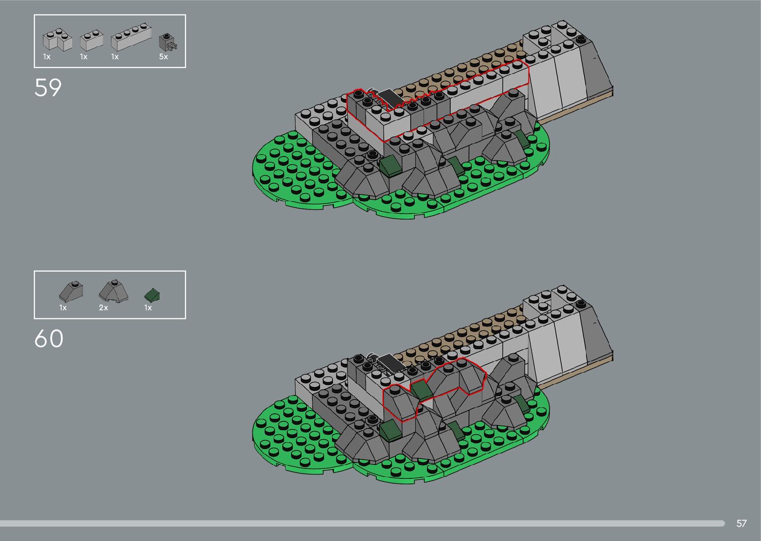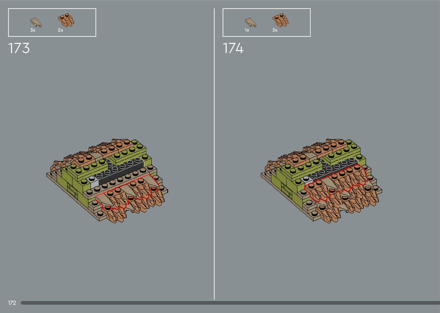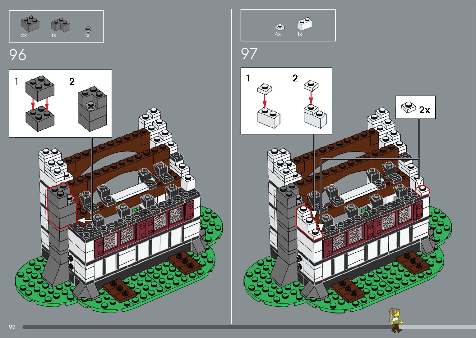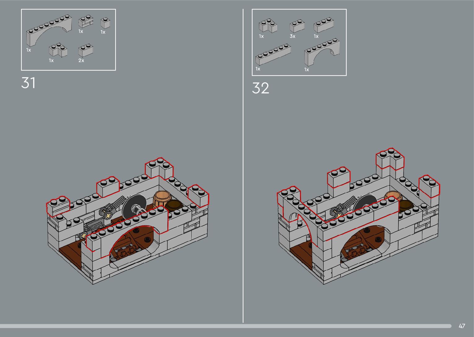 The assembly guide is prepared in a very understandable way for children and adult LEGO enthusiasts. A total of 392 picture galleries are shown, explaining the step-by-step construction stages for 2 different structures.