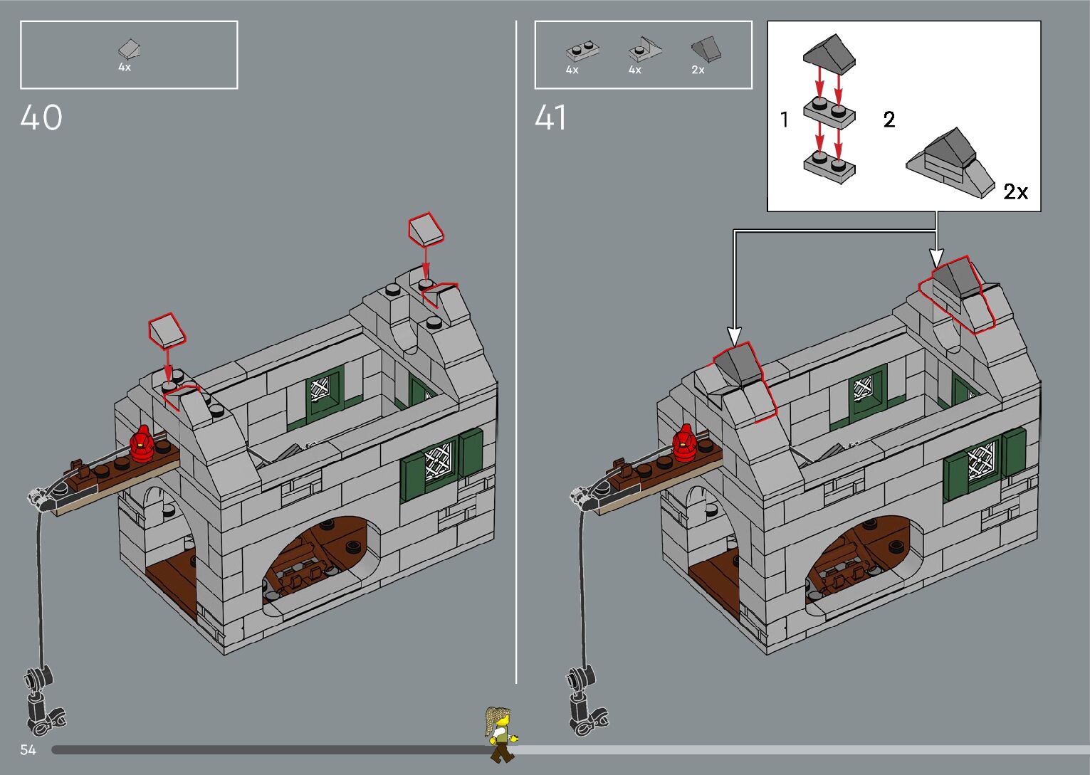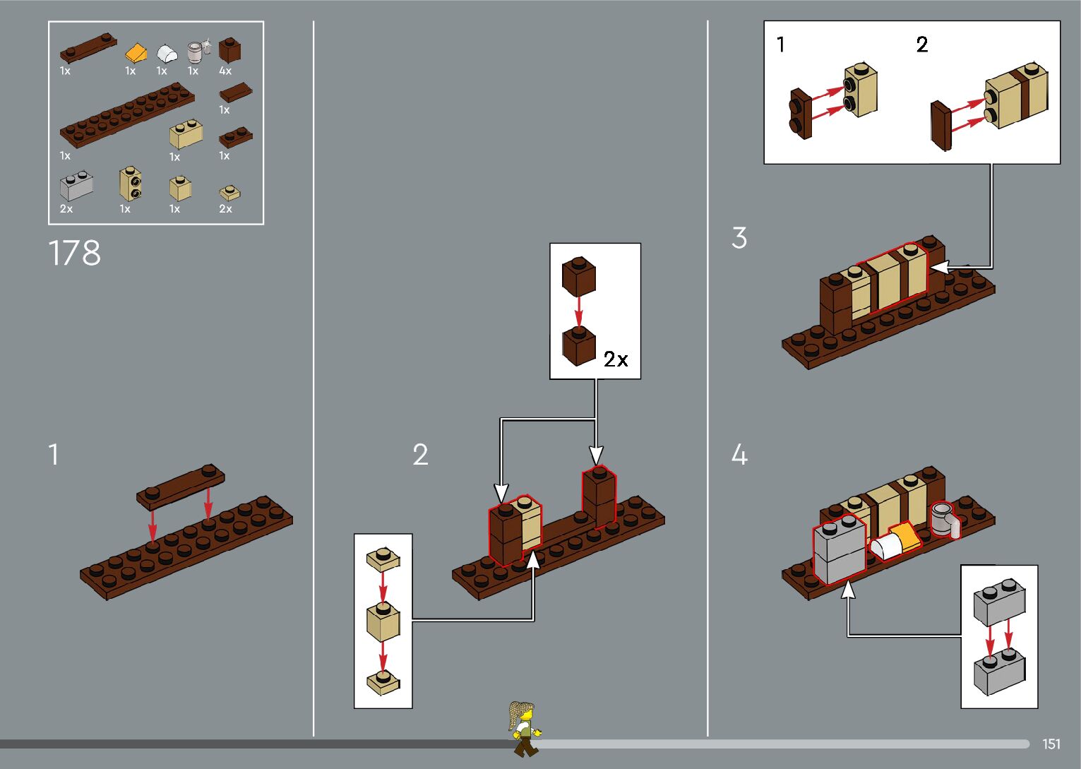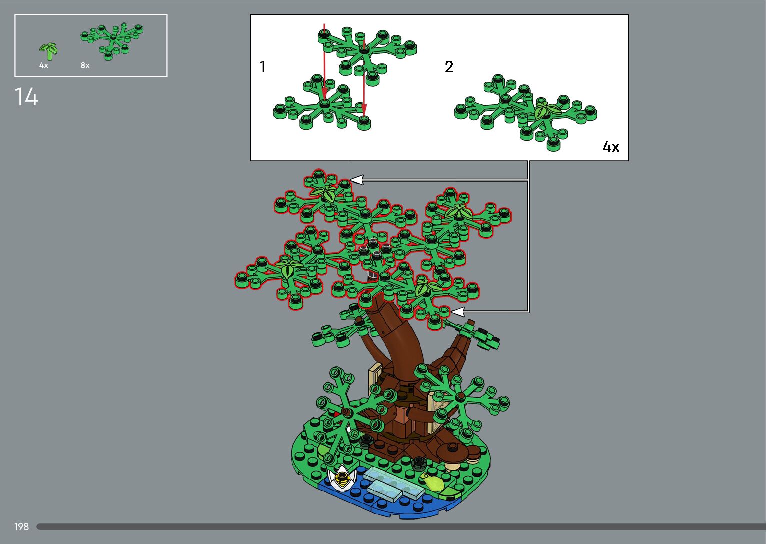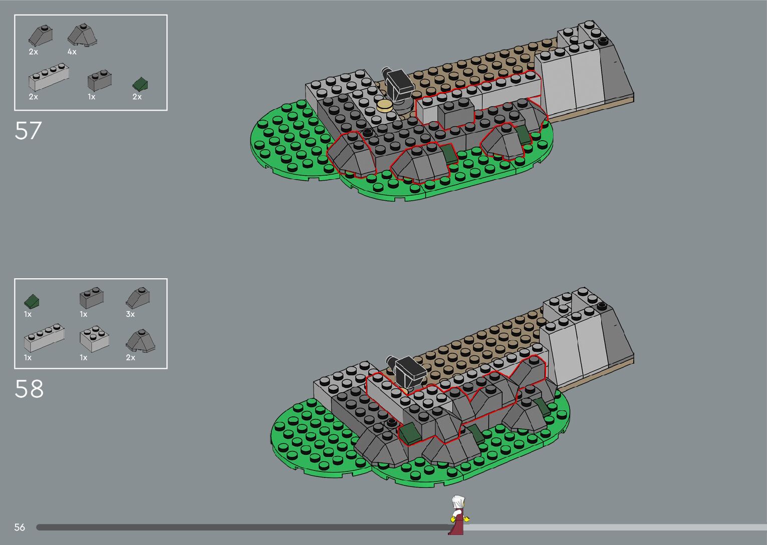 The assembly guide is prepared in a very understandable way for children and adult LEGO enthusiasts. A total of 392 picture galleries are shown, explaining the step-by-step construction stages for 2 different structures.