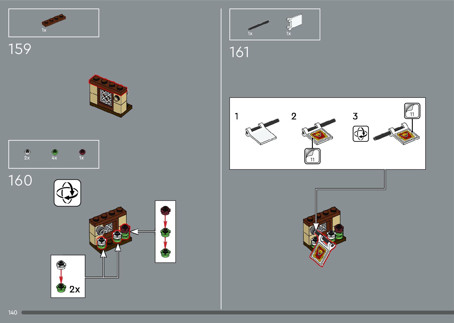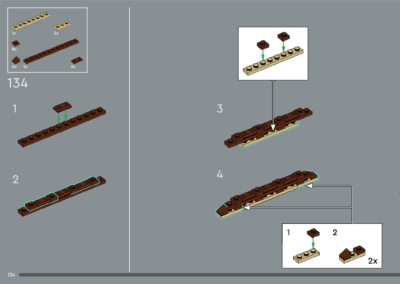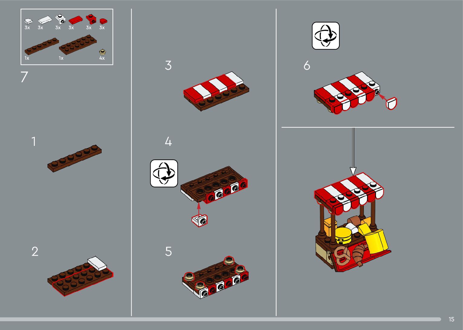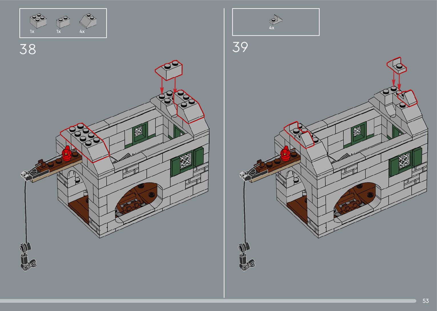 The assembly guide is prepared in a very understandable way for children and adult LEGO enthusiasts. A total of 392 picture galleries are shown, explaining the step-by-step construction stages for 2 different structures.