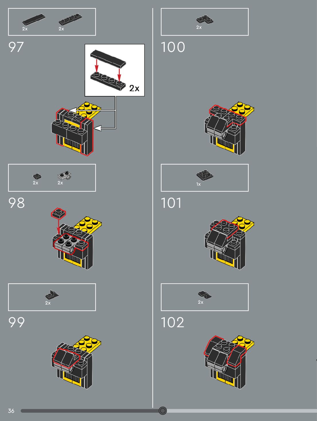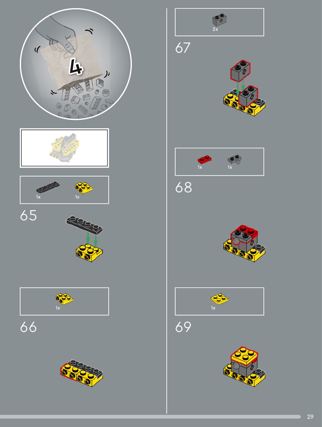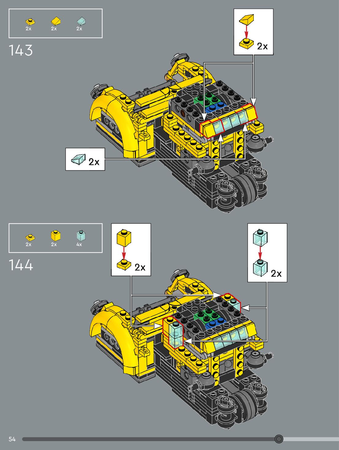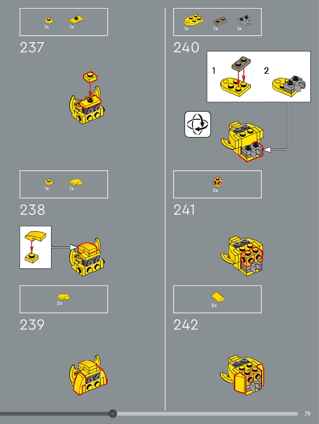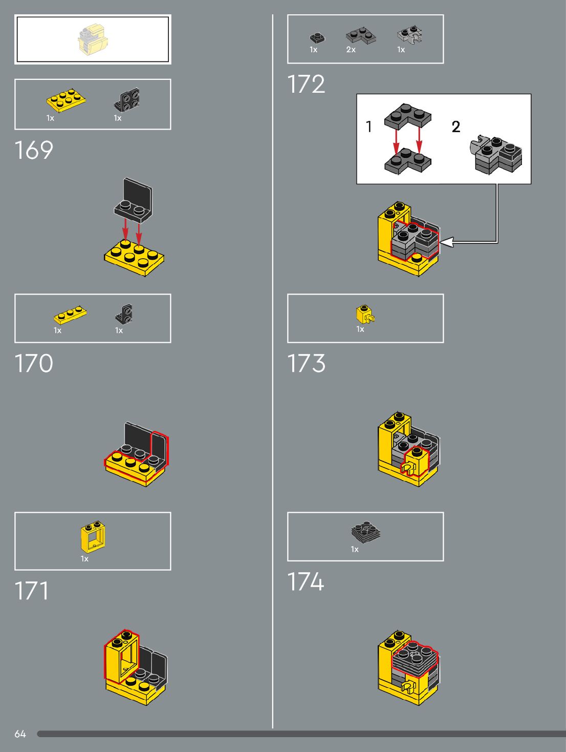 The assembly guide is prepared in a very understandable way for children and adult LEGO enthusiasts. A total of 140 picture galleries are shown, explaining the step-by-step construction stages for 1 different structures.