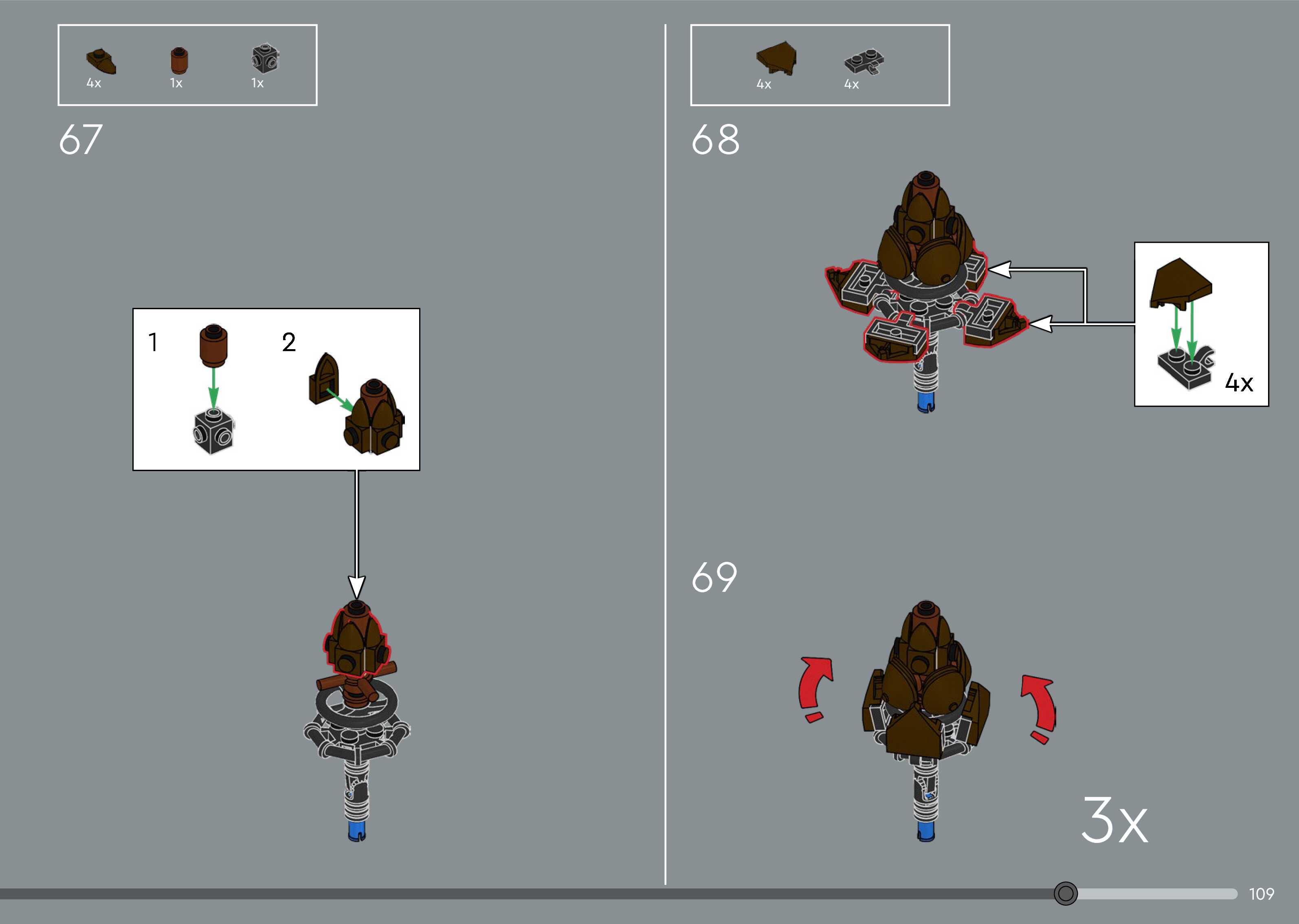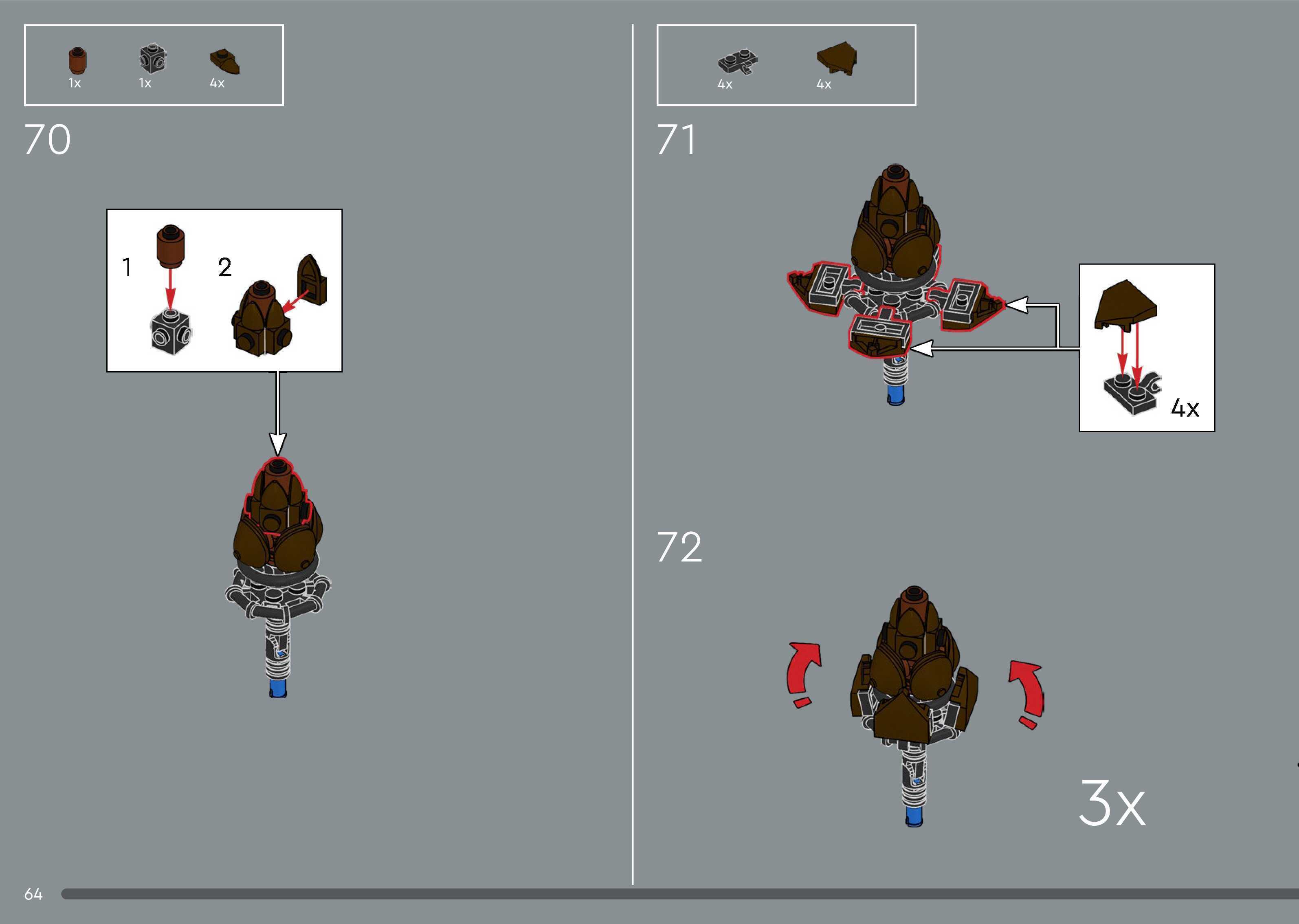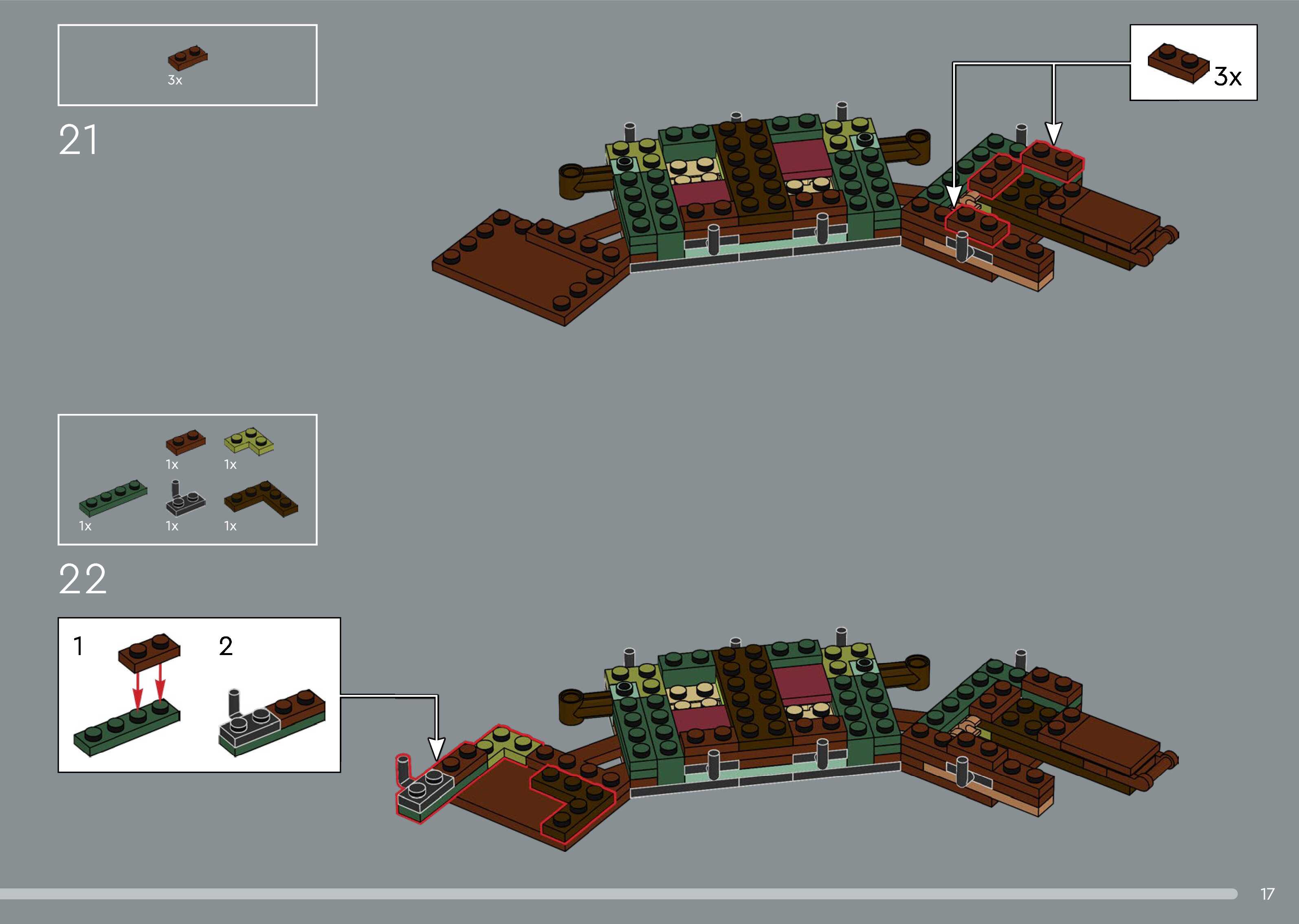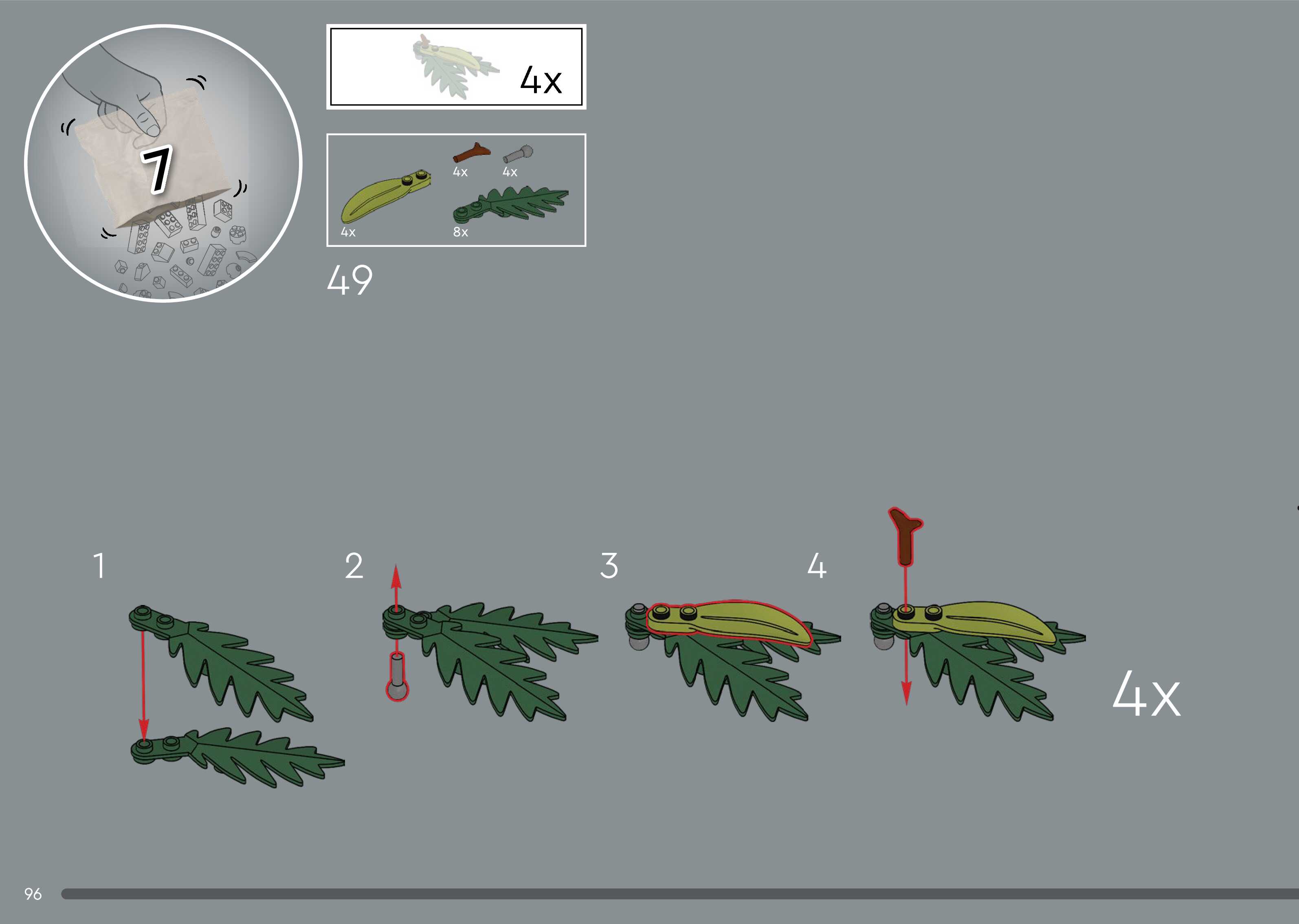The assembly guide is prepared in a very understandable way for children and adult LEGO enthusiasts. A total of 120 picture galleries are shown, explaining the step-by-step construction stages for 1 different structures.